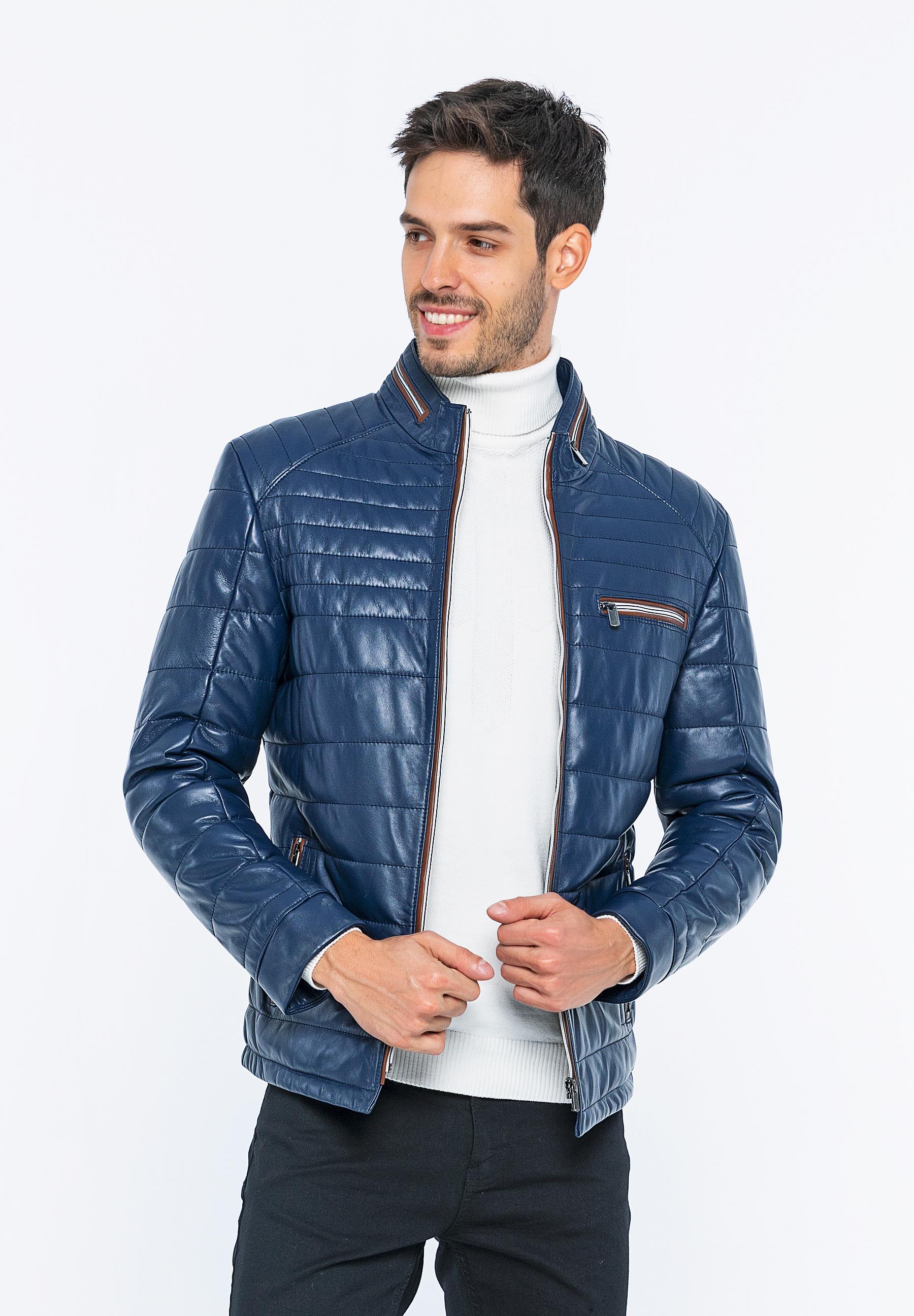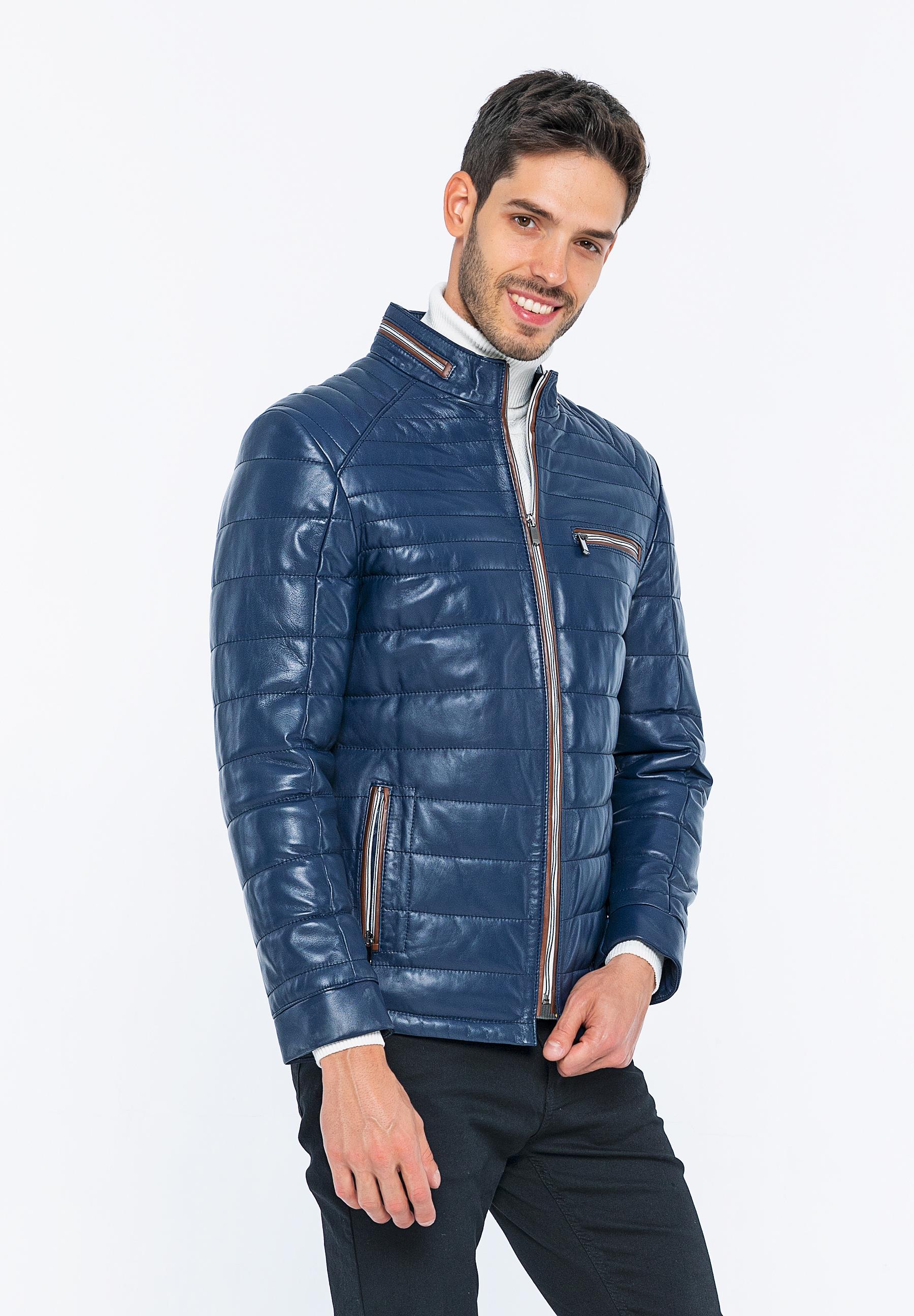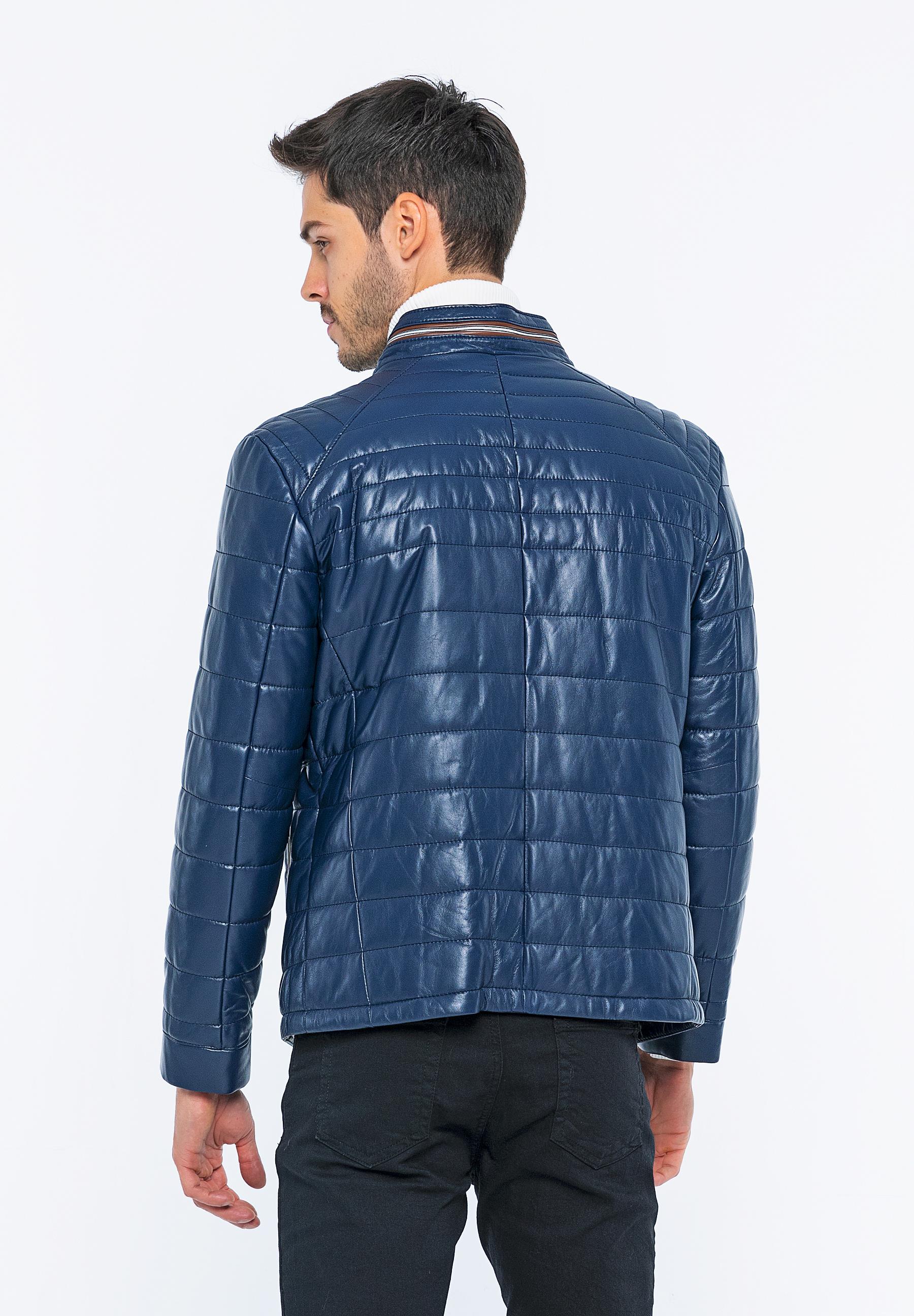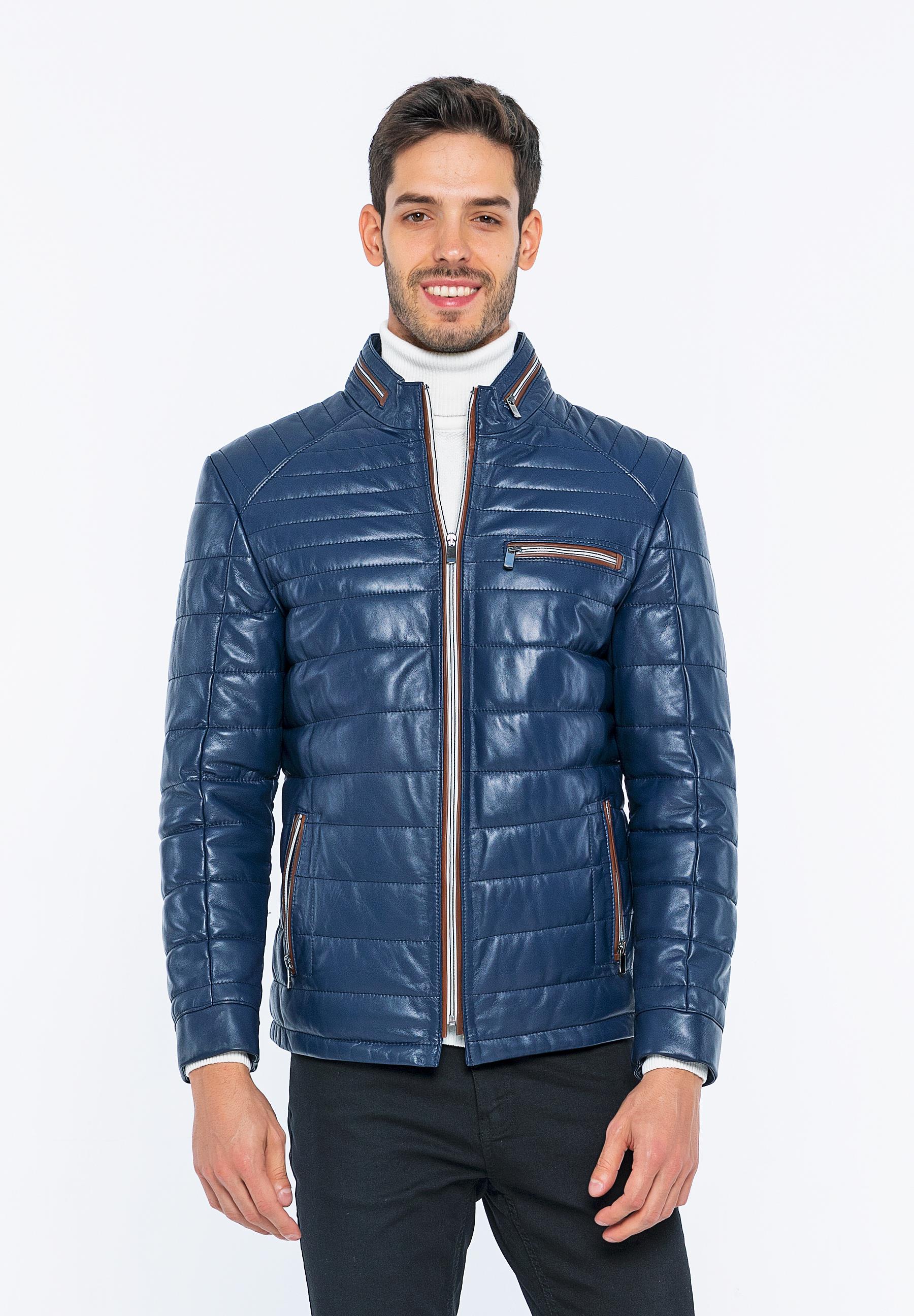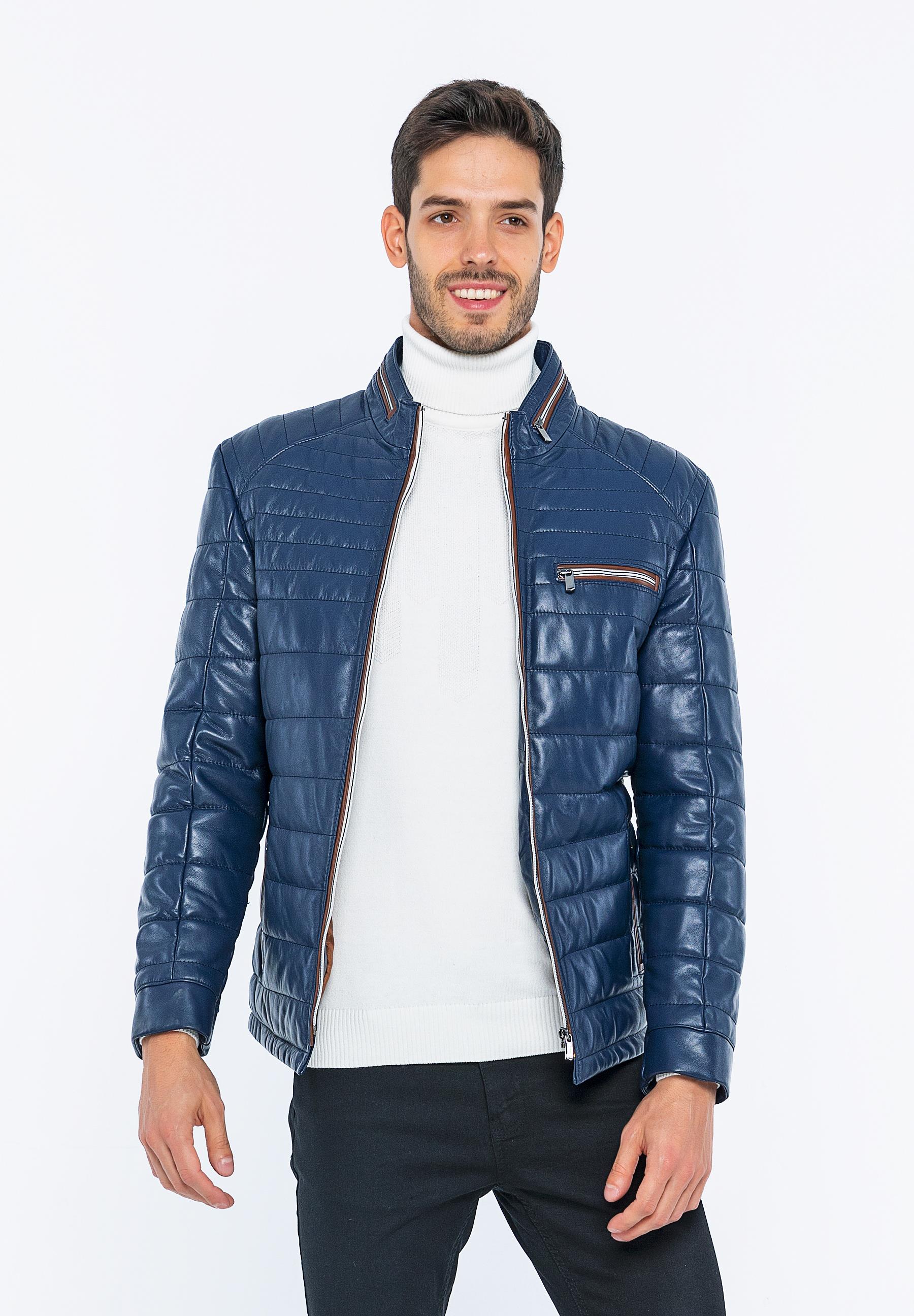 Basics&More Erkek Şişme Lacivert Deri Ceket - 6099