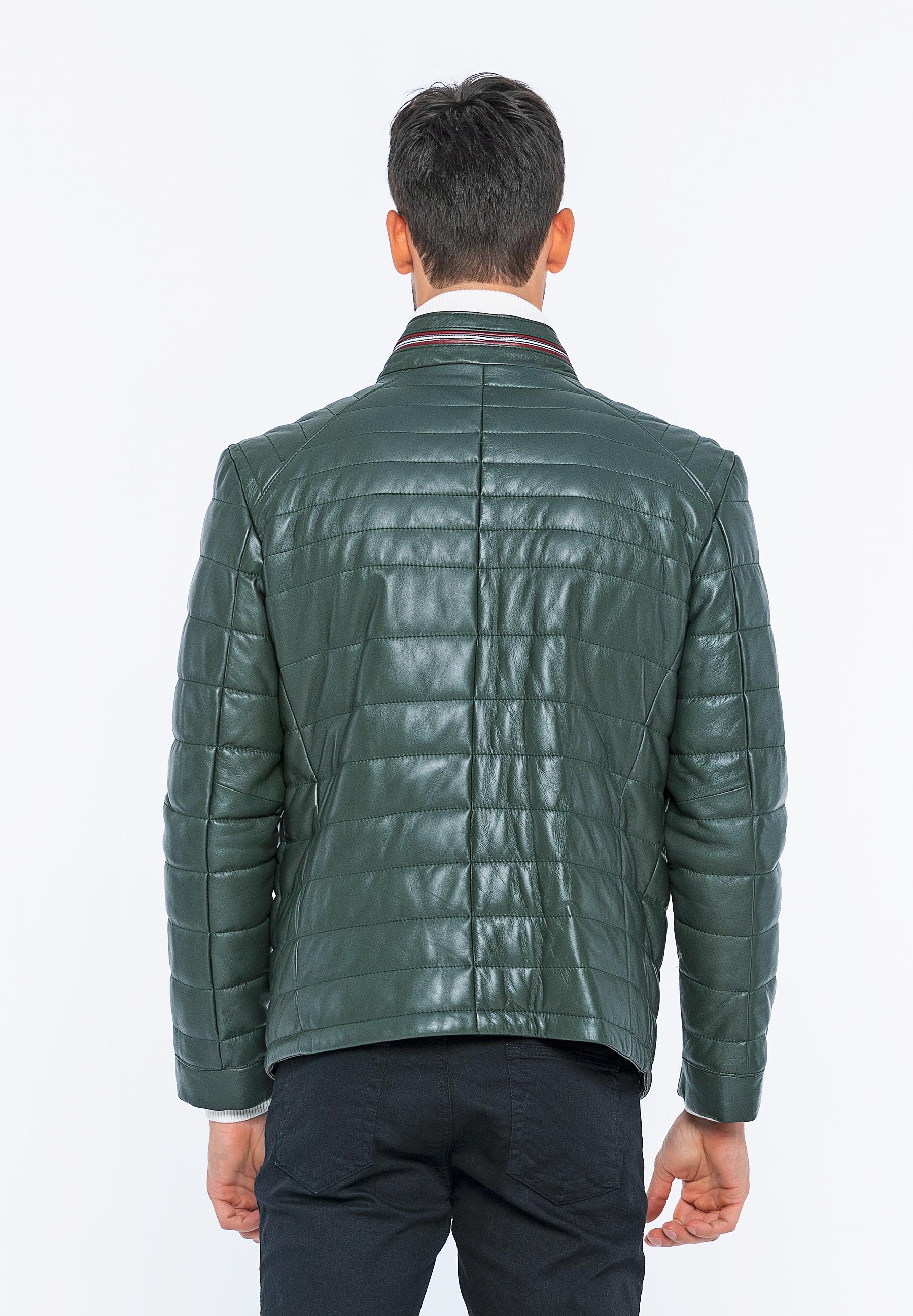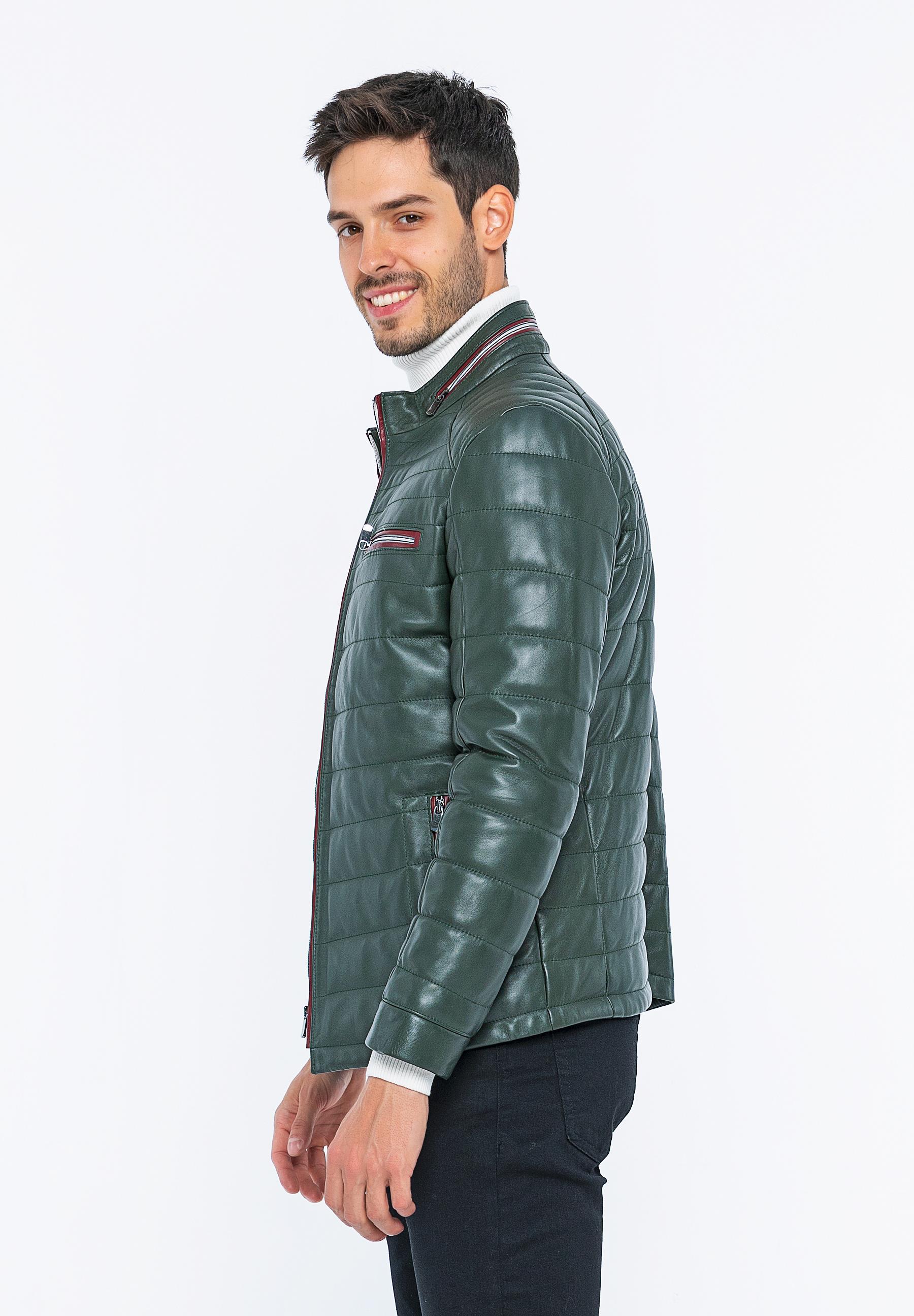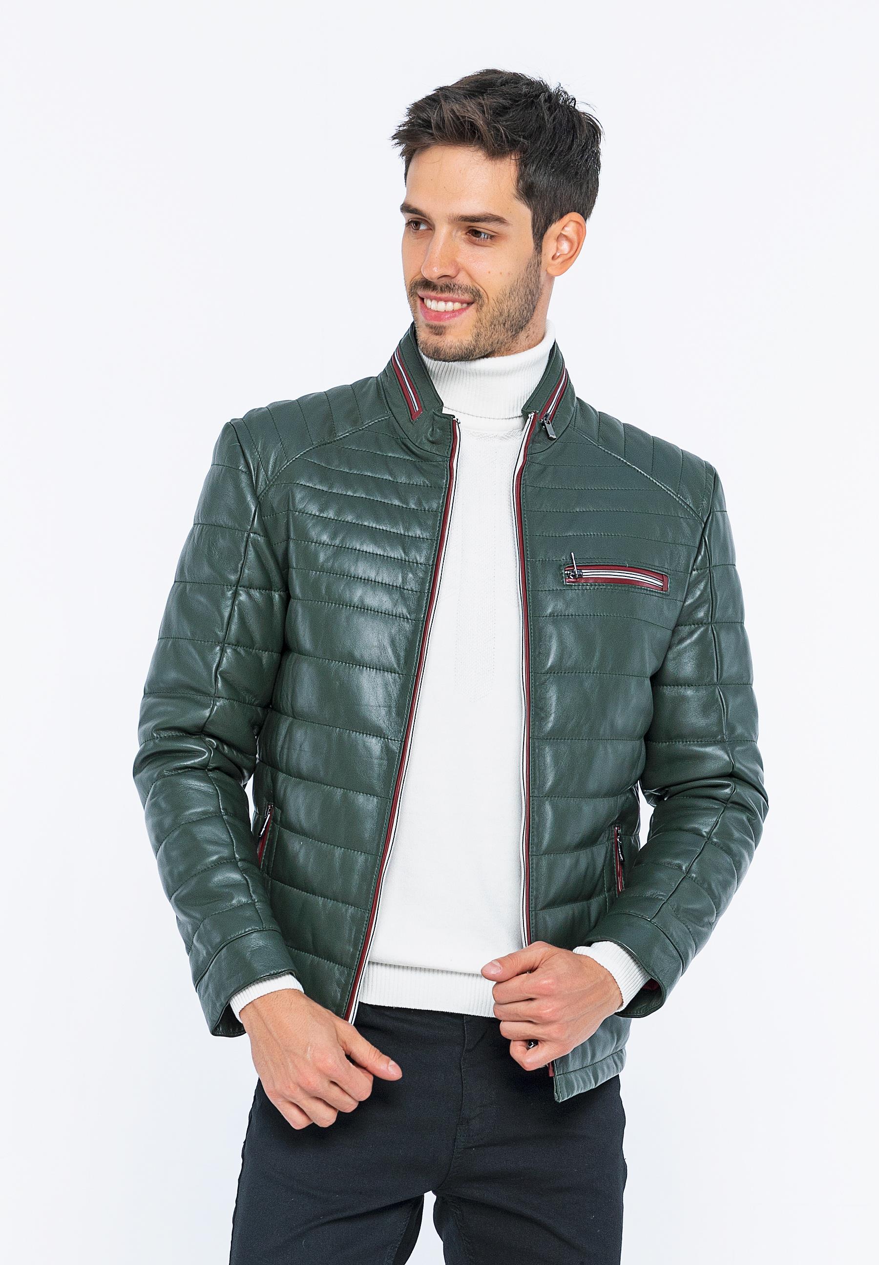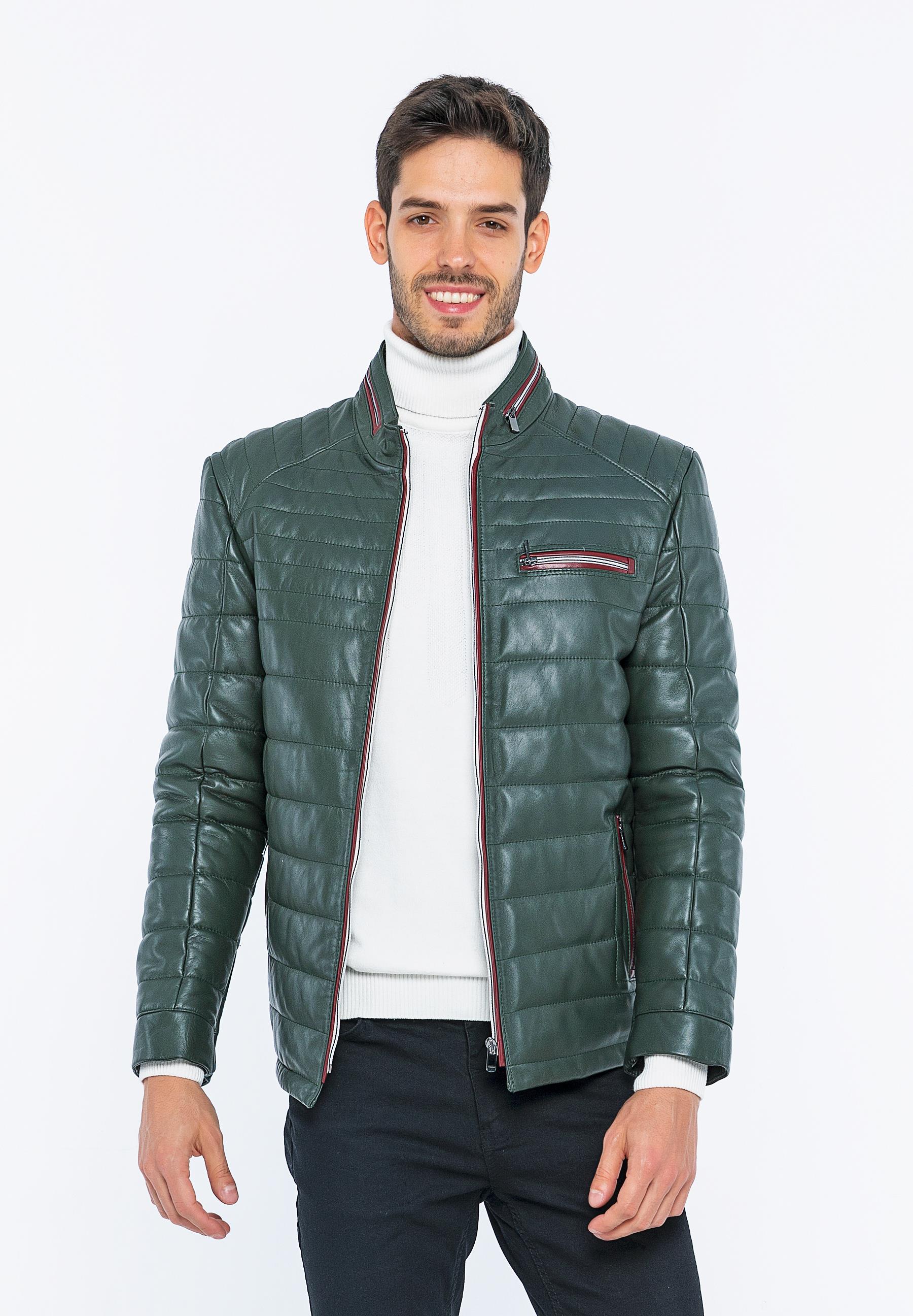 Basics&More Erkek Şişme Yeşil Deri Ceket - 6099