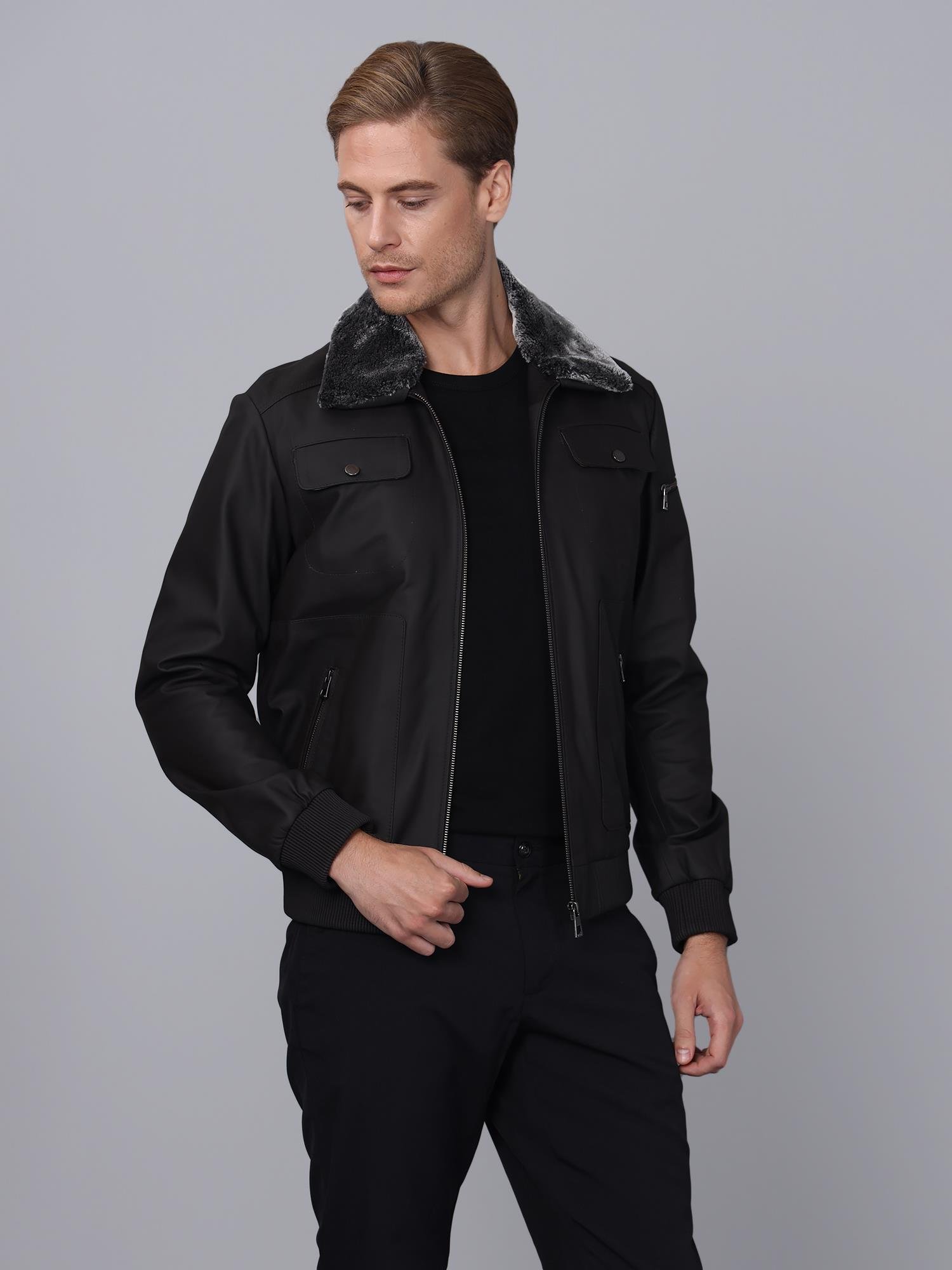Orta boy tasarımı ile her mevsim rahatlıkla kullanılabilen erkek deri ceket, şık ve zamansız bir tarz sunar.;