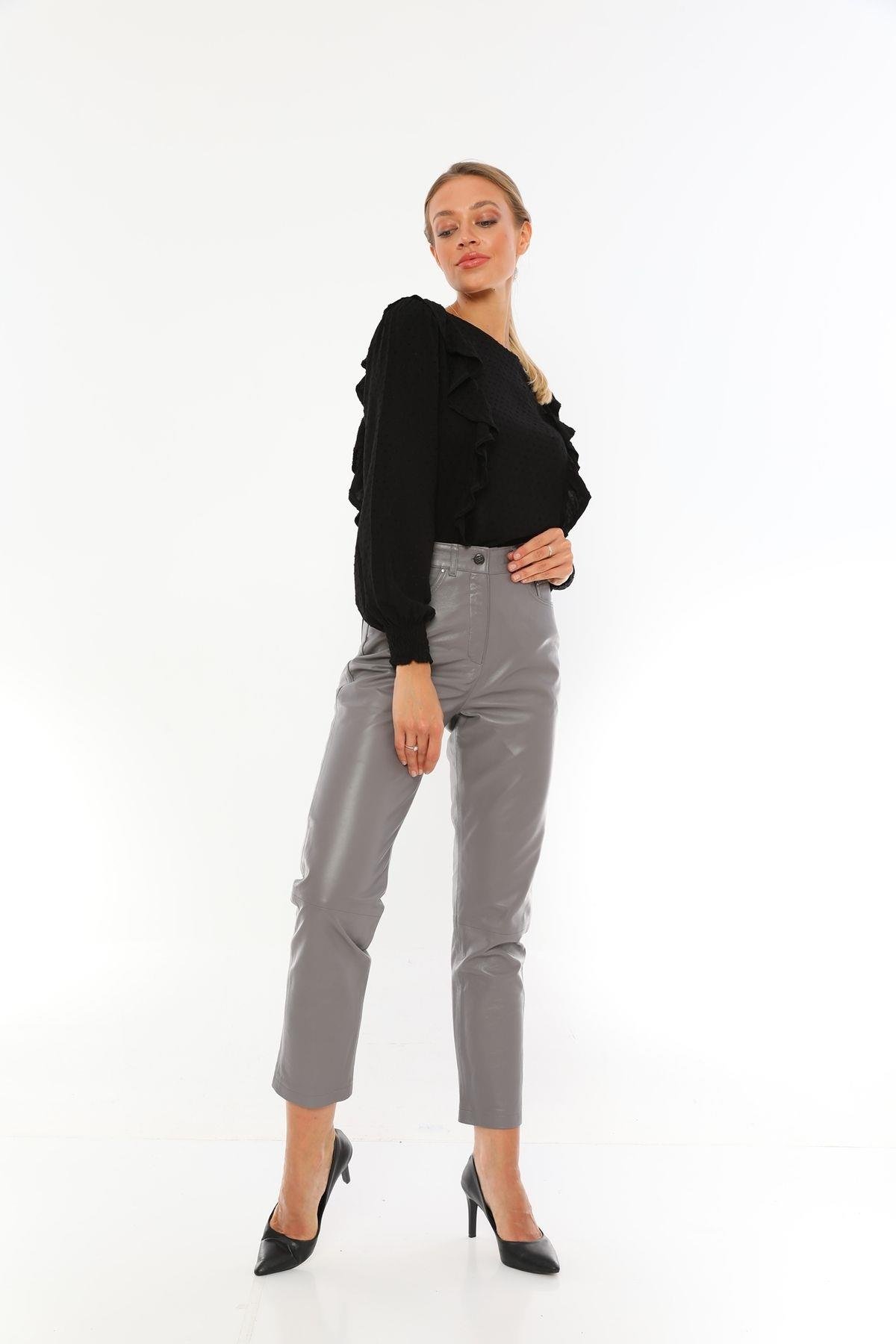 Gri Deri Pantolon - Zarif ve Çağdaş Bir Stil