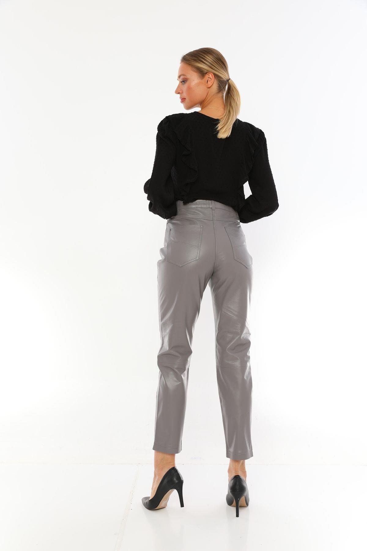 Basics&More Kadın Beş Cepli Gri Deri Pantolon - P02