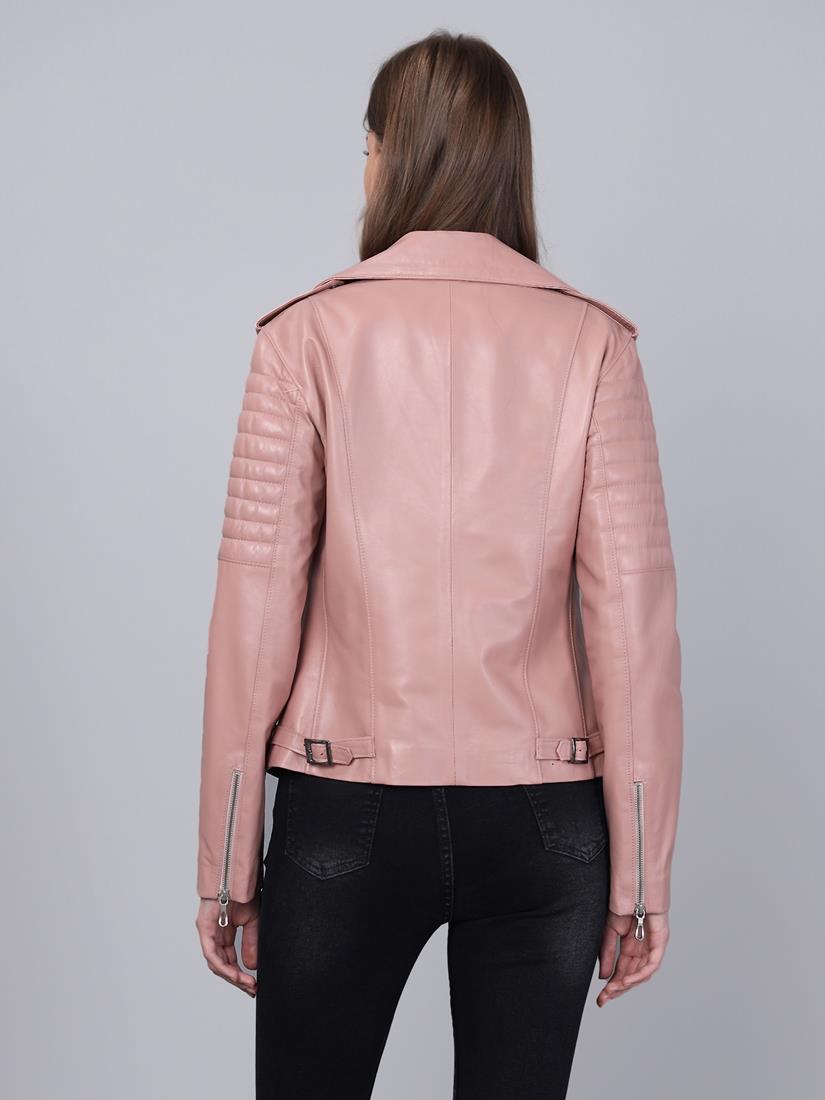 Basics&More Kadın Biker Pudra Deri Ceket - BM02