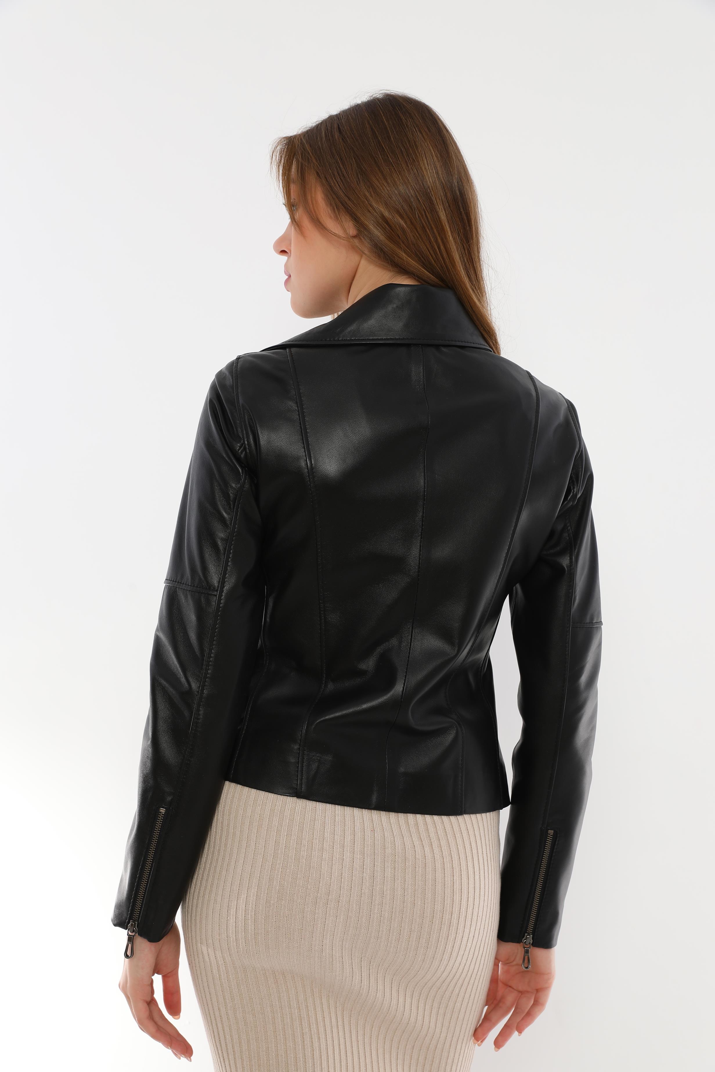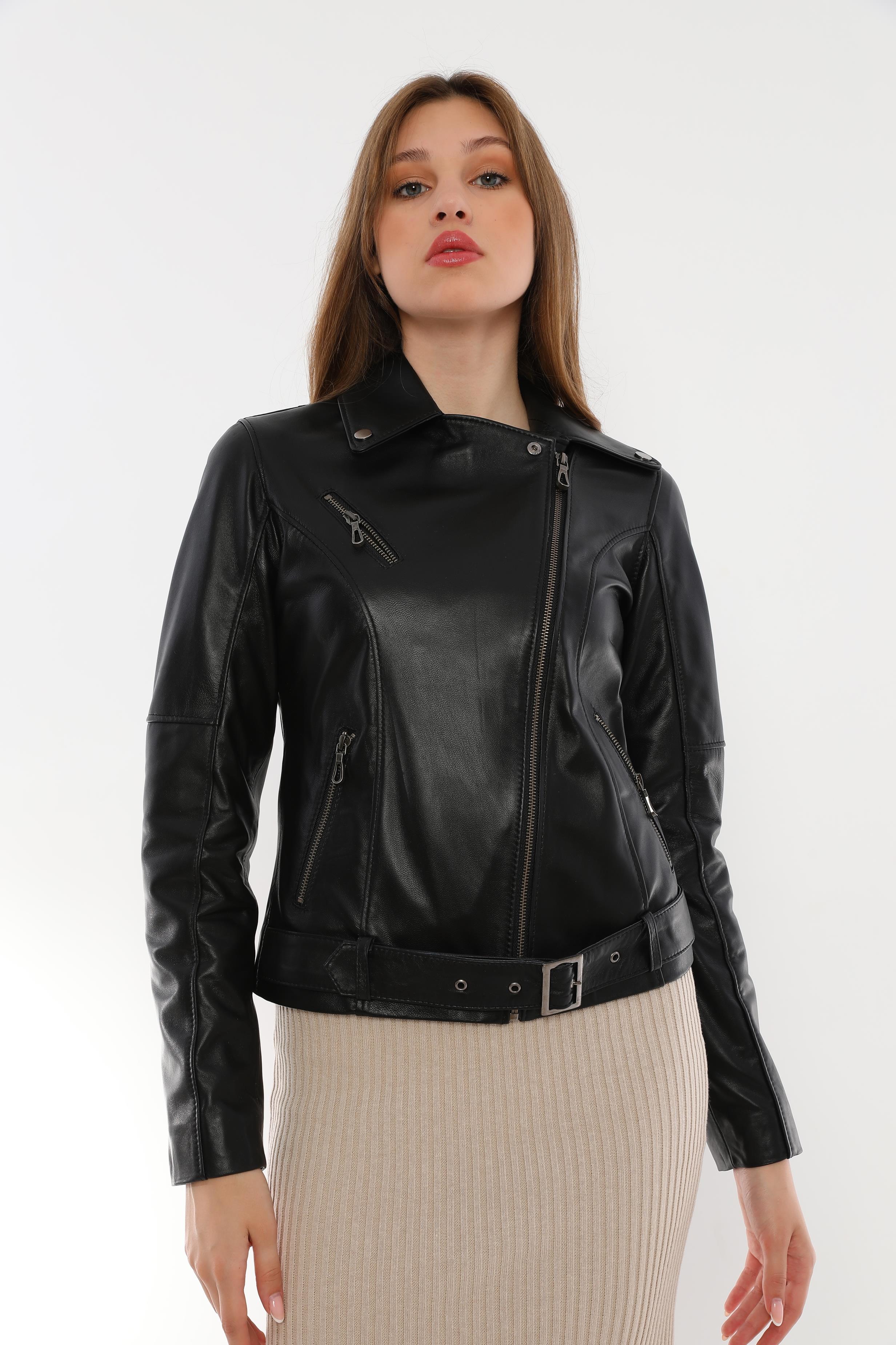Basics&More Kadın Biker Siyah Deri Ceket - BM01
