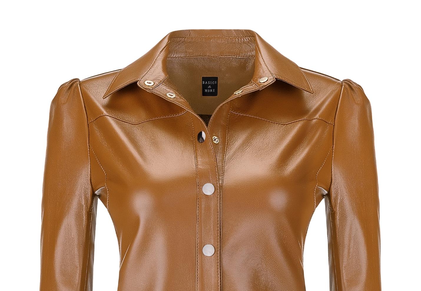Basics&More Kadın Çıt Çıt Camel Deri Gömlek - SH01