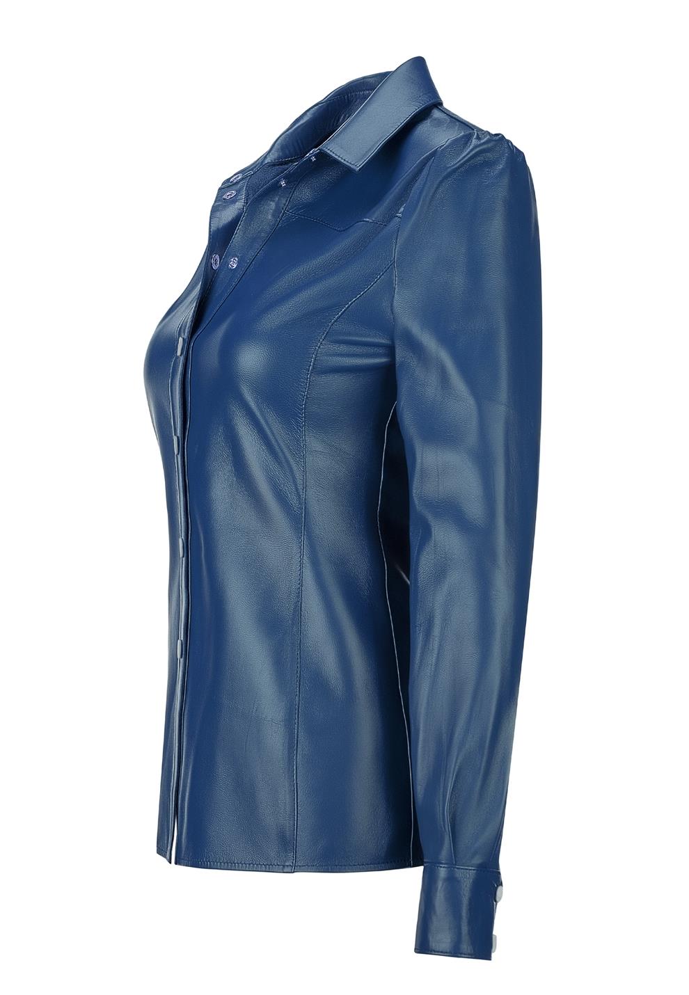 Basics&More Kadın Çıt Çıt Mavi Deri Gömlek - SH01