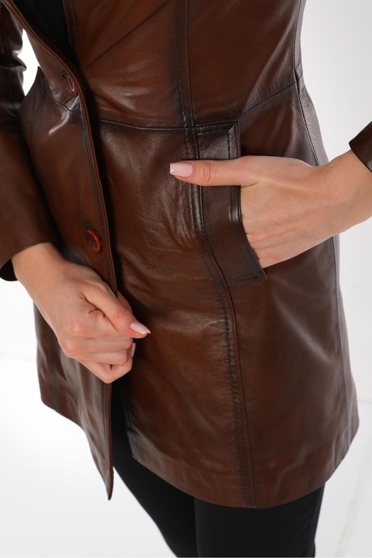 Basics&More Kadın Düğmeli Kestane Deri Ceket - B105