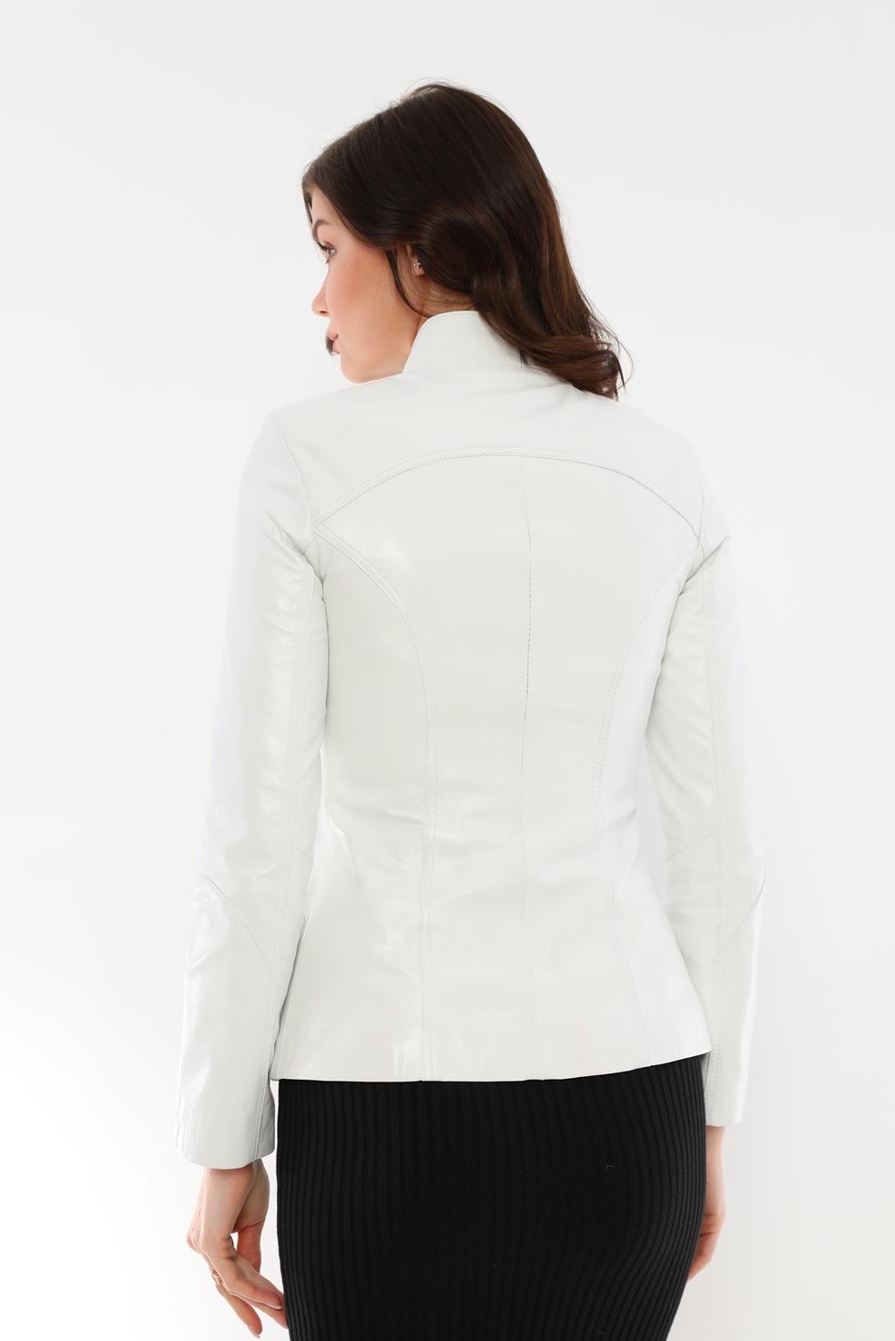 Gardırobunuzun vazgeçilmez parçası olacak kadın beyaz deri ceket, zamansız tasarımı ve yüksek kaliteli malzemesiyle her ortamda şıklığınızı tamamlar. Modern kesimi ve fermuar detaylarıyla hem günlük hem de özel kombinler için idealdir.