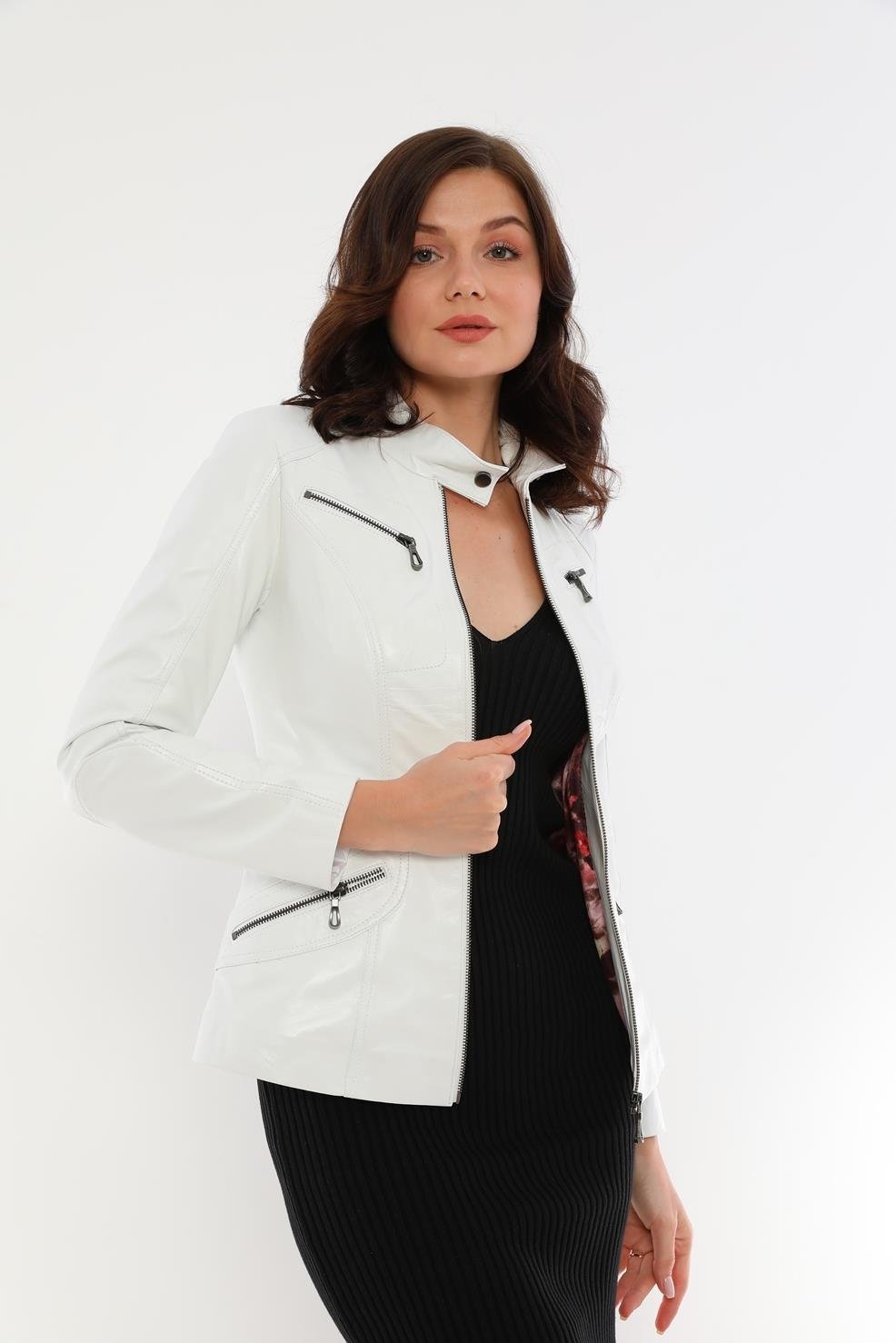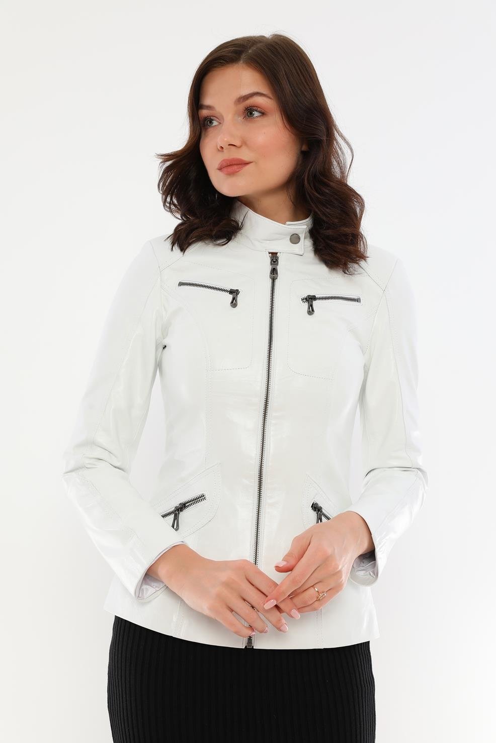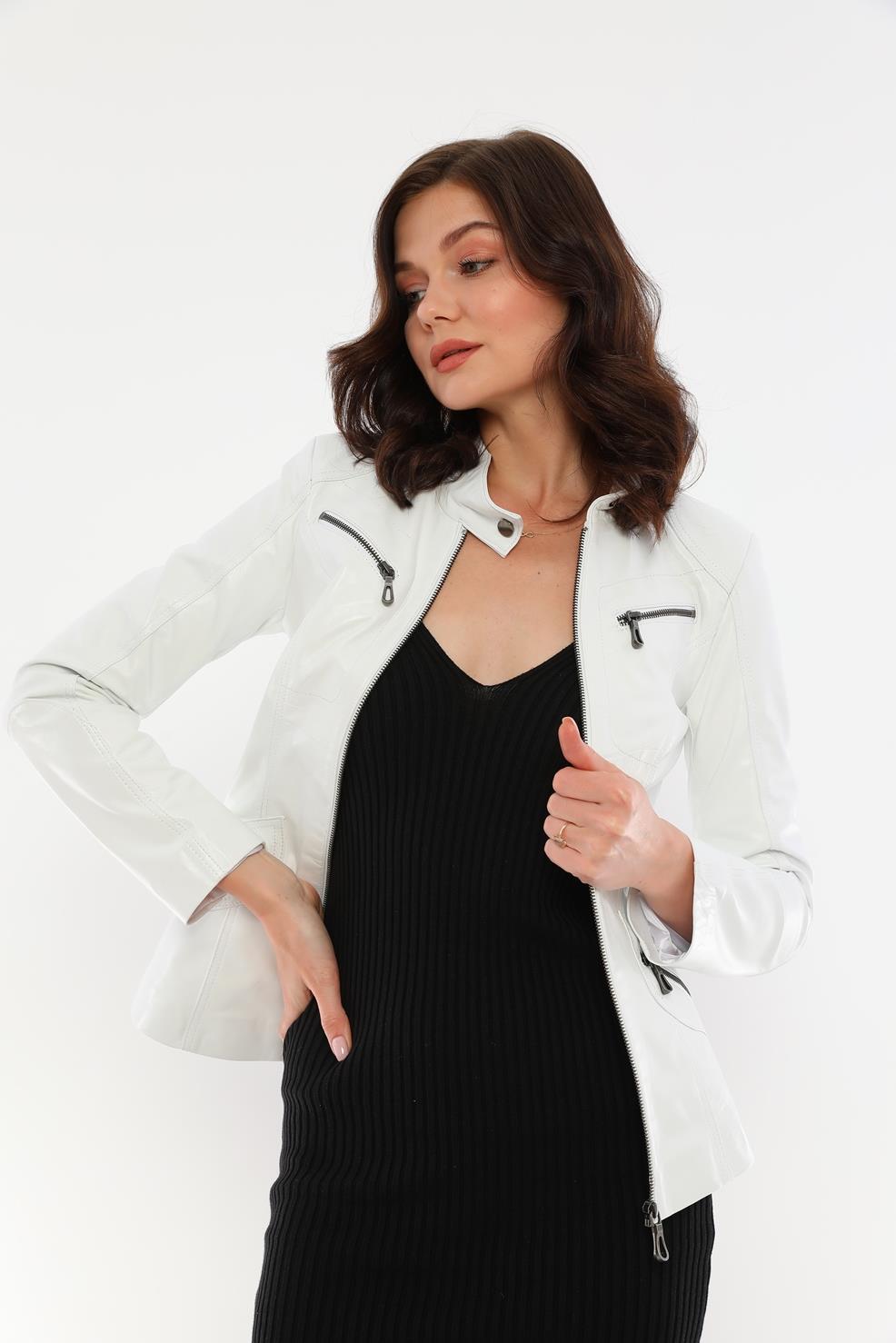 Ürünü Şimdi Satın Alın! Kadın beyaz fermuarlı deri ceket ile şıklığınızı her ortamda sergileyin. Zamansız tasarımı ve yüksek kaliteli işçiliğiyle gardırobunuzun yıldızı olacak bu parçayı hemen sipariş edin!