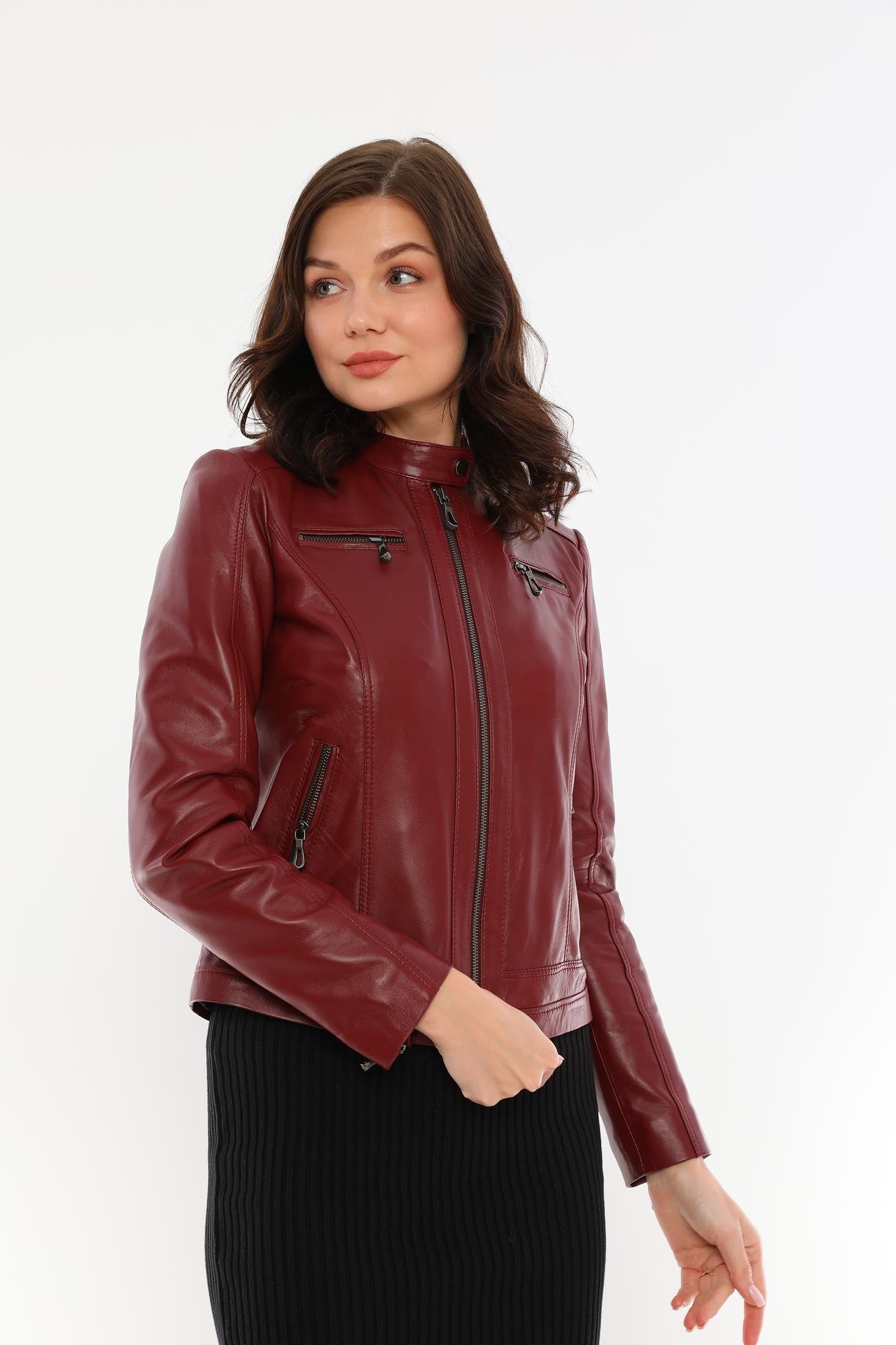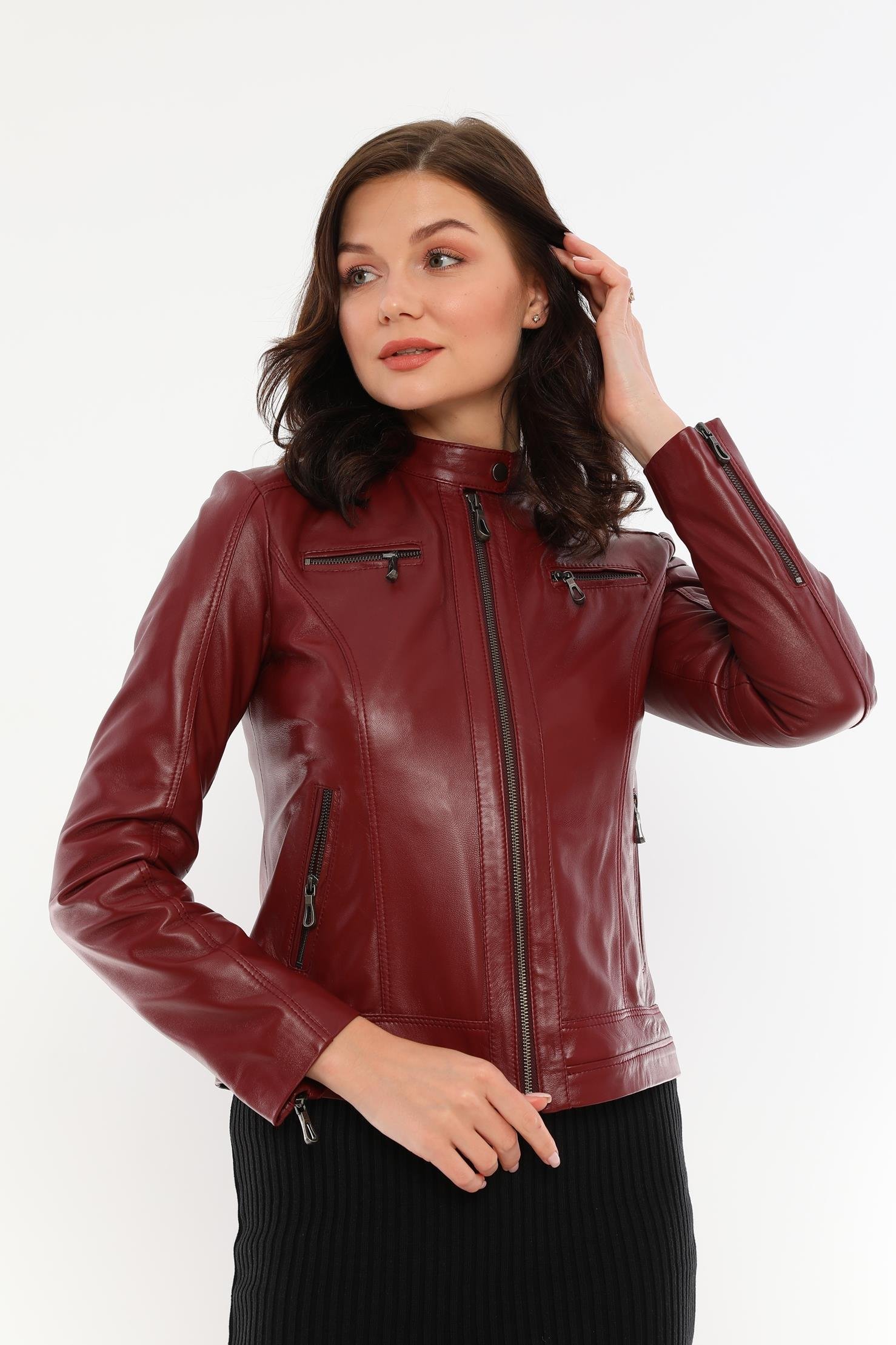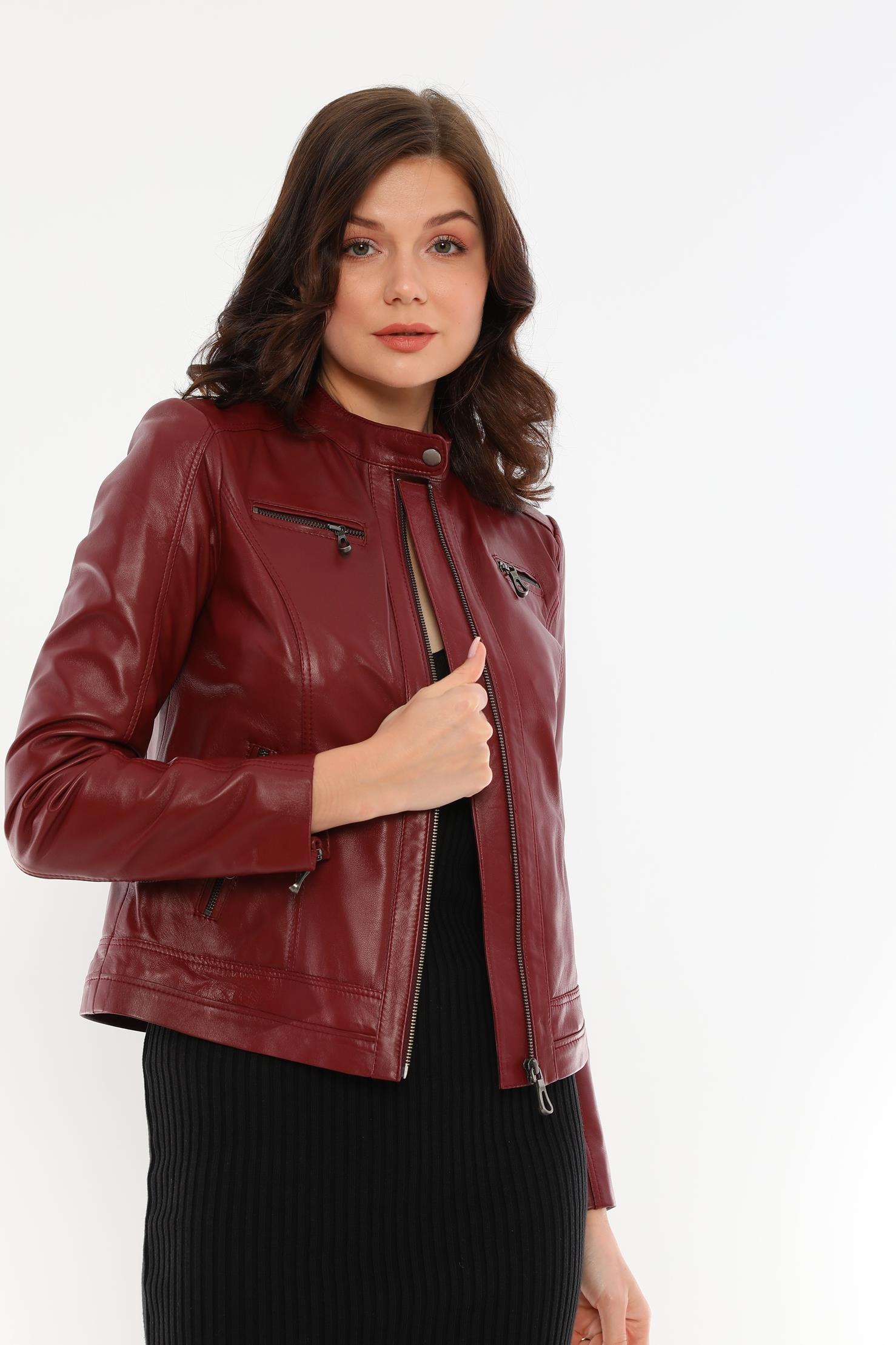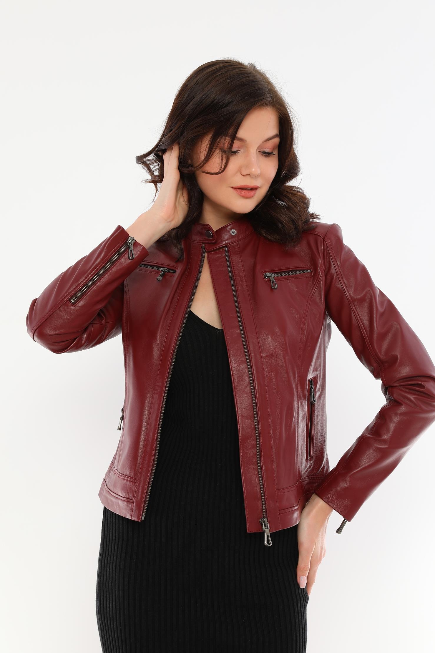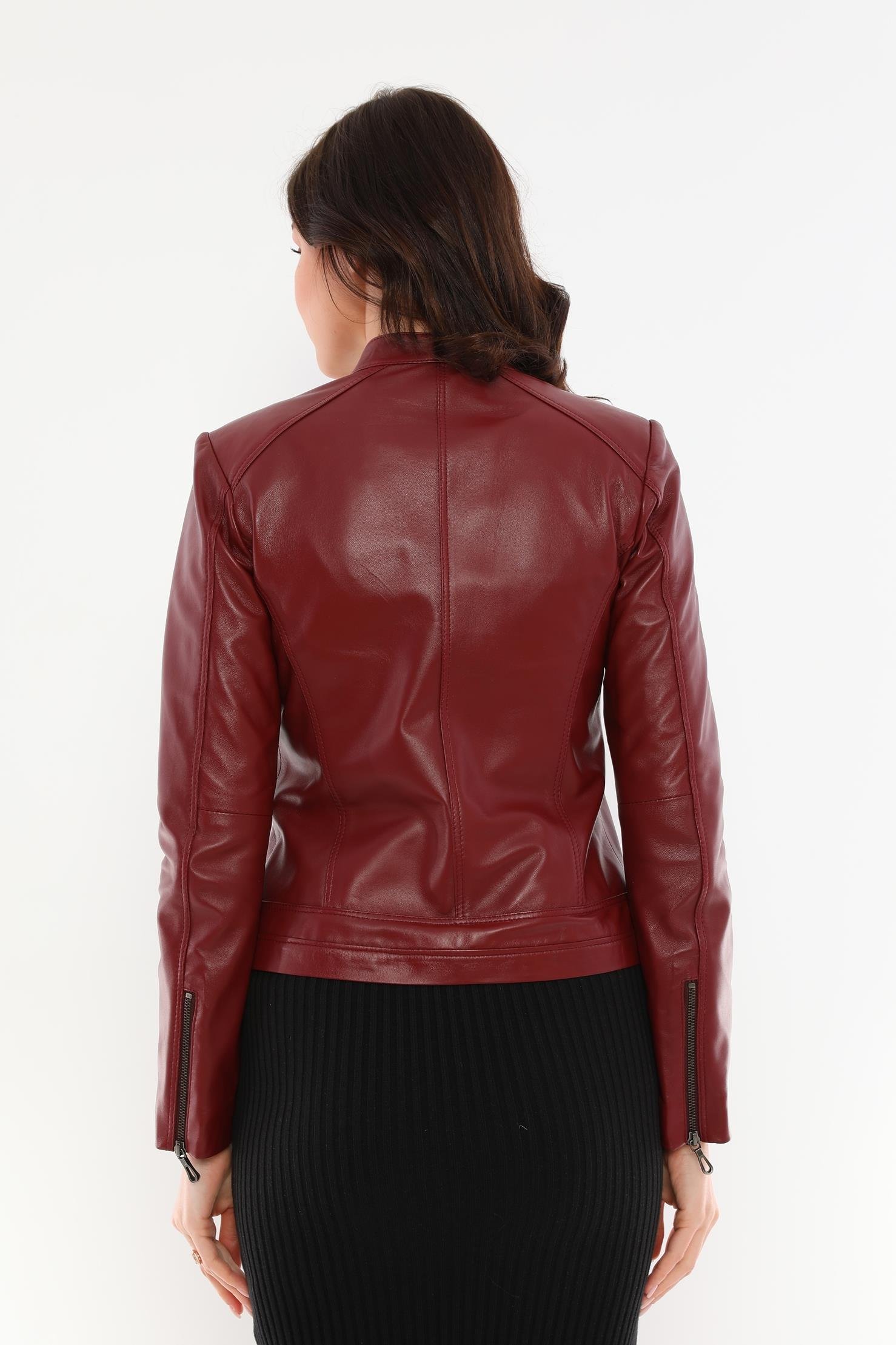 "Kadın Bordo Deri Ceket – Modern ve Şık Tasarım"