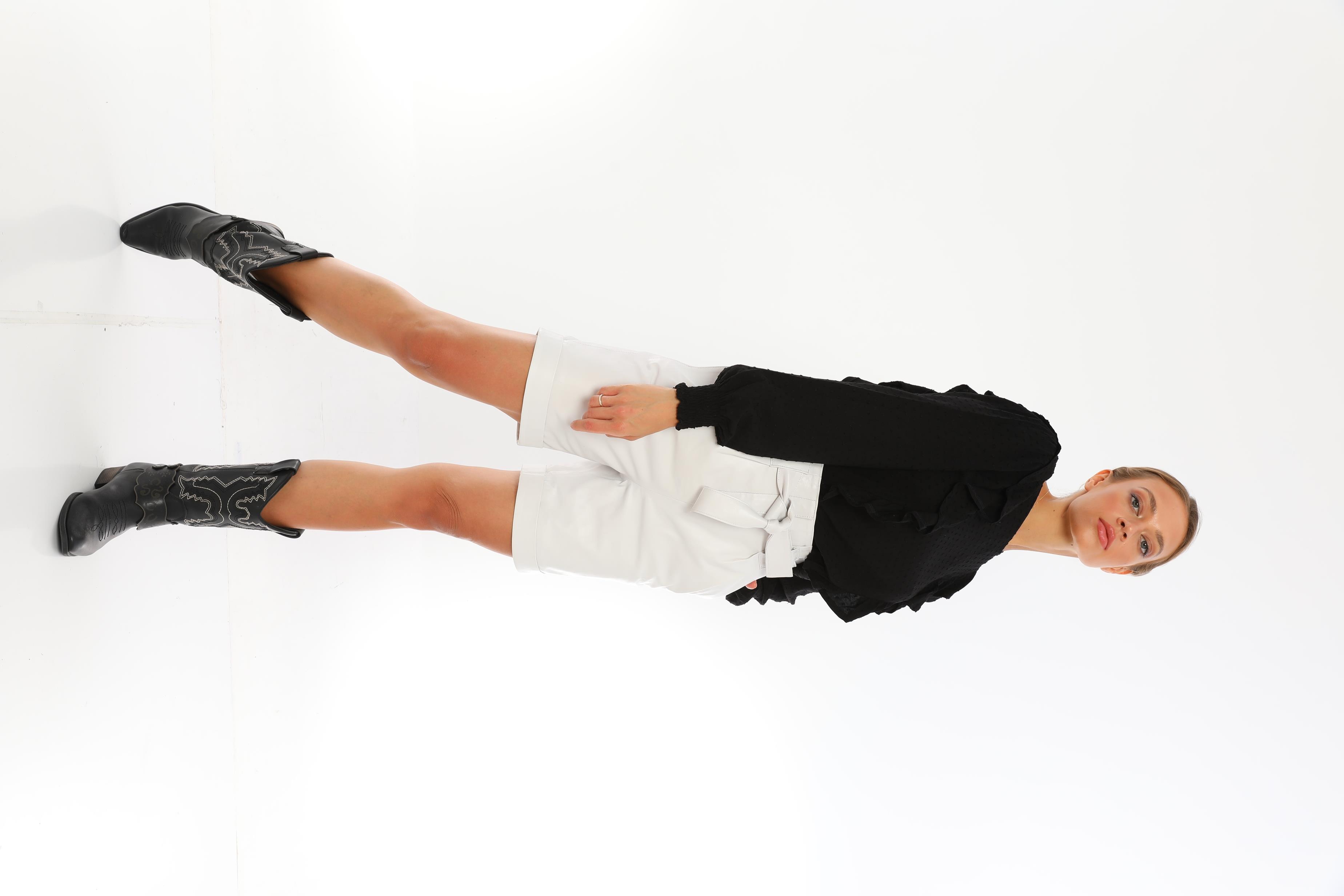 Basics&More Kadın Kuşaklı Beyaz Deri Şort - S01