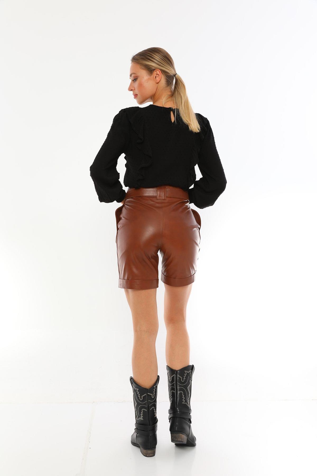 Basics&More Kadın Kuşaklı Fındık Deri Şort - S01