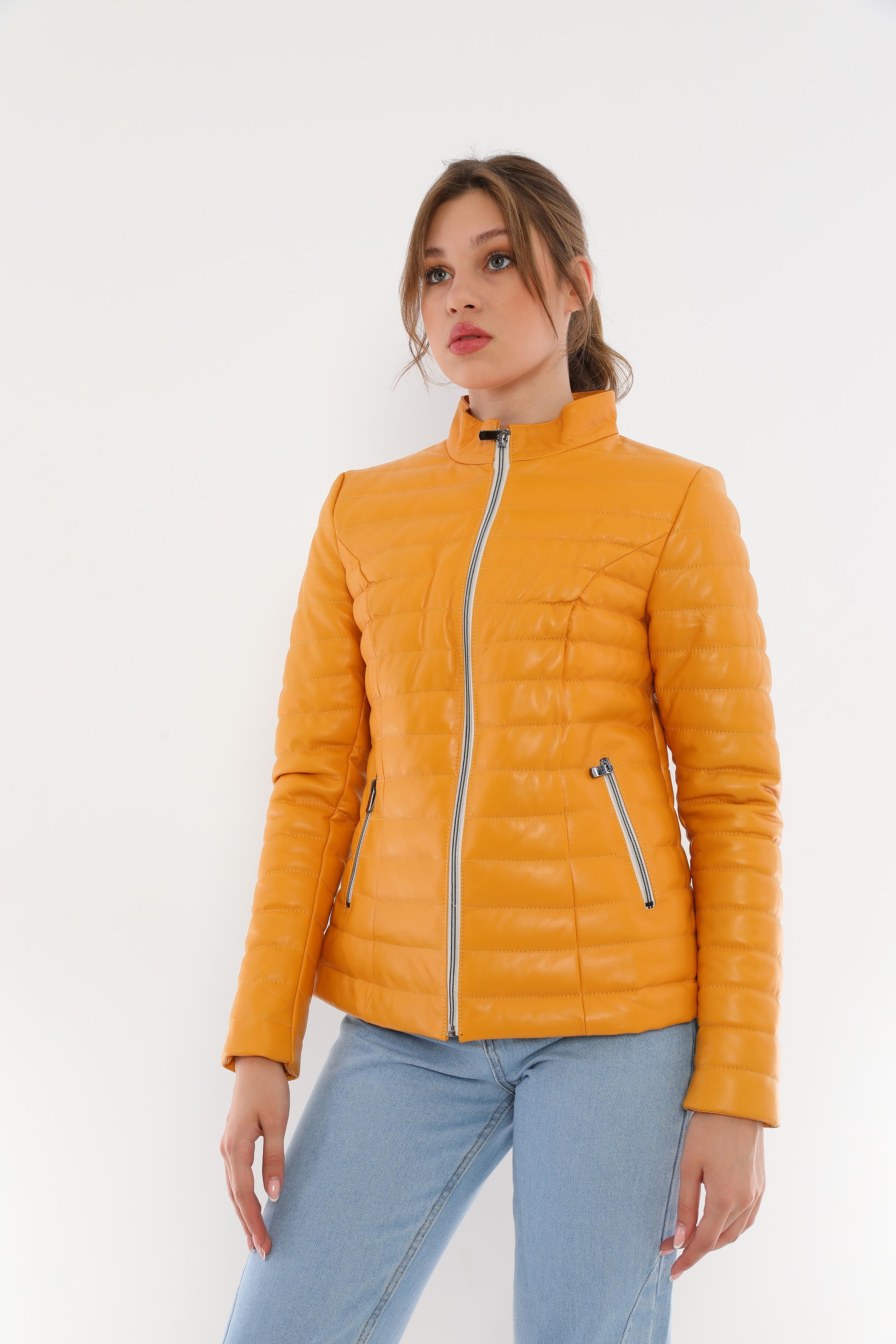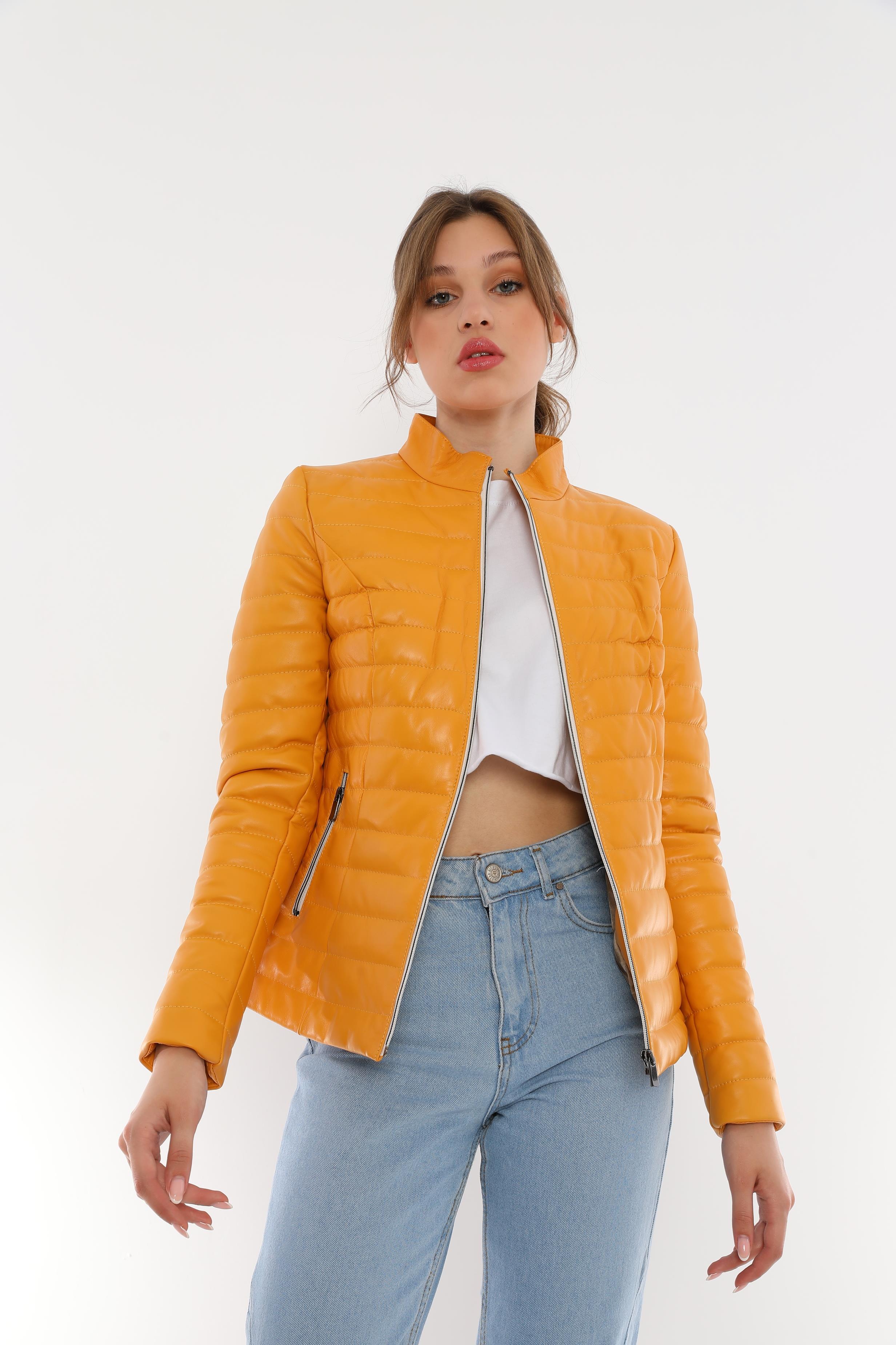 Basics&More Kadın Şişme Sarı Deri Ceket - IA90