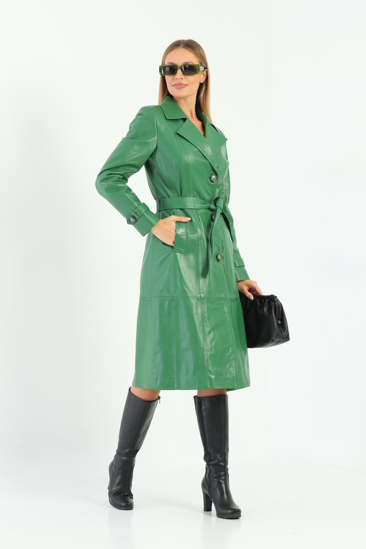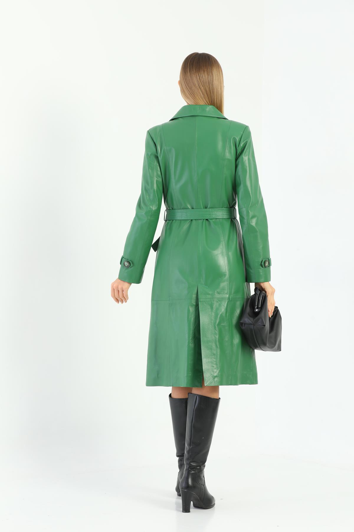 Basics&More Kadın Trenc Yeşil Deri Ceket - Brenda