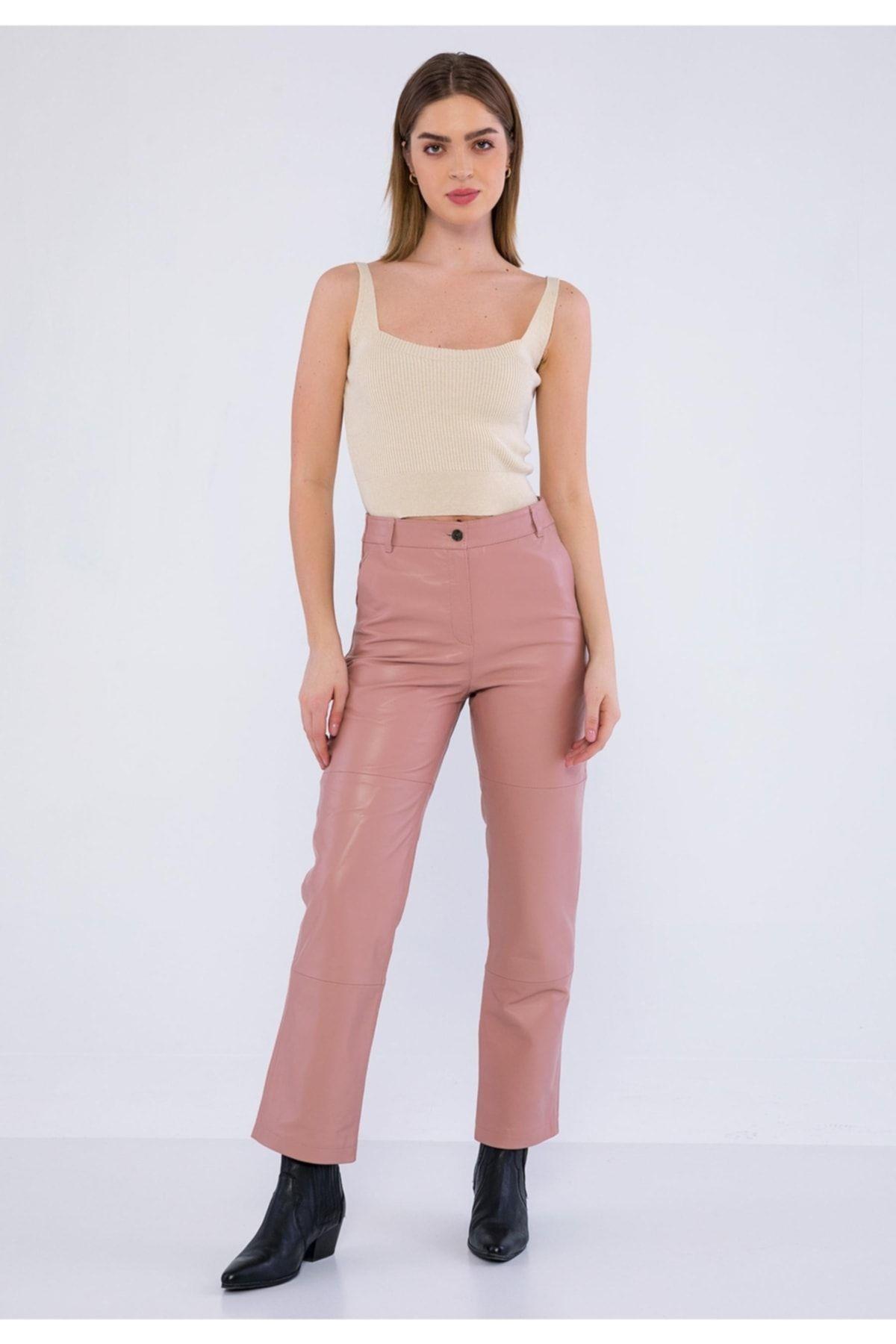 Basics&More Kadın Yandan Cepli Pudra Deri Pantolon - P03
