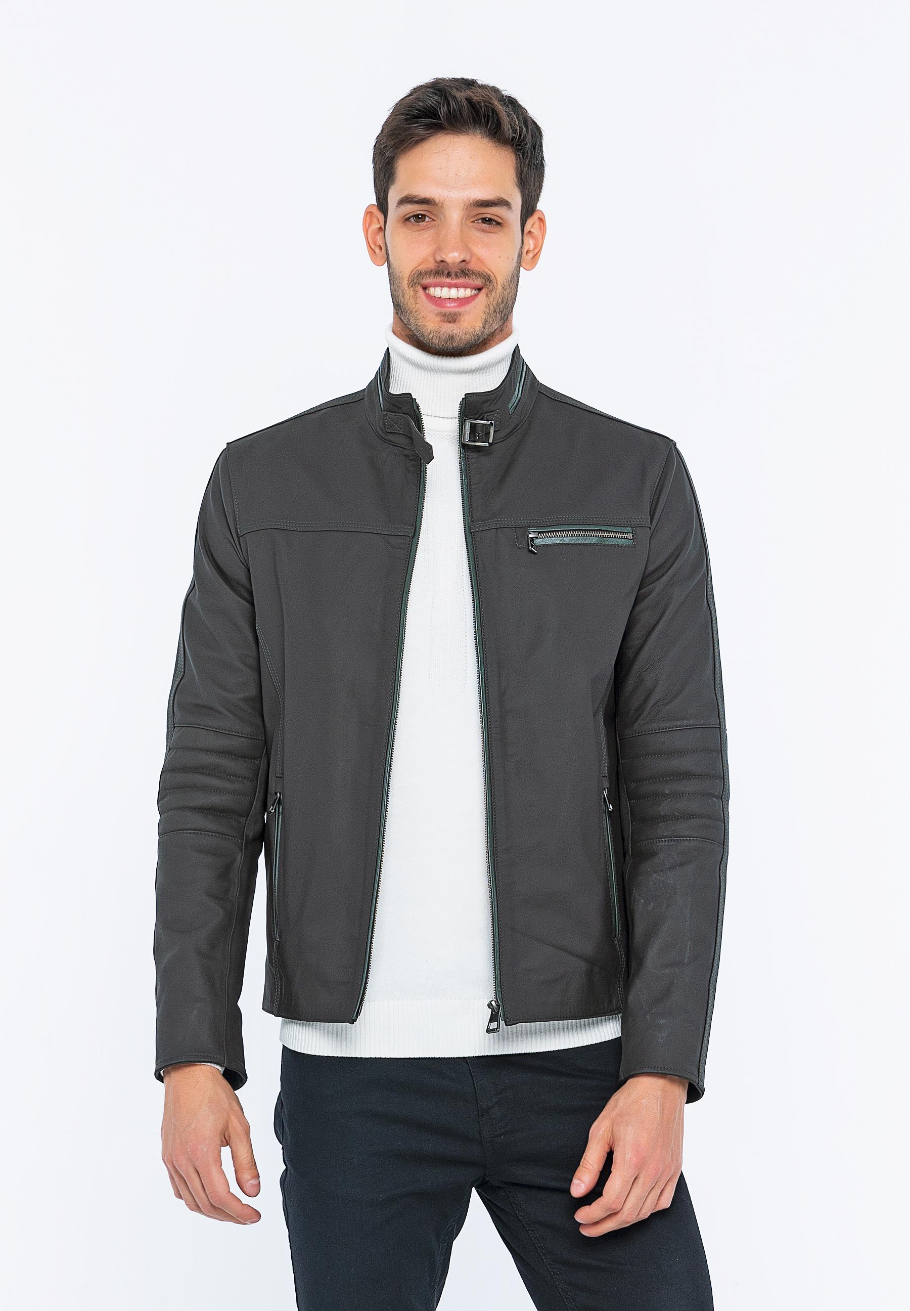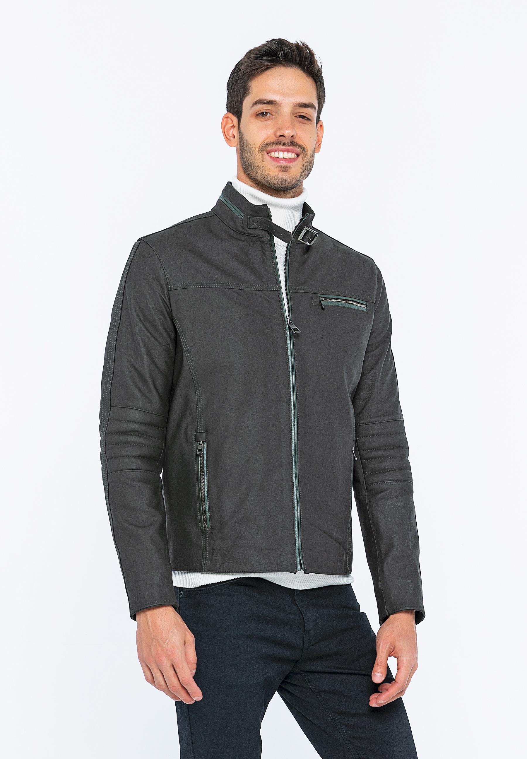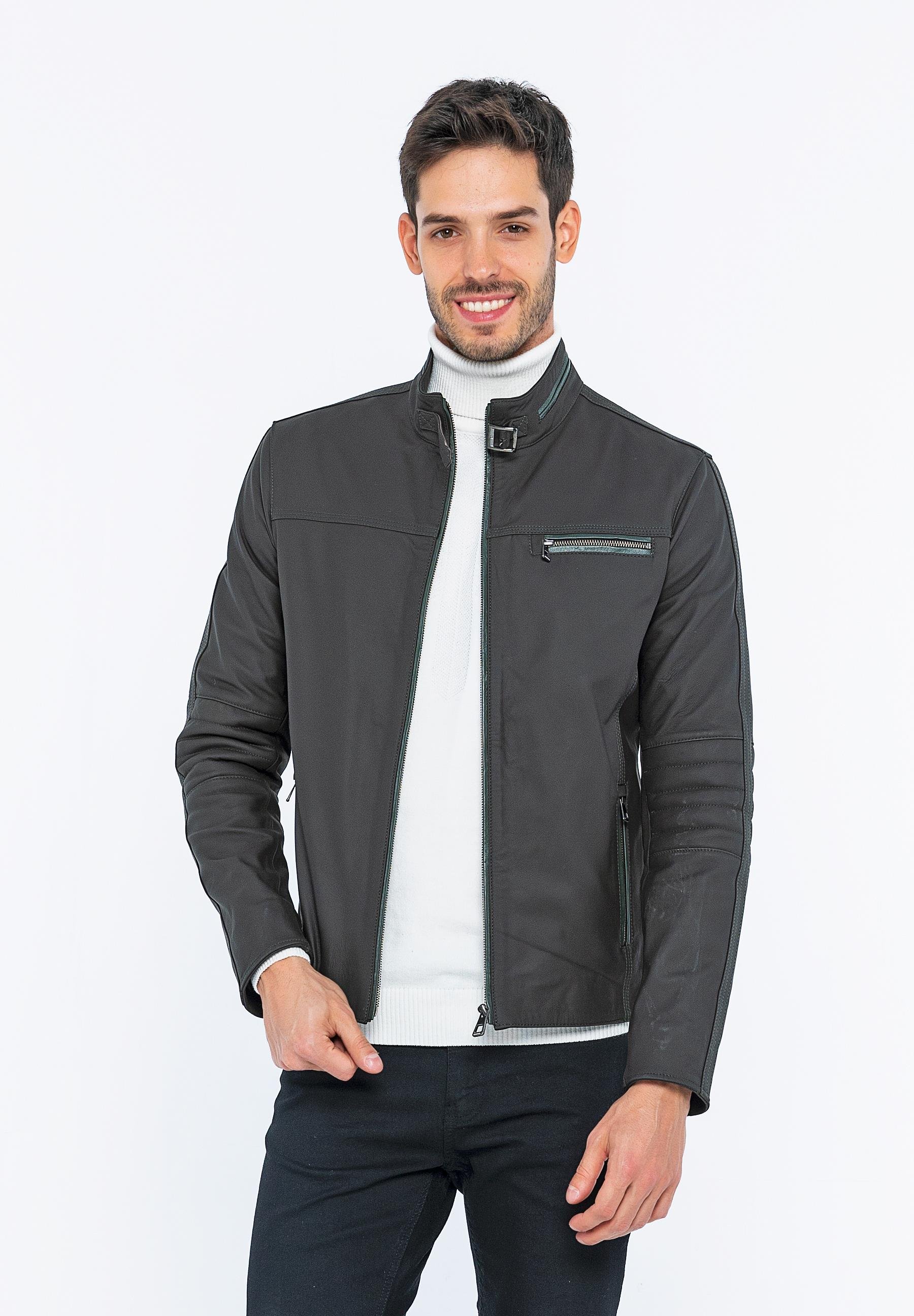 Basics&More Biker Coffee Taffeta Leather Jacket - E/47