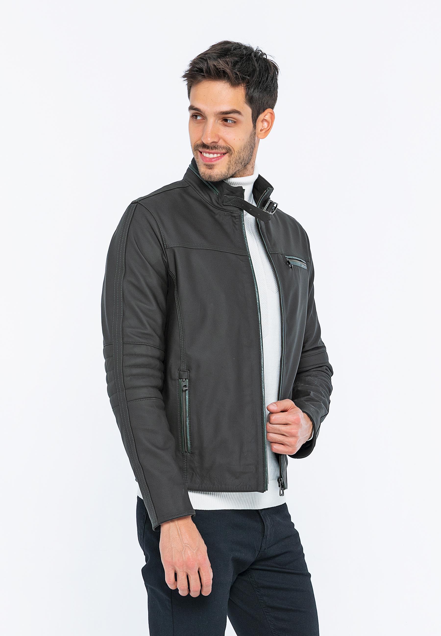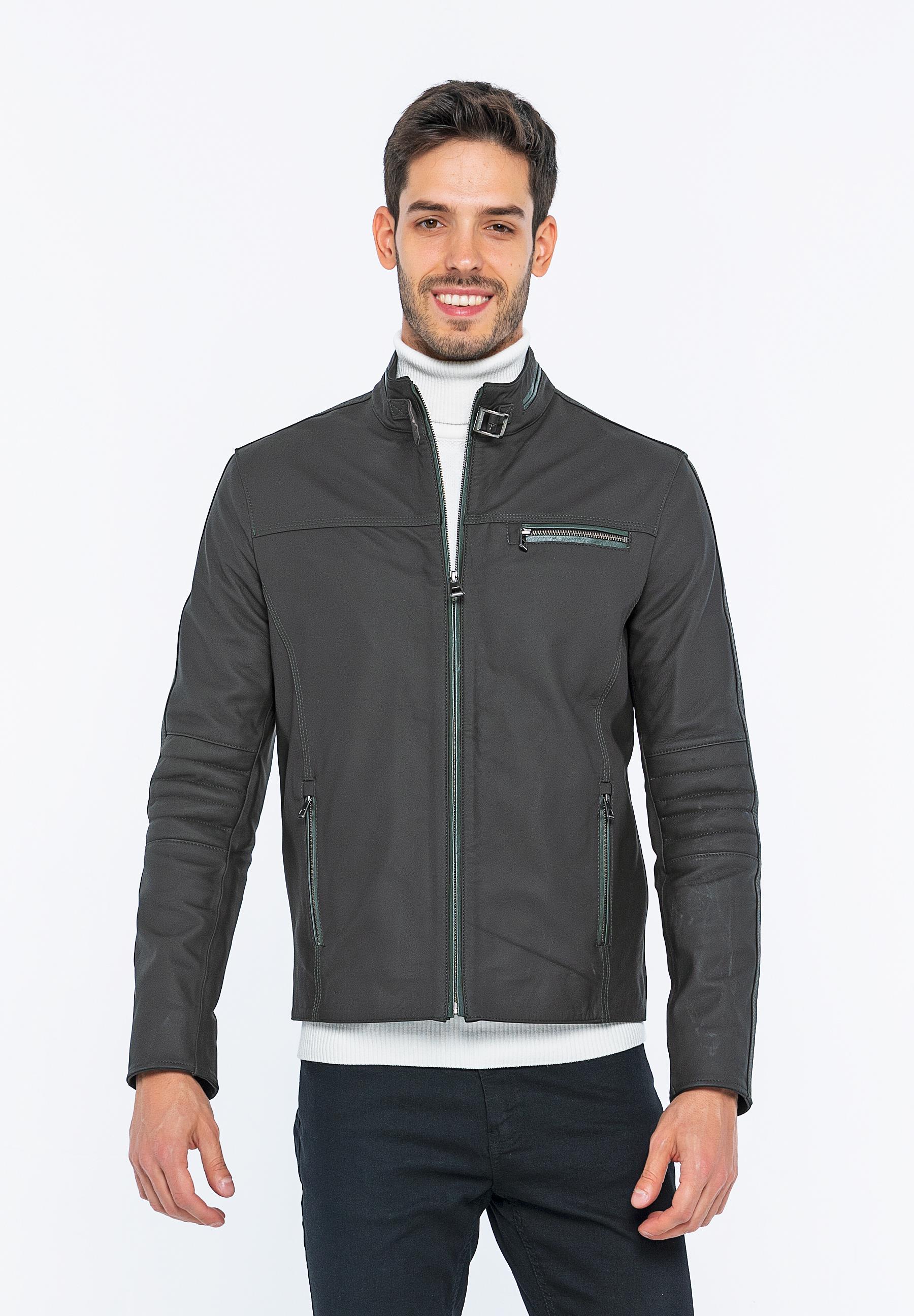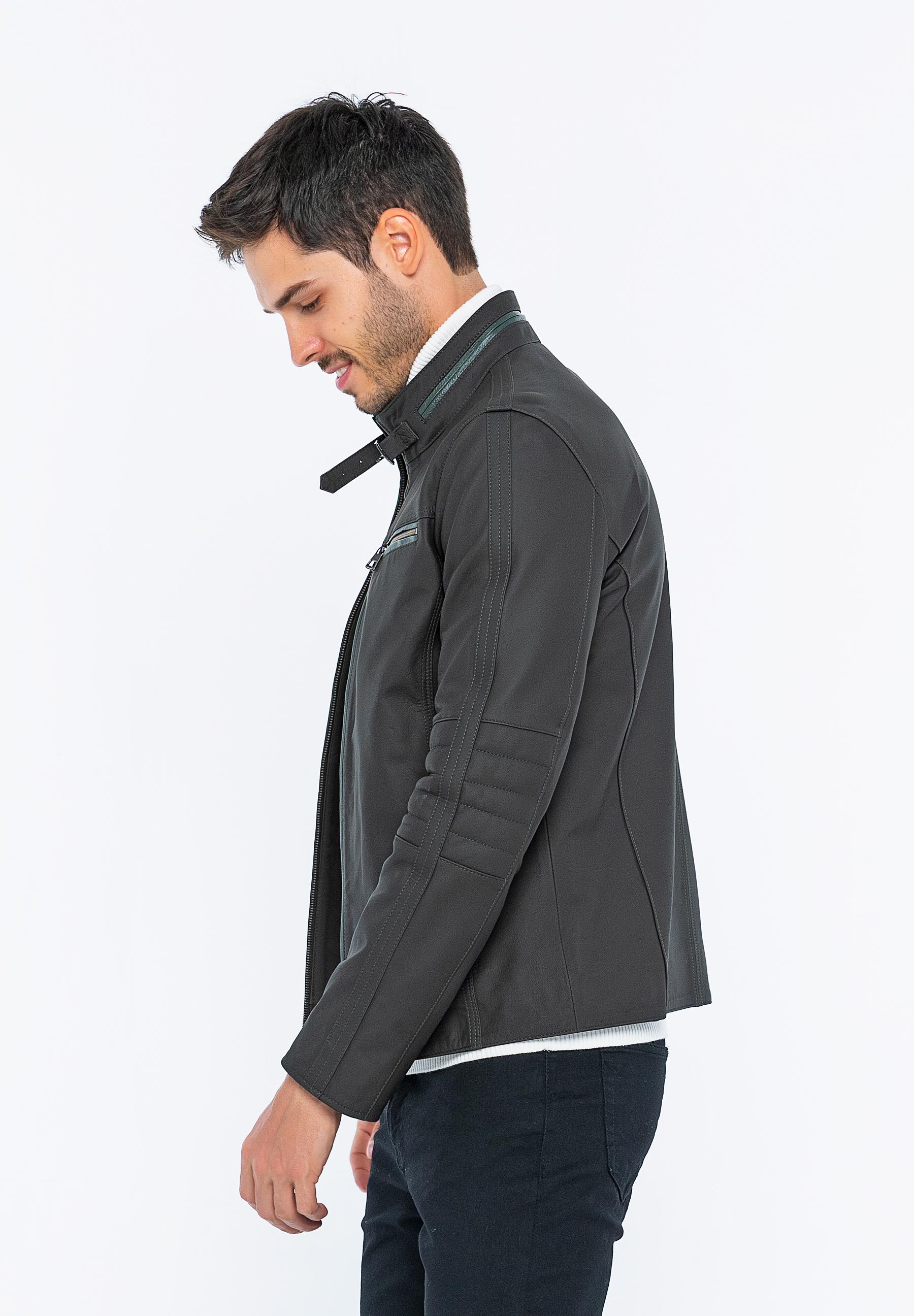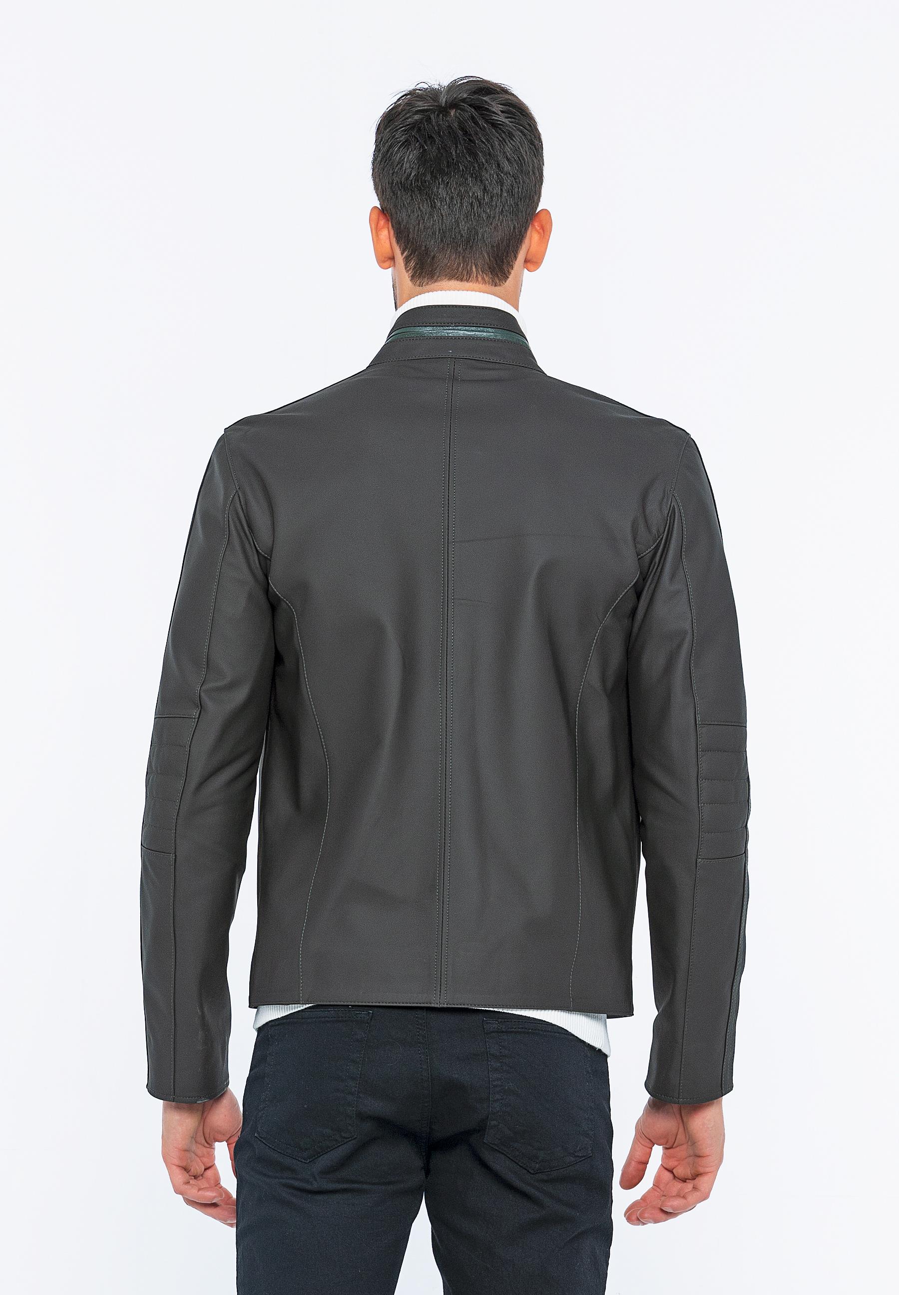 Basics&More Biker Coffee Taffeta Leather Jacket - E/47