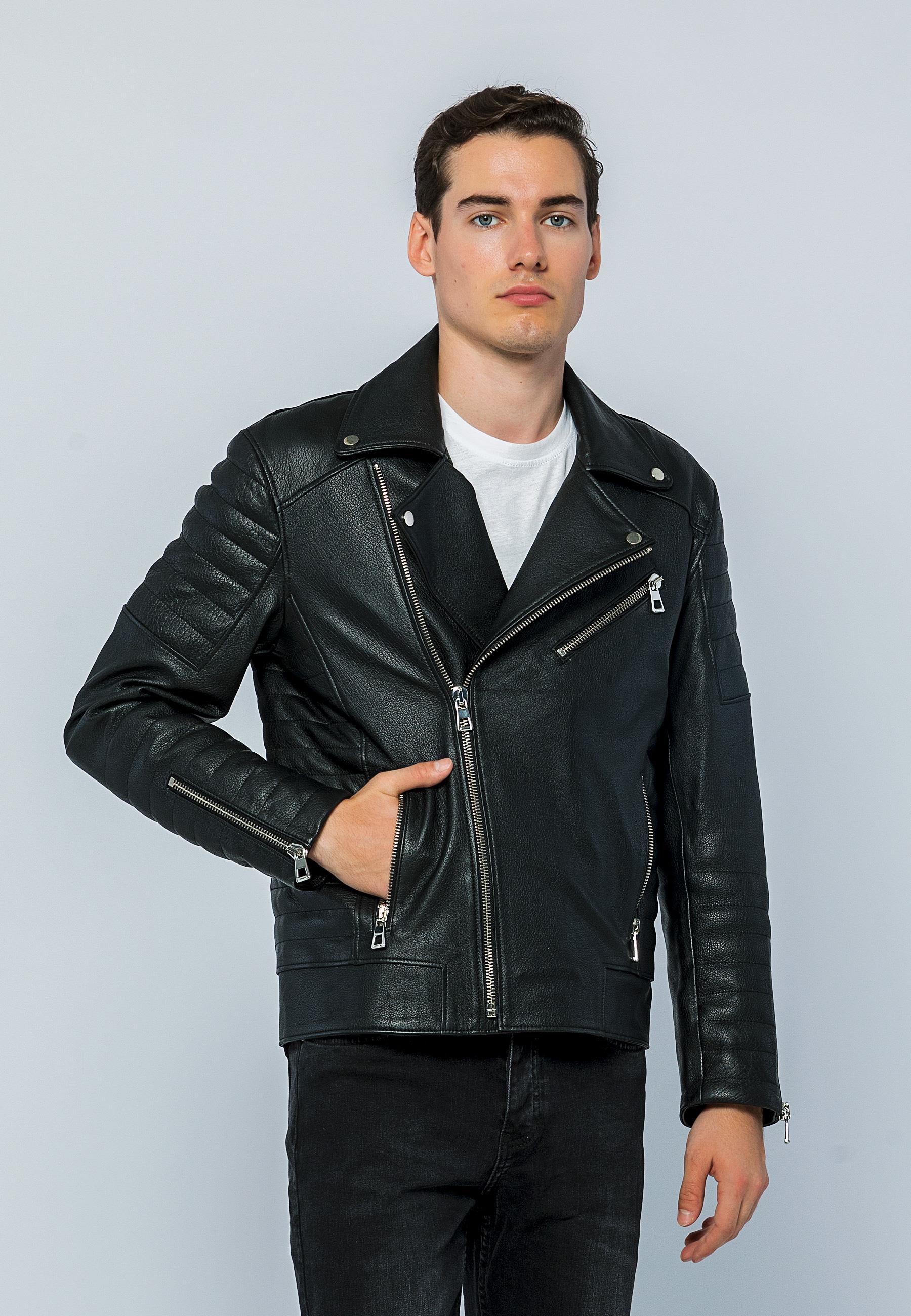 Outer fabric material: 100% leather Lining: 100% polyester Care instructions: Clean with leather care products Collar: Collar collar Connection: Zipper Pockets: Chest pocket, zippered pockets Pattern: Plain Details: Lined fastener, zipper connection Fit: Normal Fit Shape: Flat Length: Normal Sleeve length: Long
