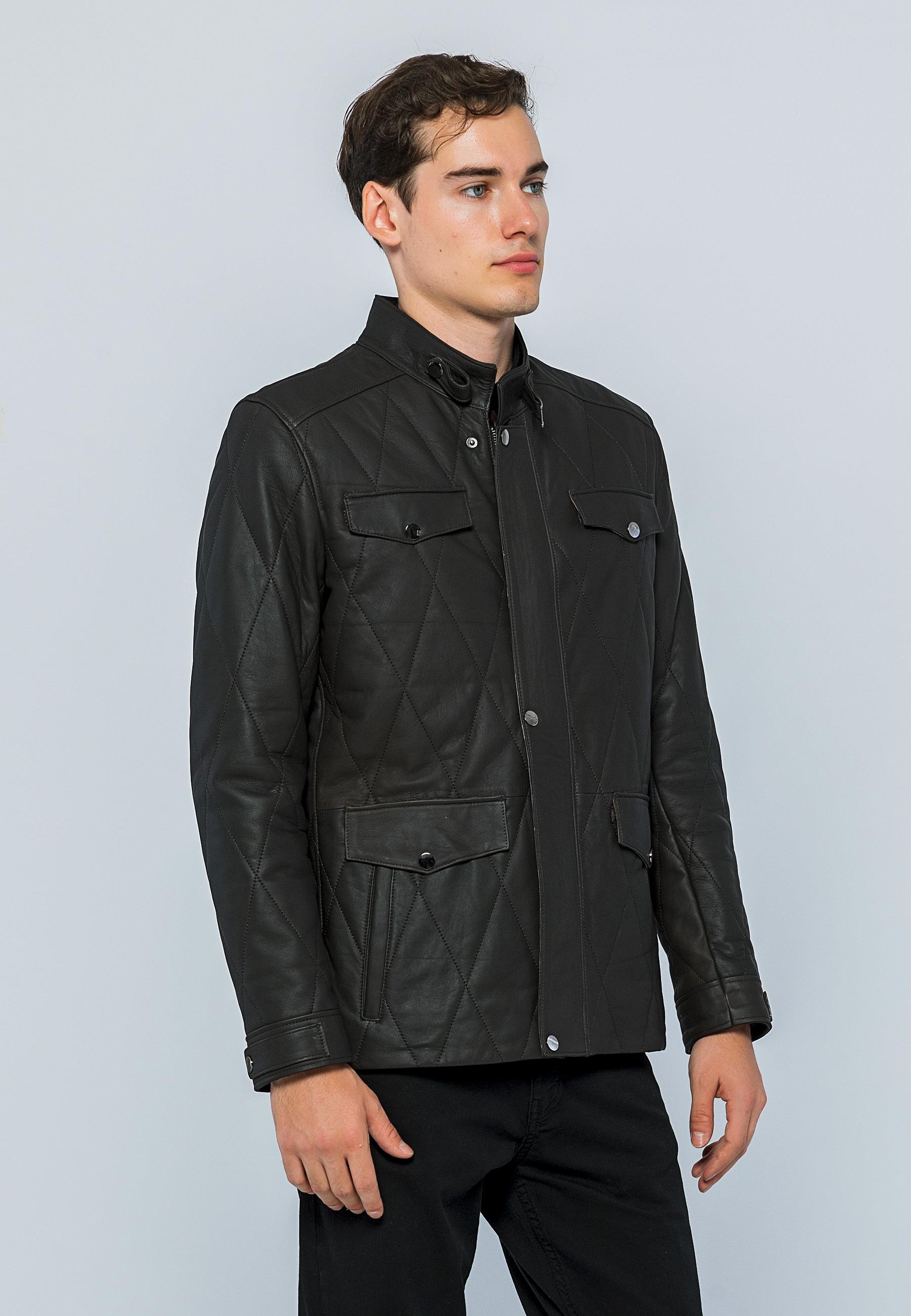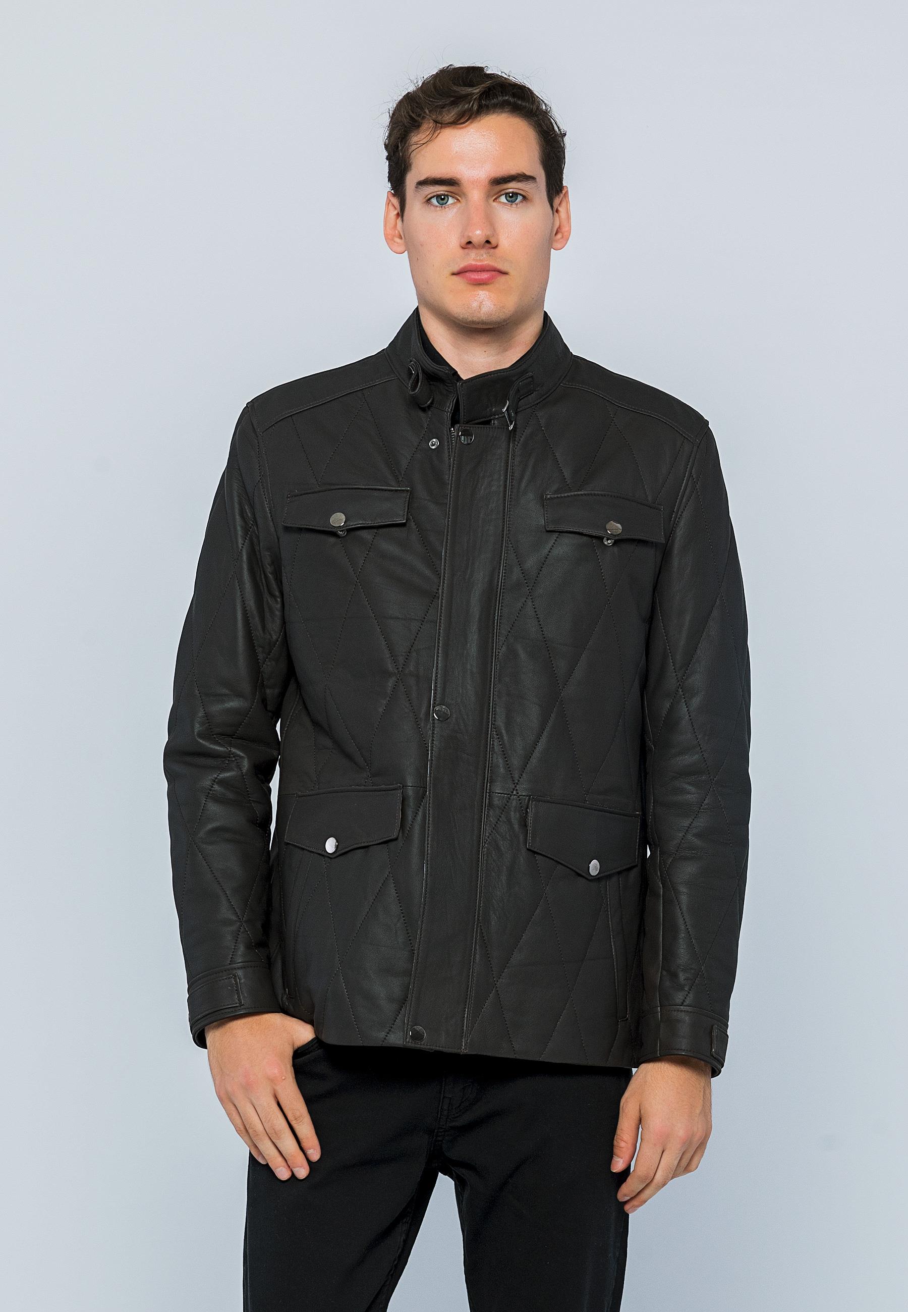 Basics&More Men Quilted Leather Jacket with Pockets - RONALDO