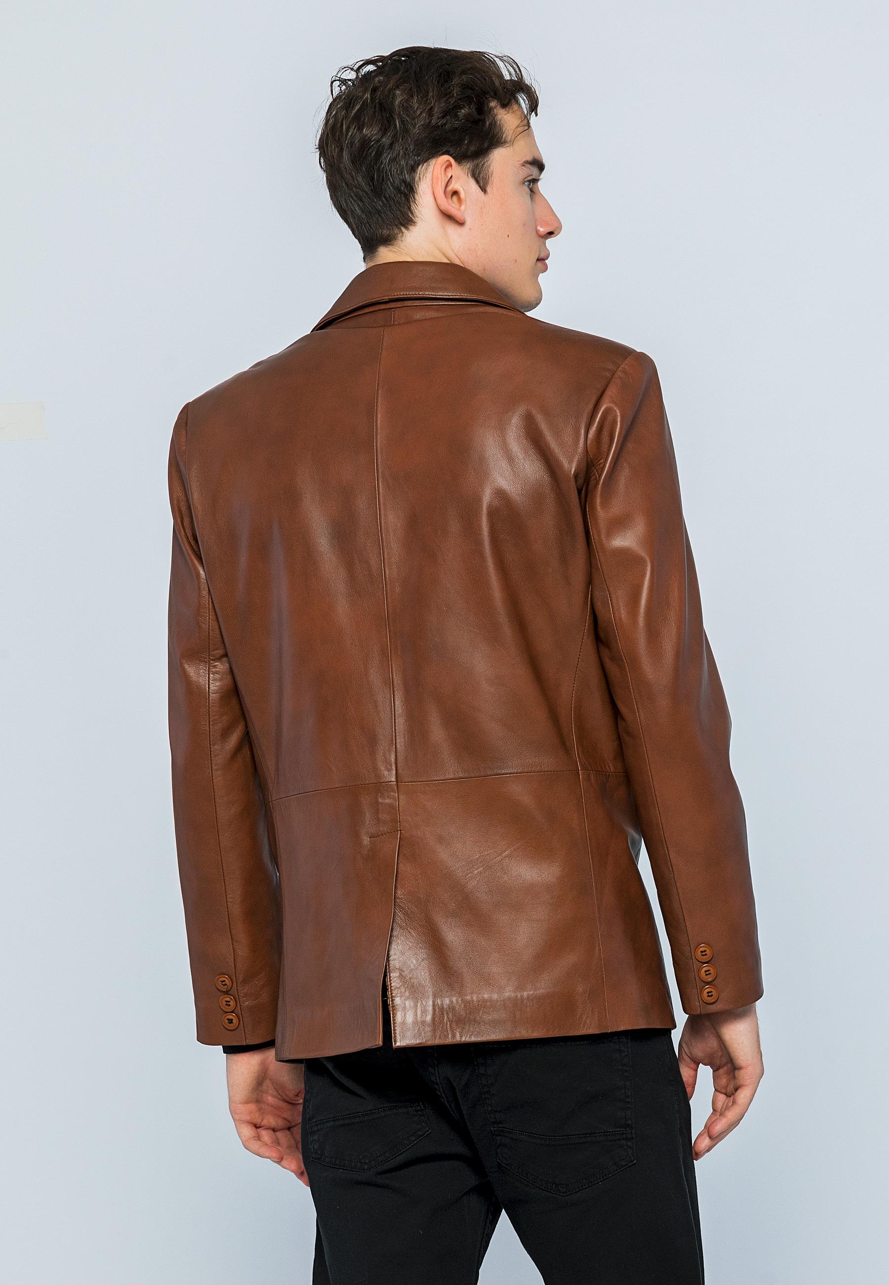 Basics&More Men Chestnut Leather Blazer Jacket - Eblazer