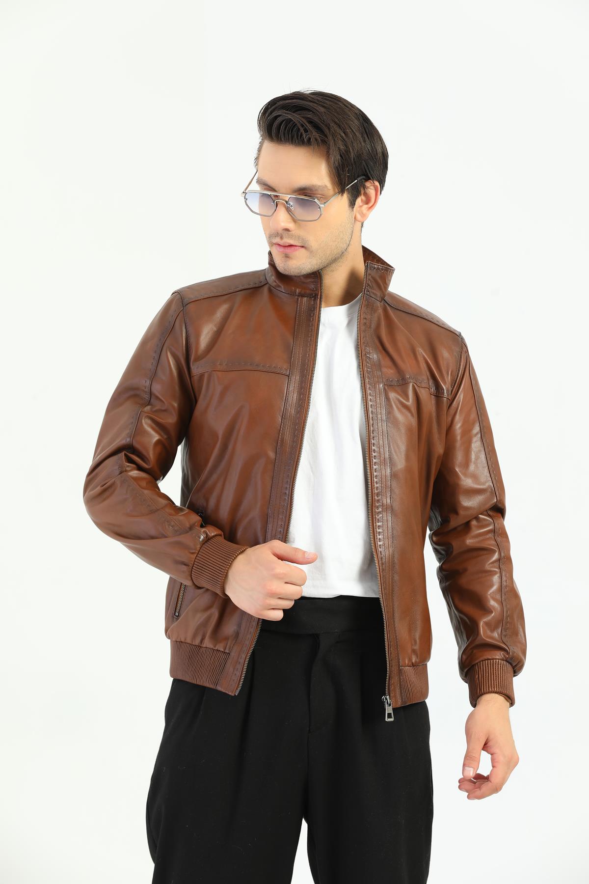 Designed with warm tones of maroon and the elegance of genuine leather, this jacket is a timeless piece that should be in every man's wardrobe. Made of 100% genuine leather material, this product offers both durable and comfortable use. The stylish slim fit cut easily adapts to your sporty and classic combinations.