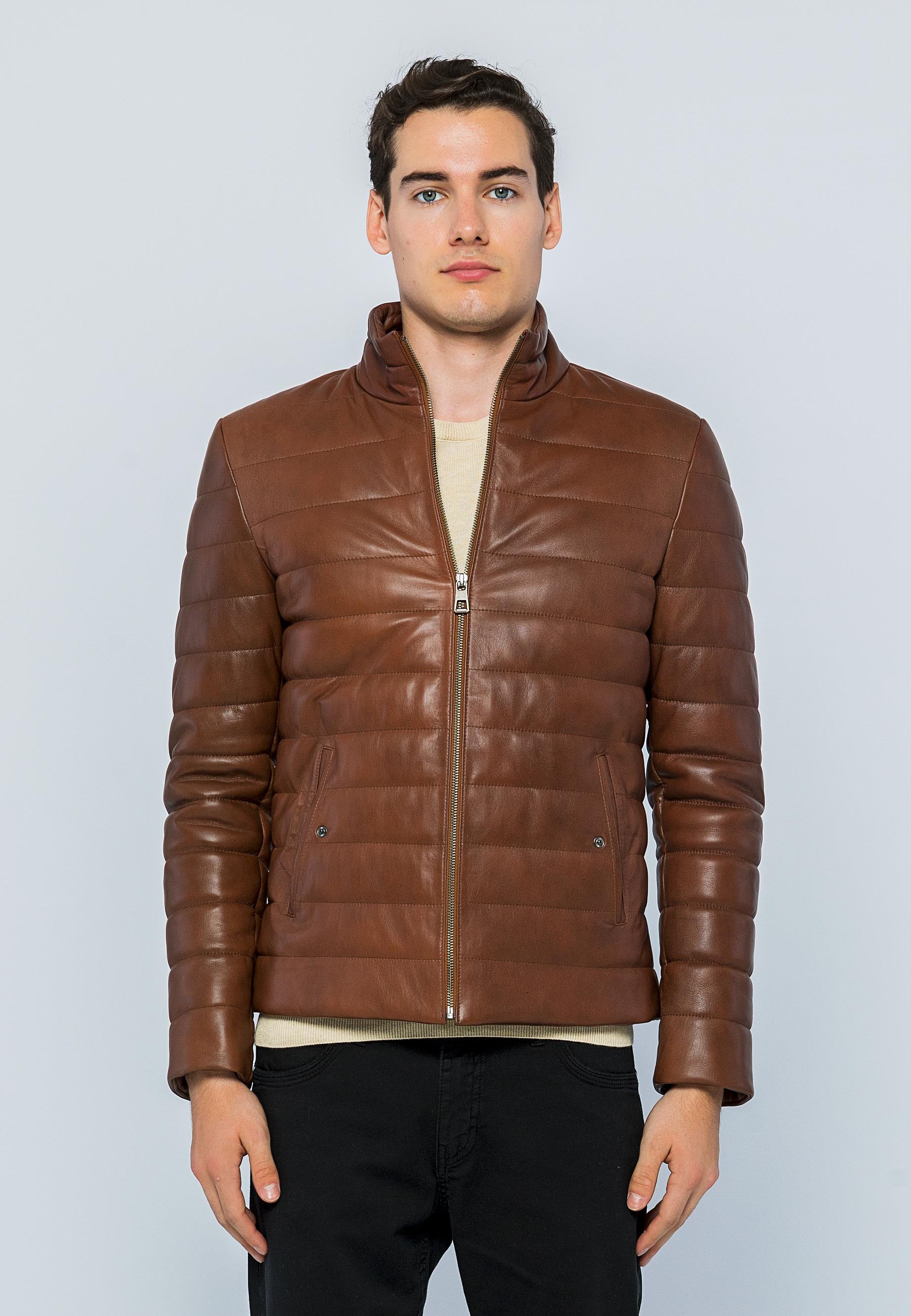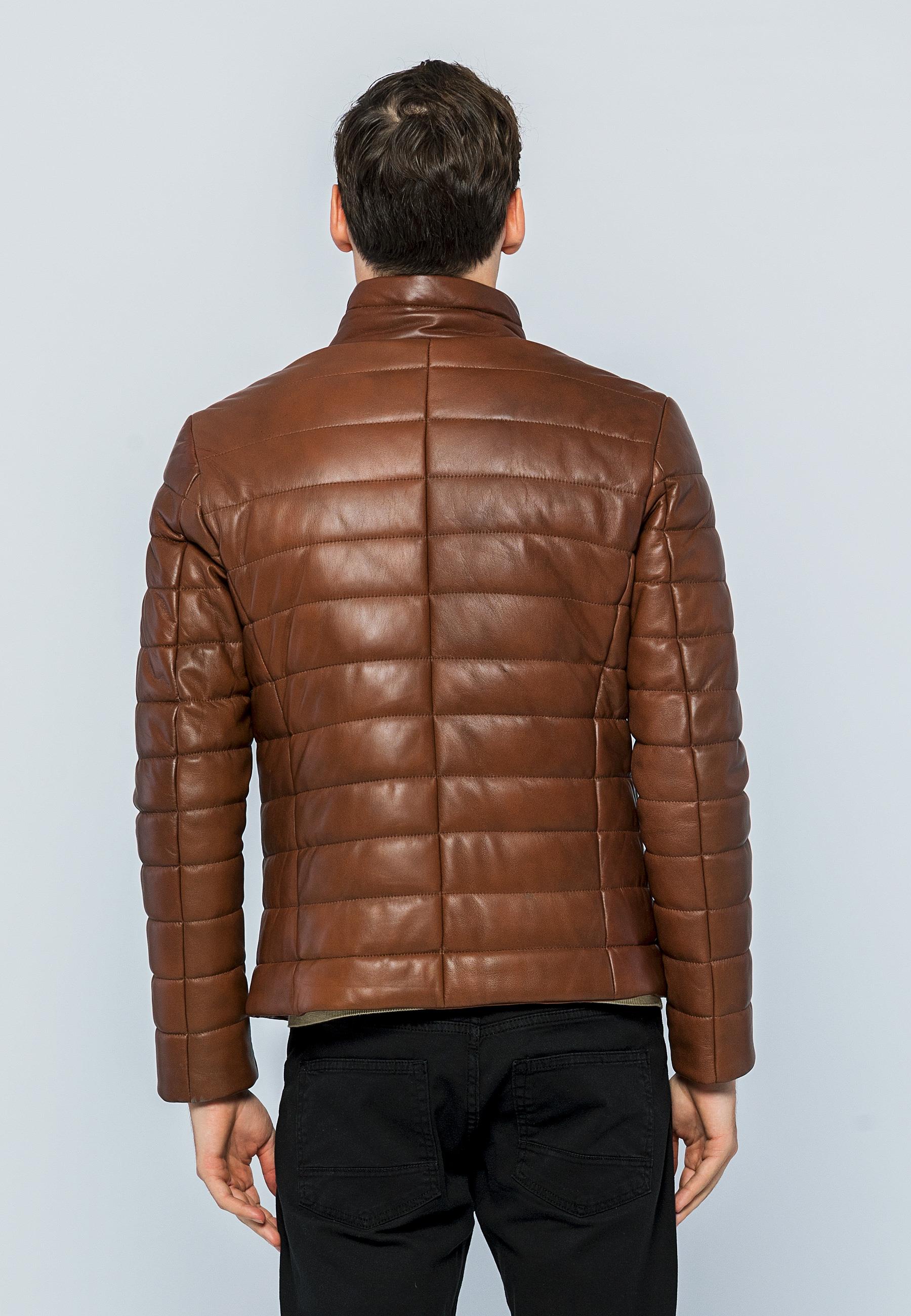 Basics&More Men Inflatable Chestnut Leather Jacket - E8488