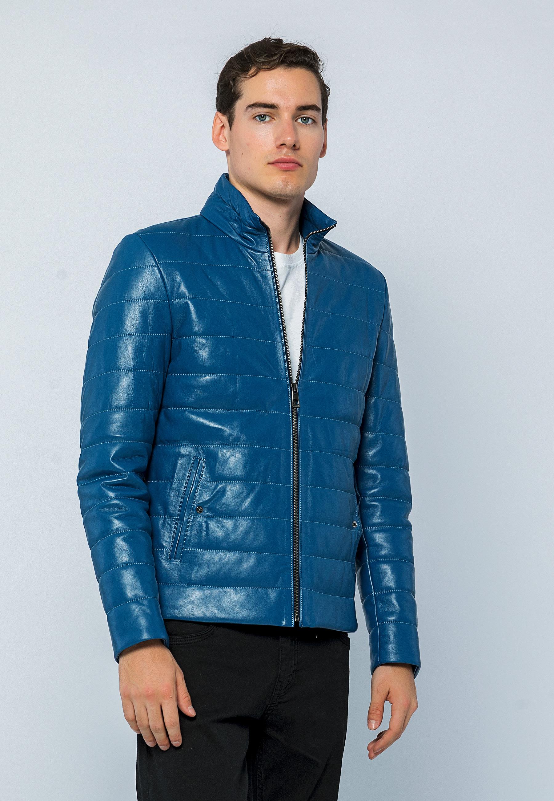 Basics&More Men Inflatable Light Blue Leather Jacket - E8488
