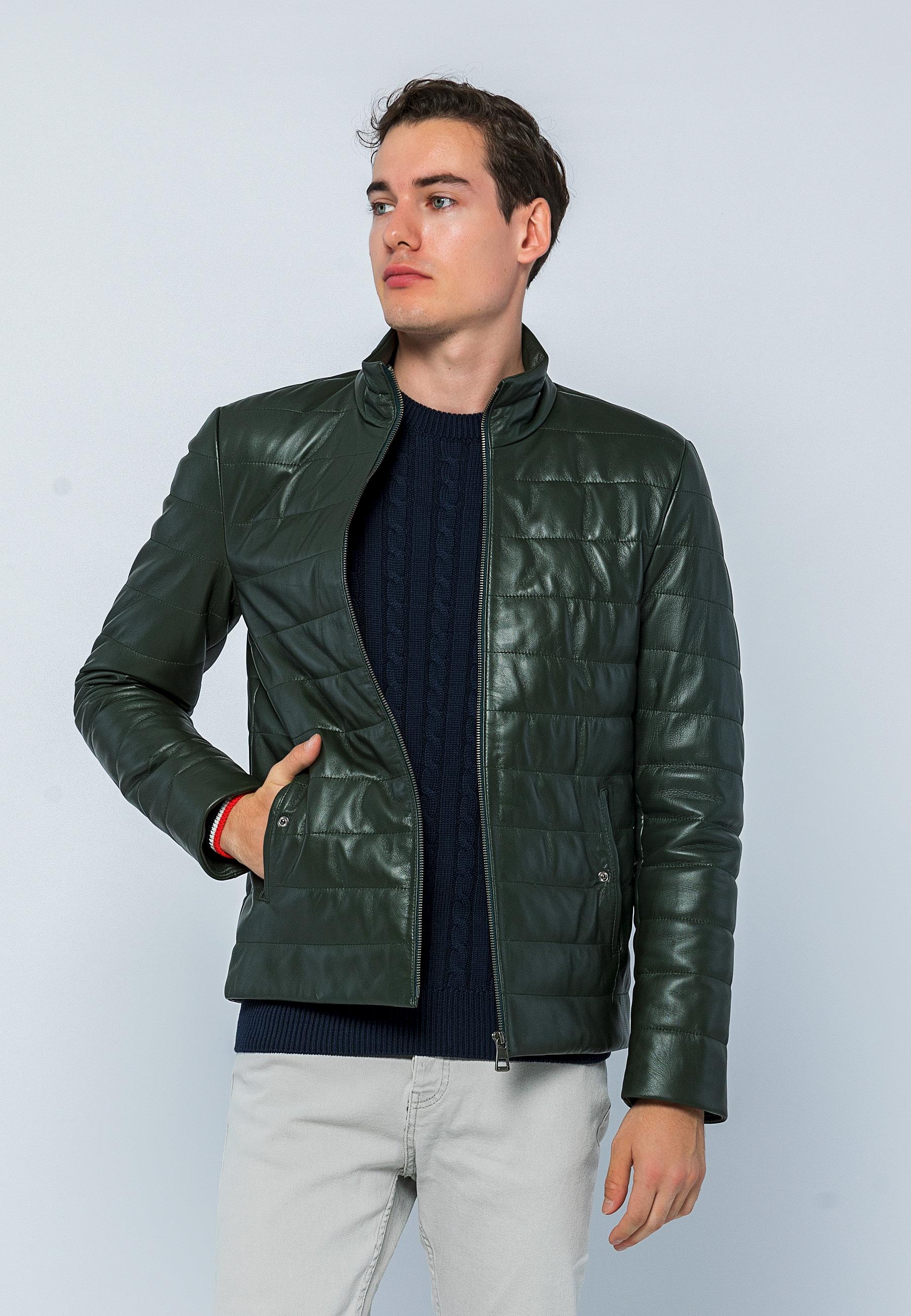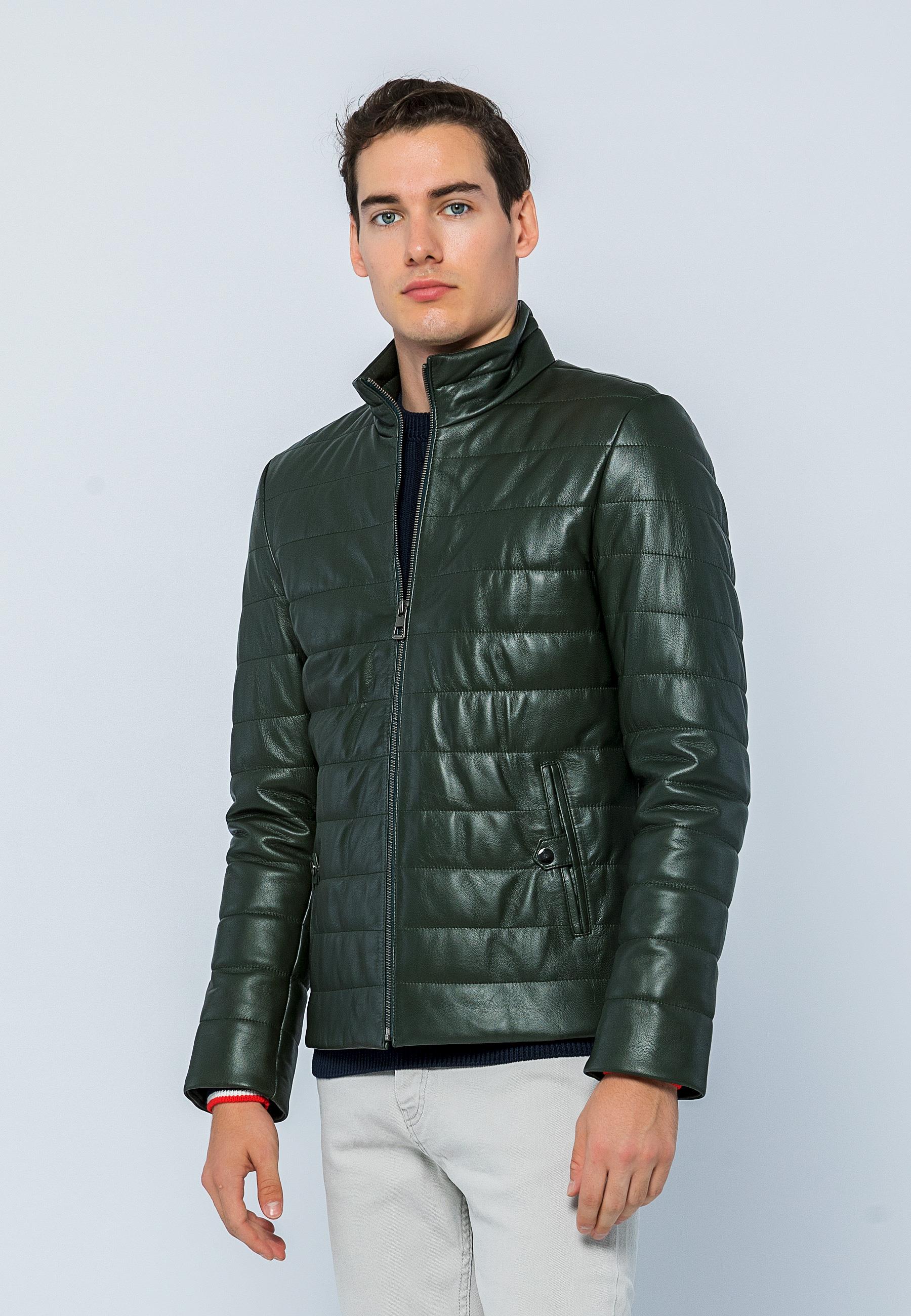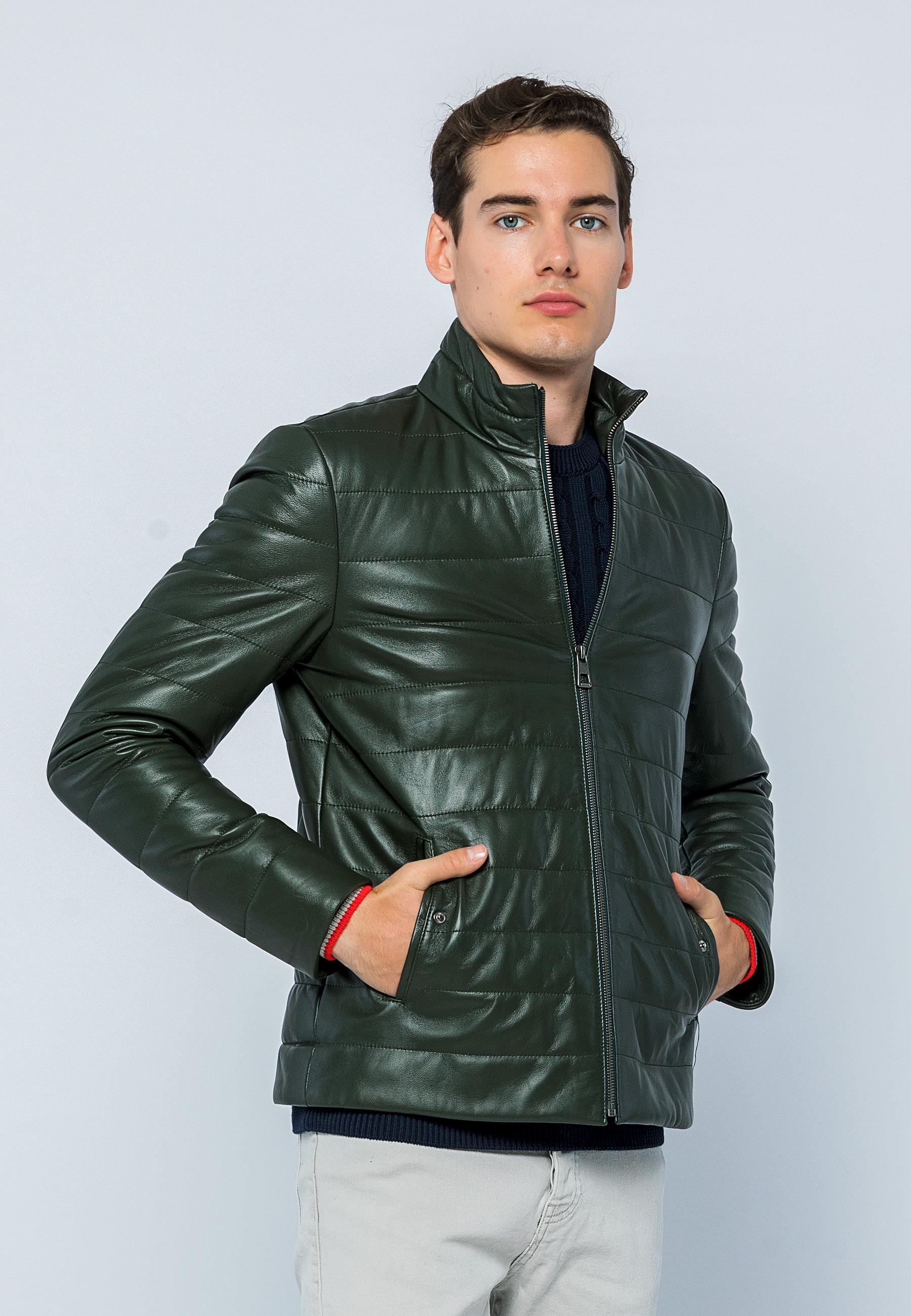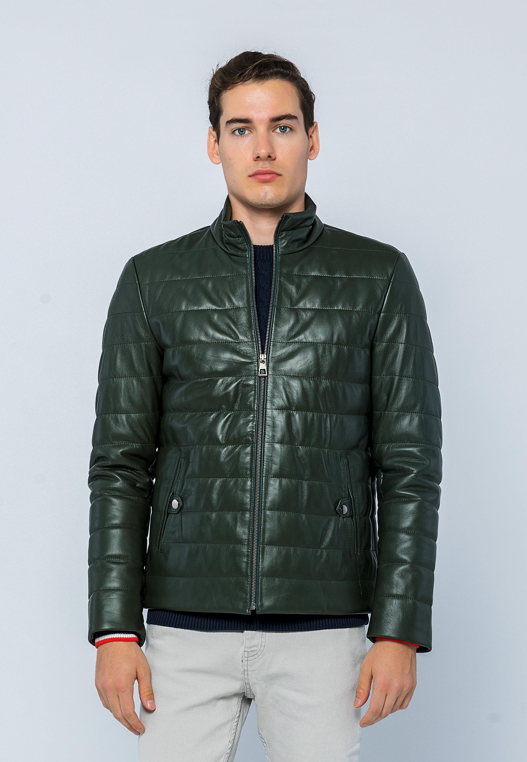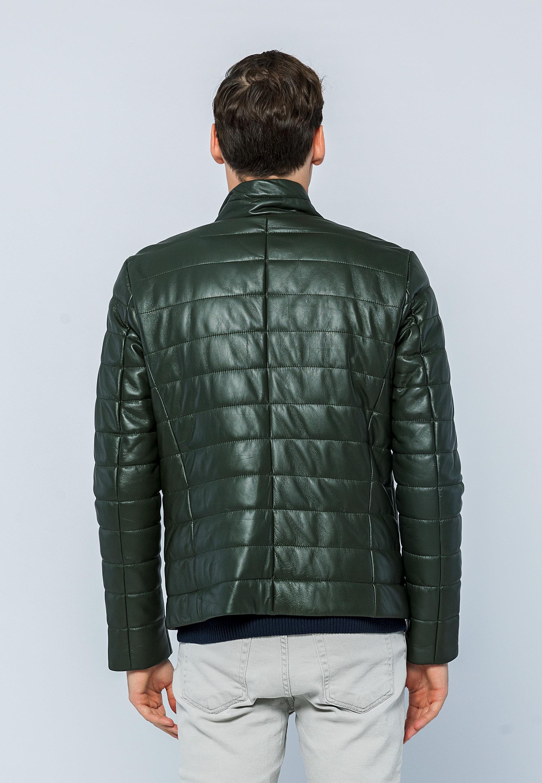 Basics&More Men Inflatable Dark Green Leather Jacket - E8488
