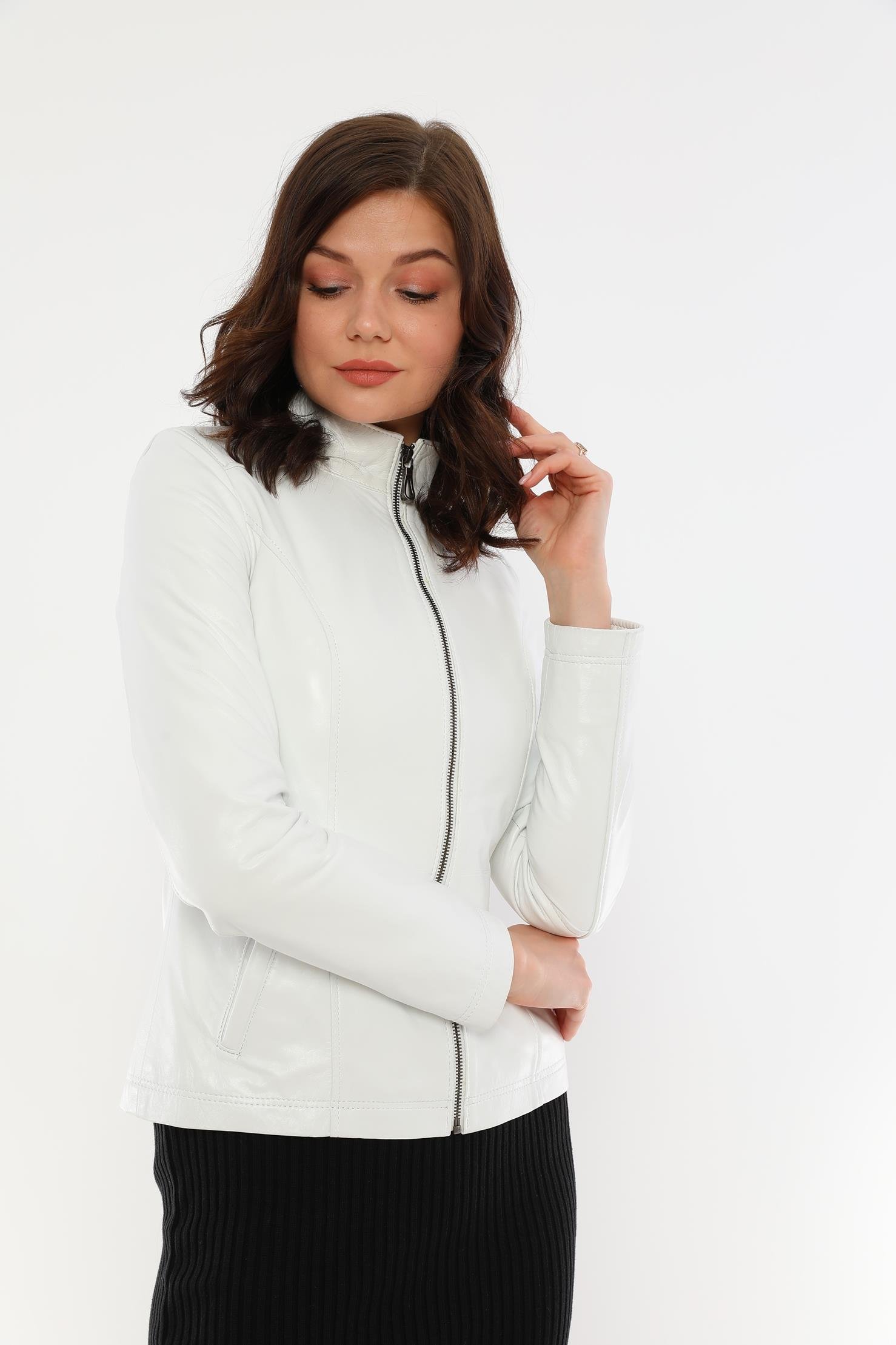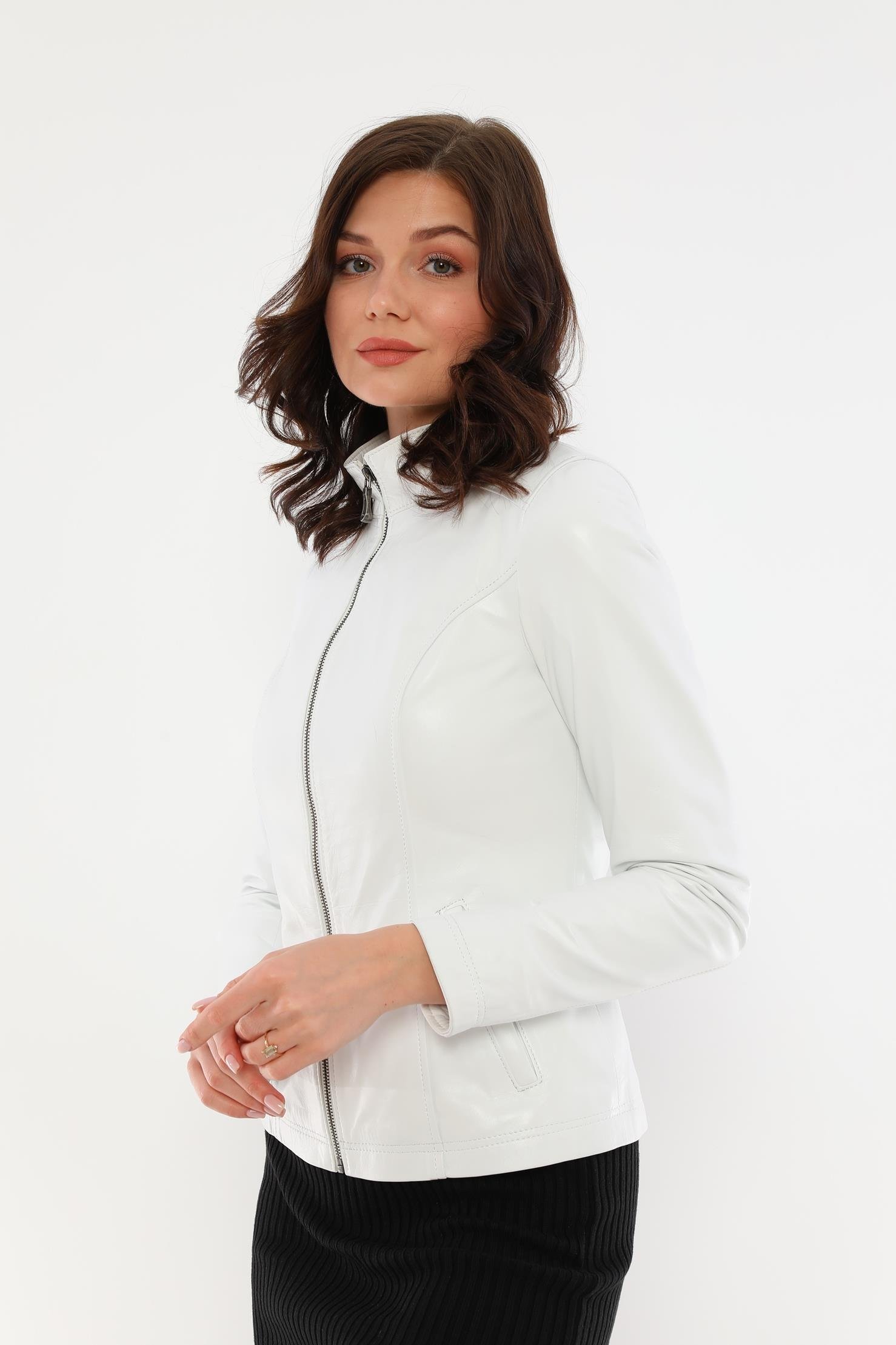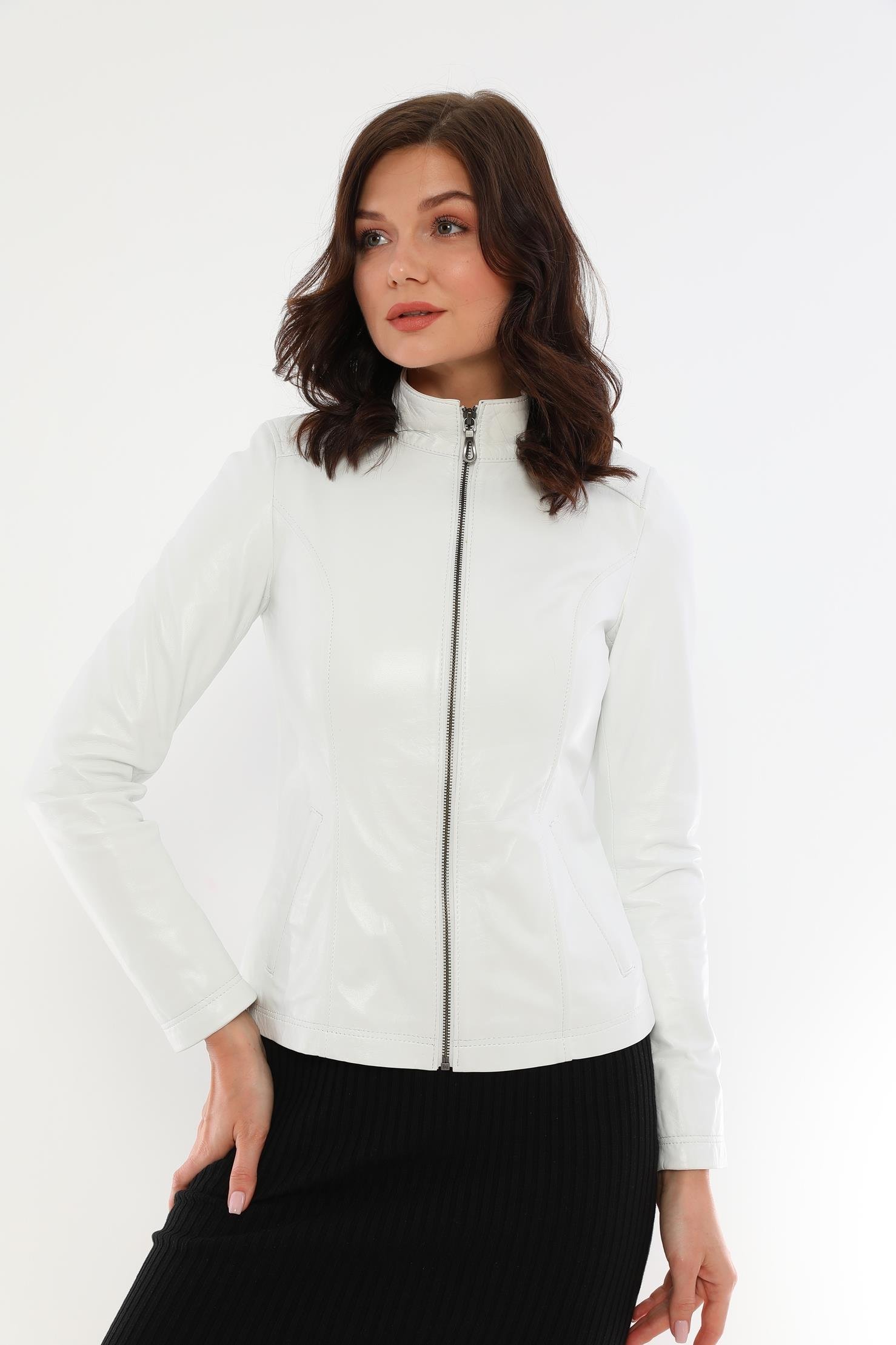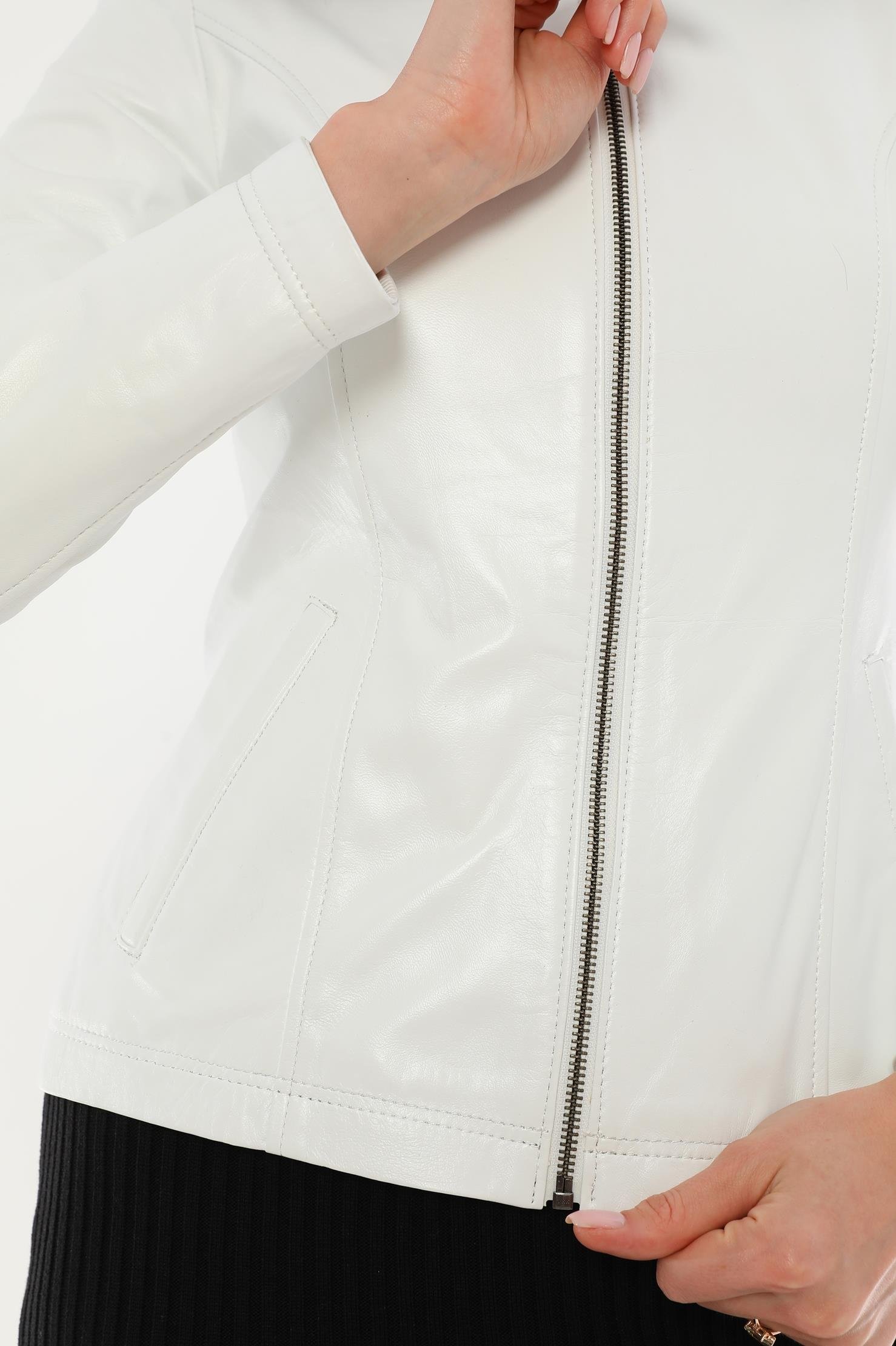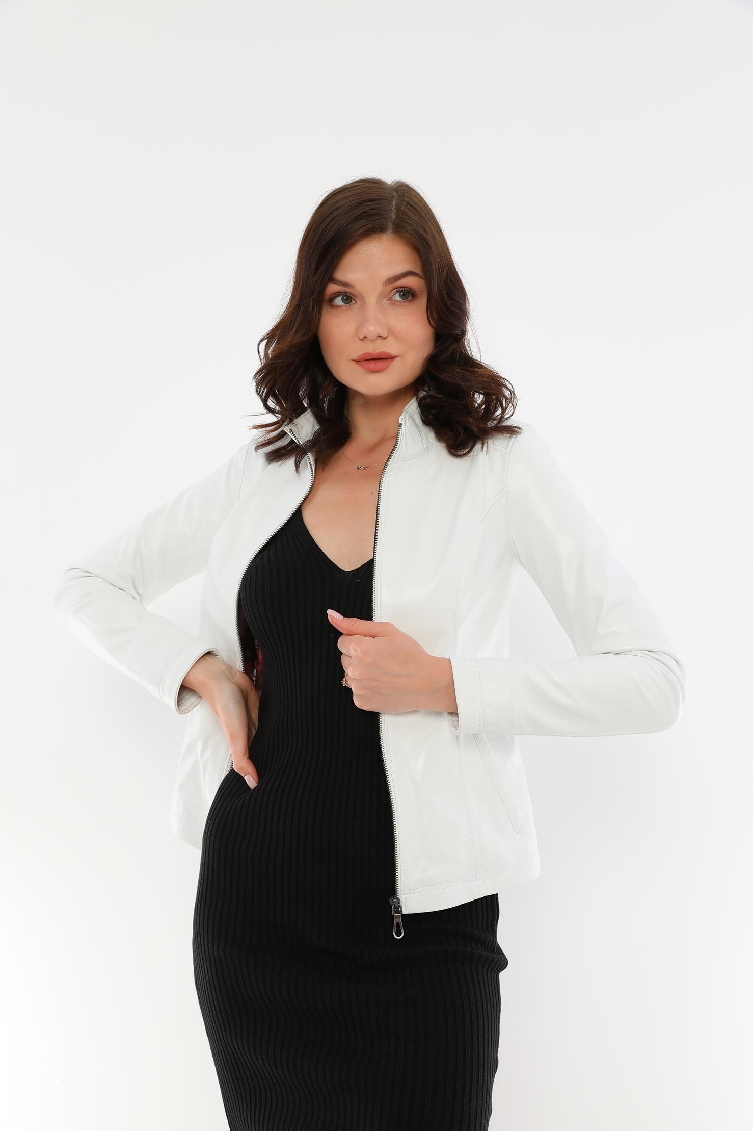 Designed for those looking for an eye-catching style and functional design, the Women's White Leather Jacket is a candidate to be one of the most valuable pieces in the wardrobe of the modern woman. Made of carefully selected high-quality 100% genuine lamb leather material, this jacket perfectly complements your combinations for both daily use and special events.