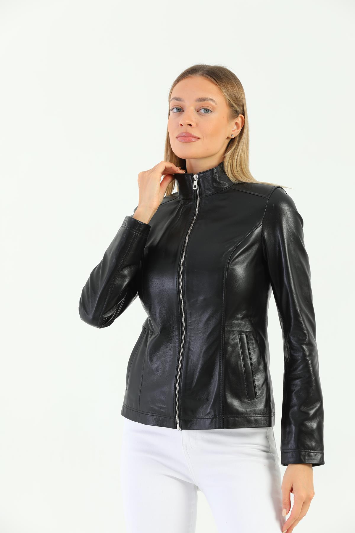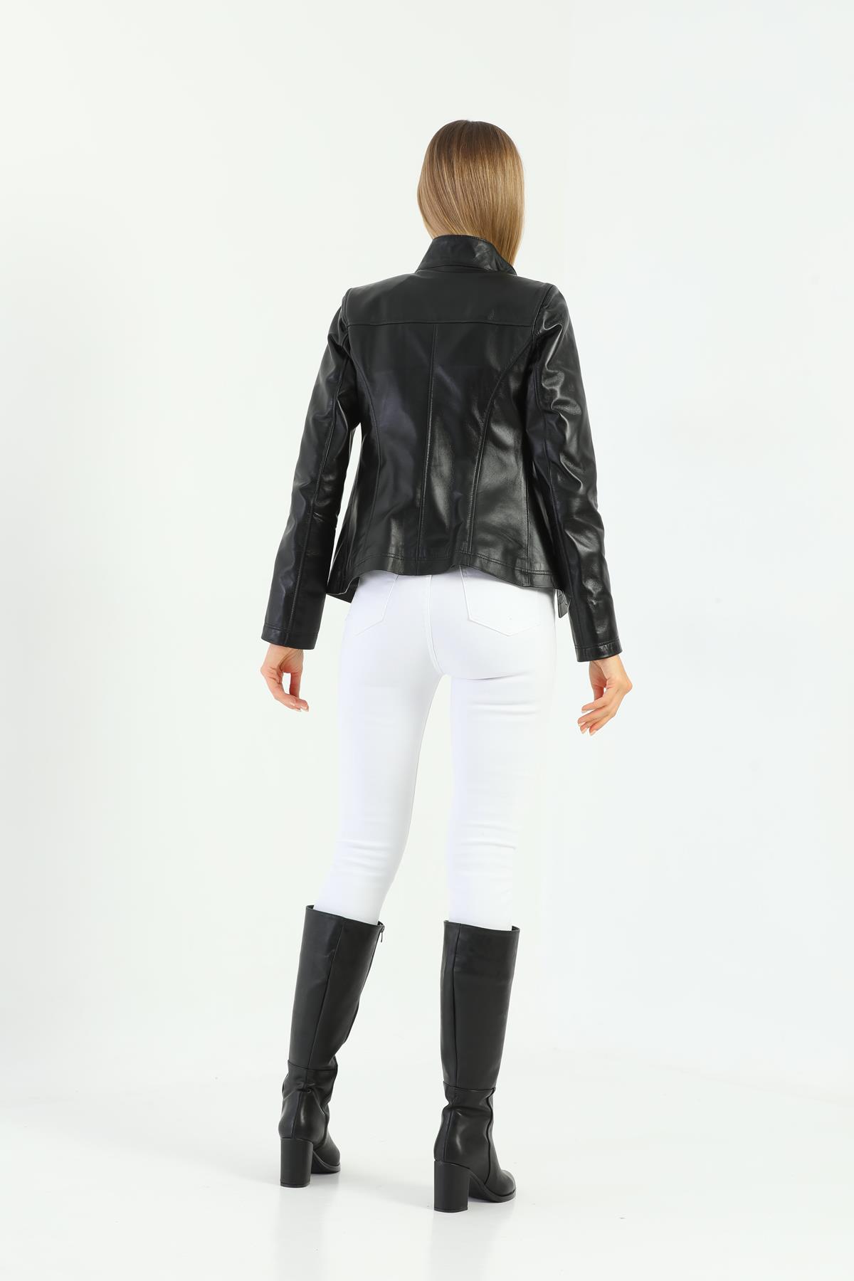 Designed for those looking for an eye-catching style and functional design, the Women's Black Leather Jacket is a candidate to be one of the most valuable pieces in the wardrobe of the modern woman. Made of carefully selected high-quality 100% genuine lamb leather material, this jacket perfectly complements your combinations for both daily use and special events.