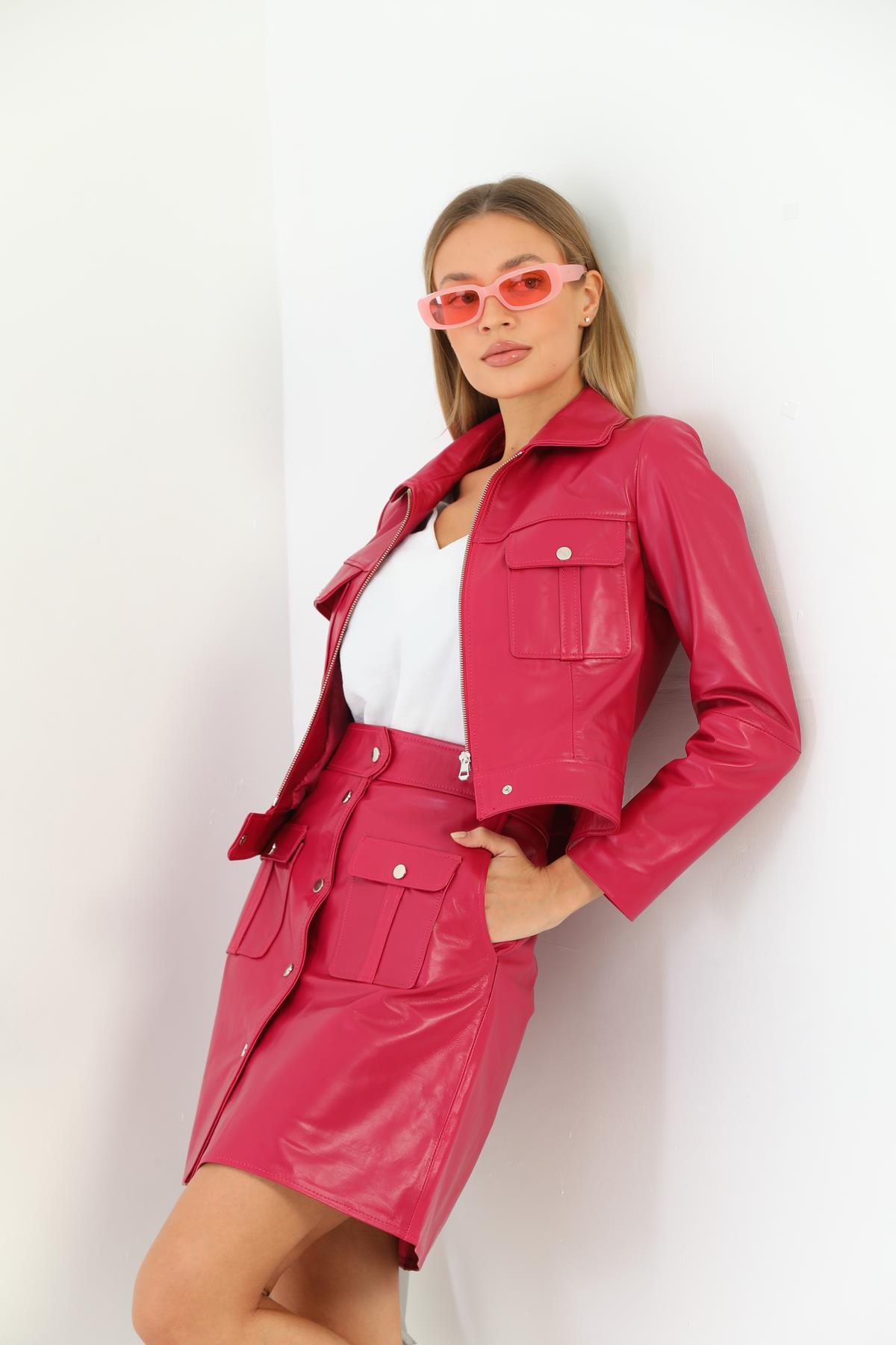 Women's Fuchsia Leather Jacket - Modern and Stylish Design