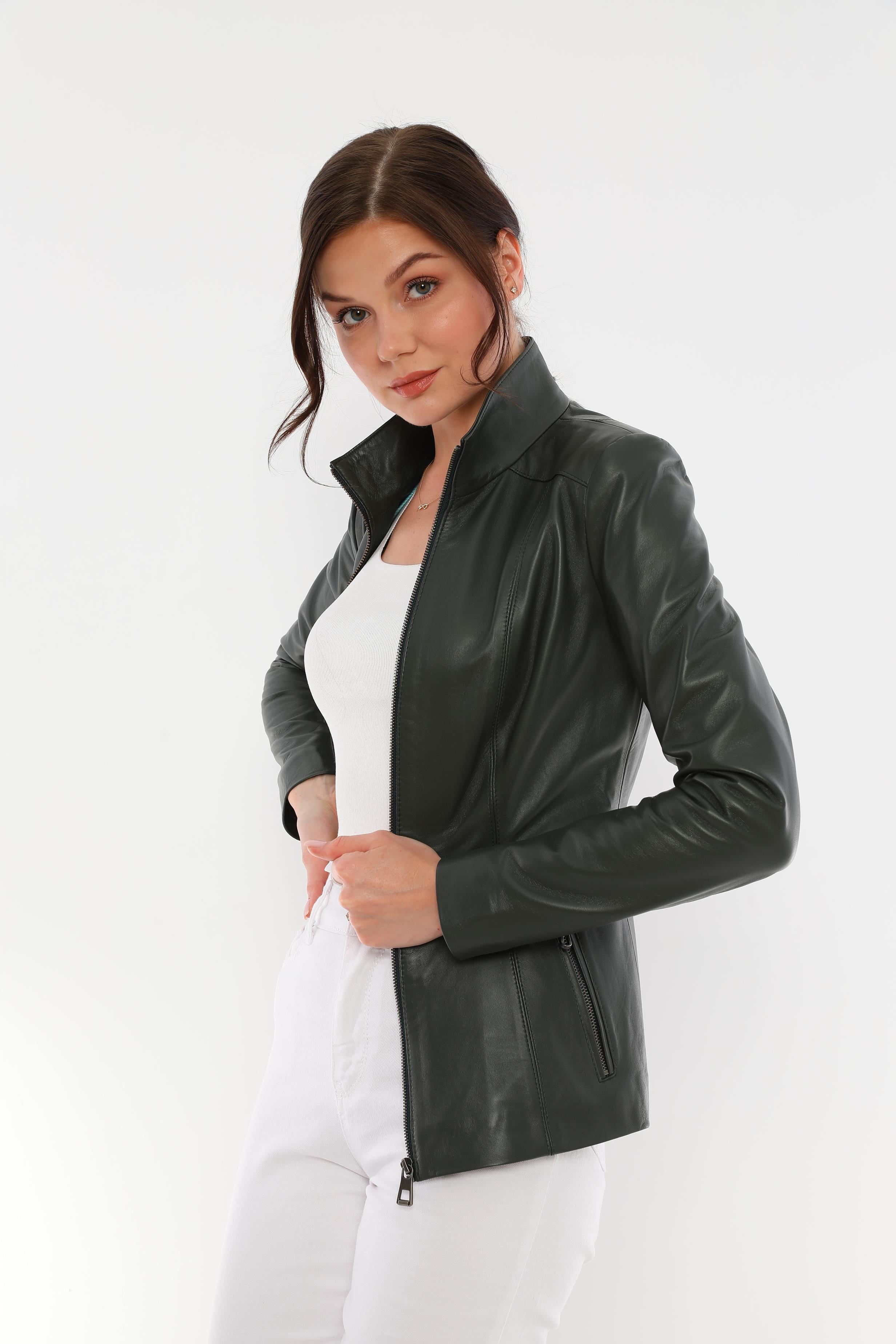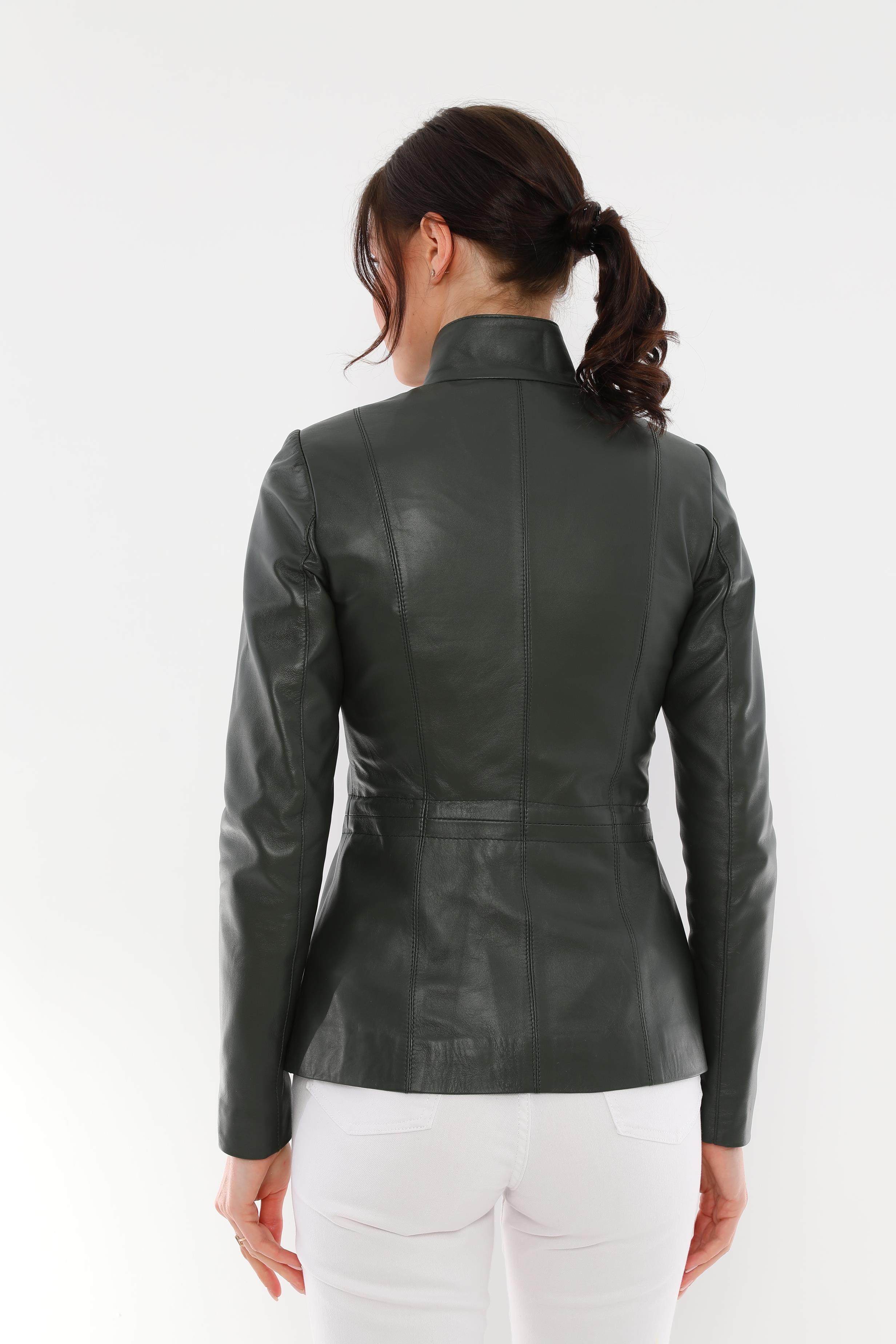 To complement your look, this sleek and modern elasticated women's leather jacket is designed for stylish women. Thanks to its quality leather texture, elegant cut and elastic detail at the waist, it offers both elegance and comfort. You can easily combine it in any environment, from daily use to special invitations.