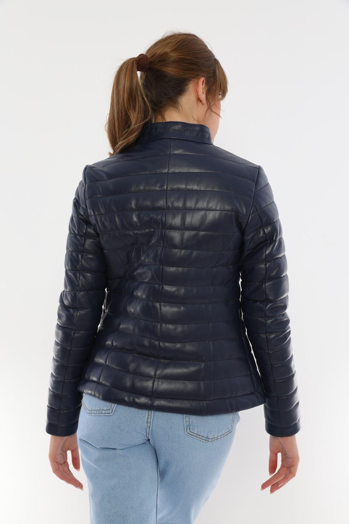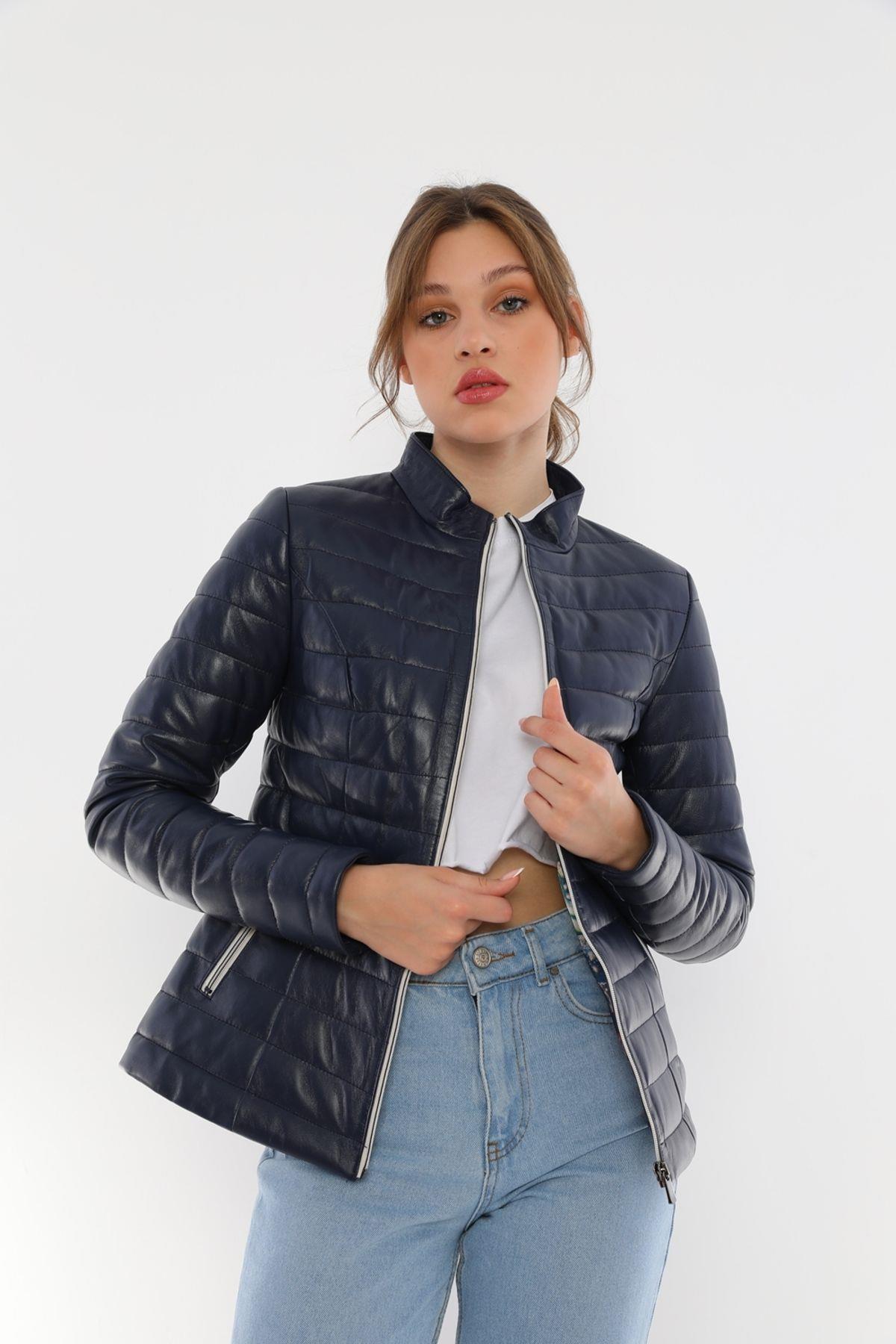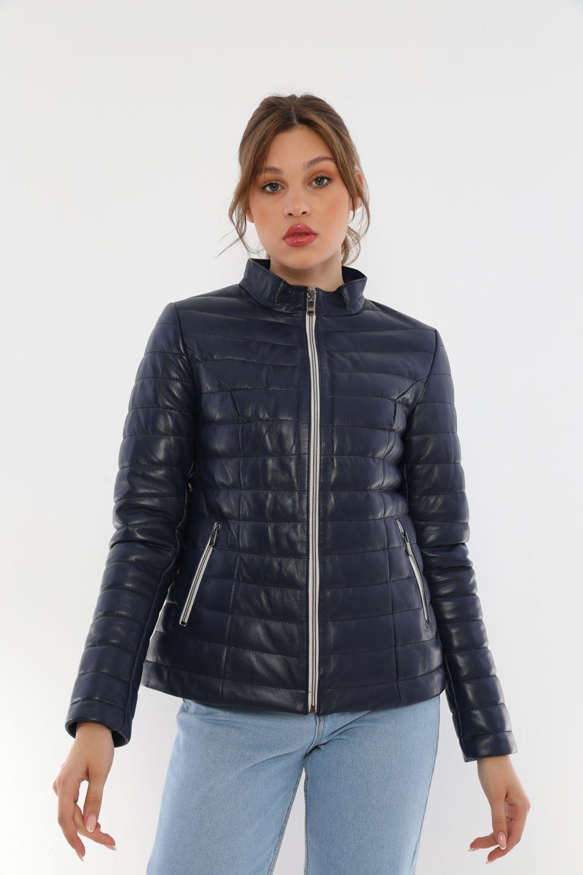 Basics&More Women Inflatable Navy Blue Leather Jacket - IA90