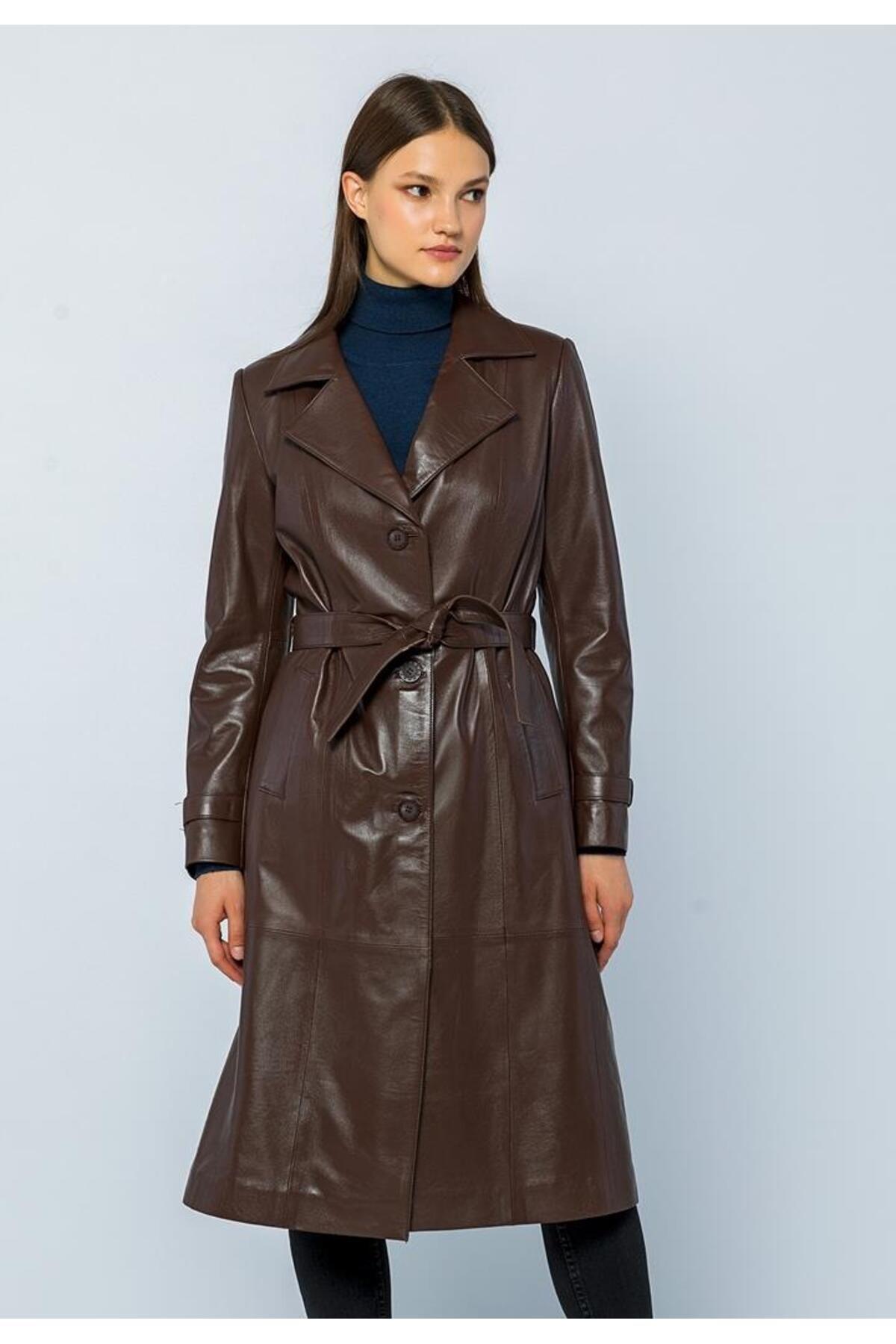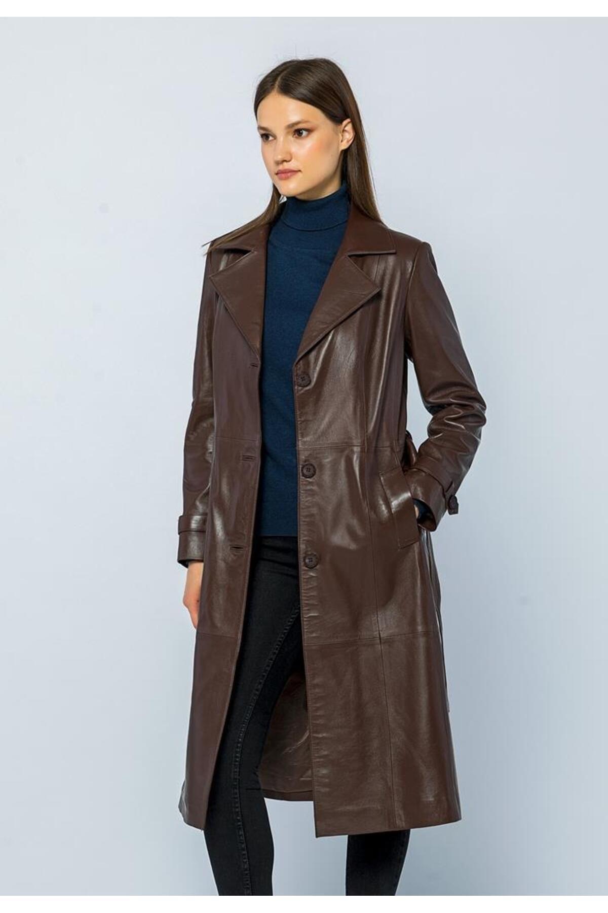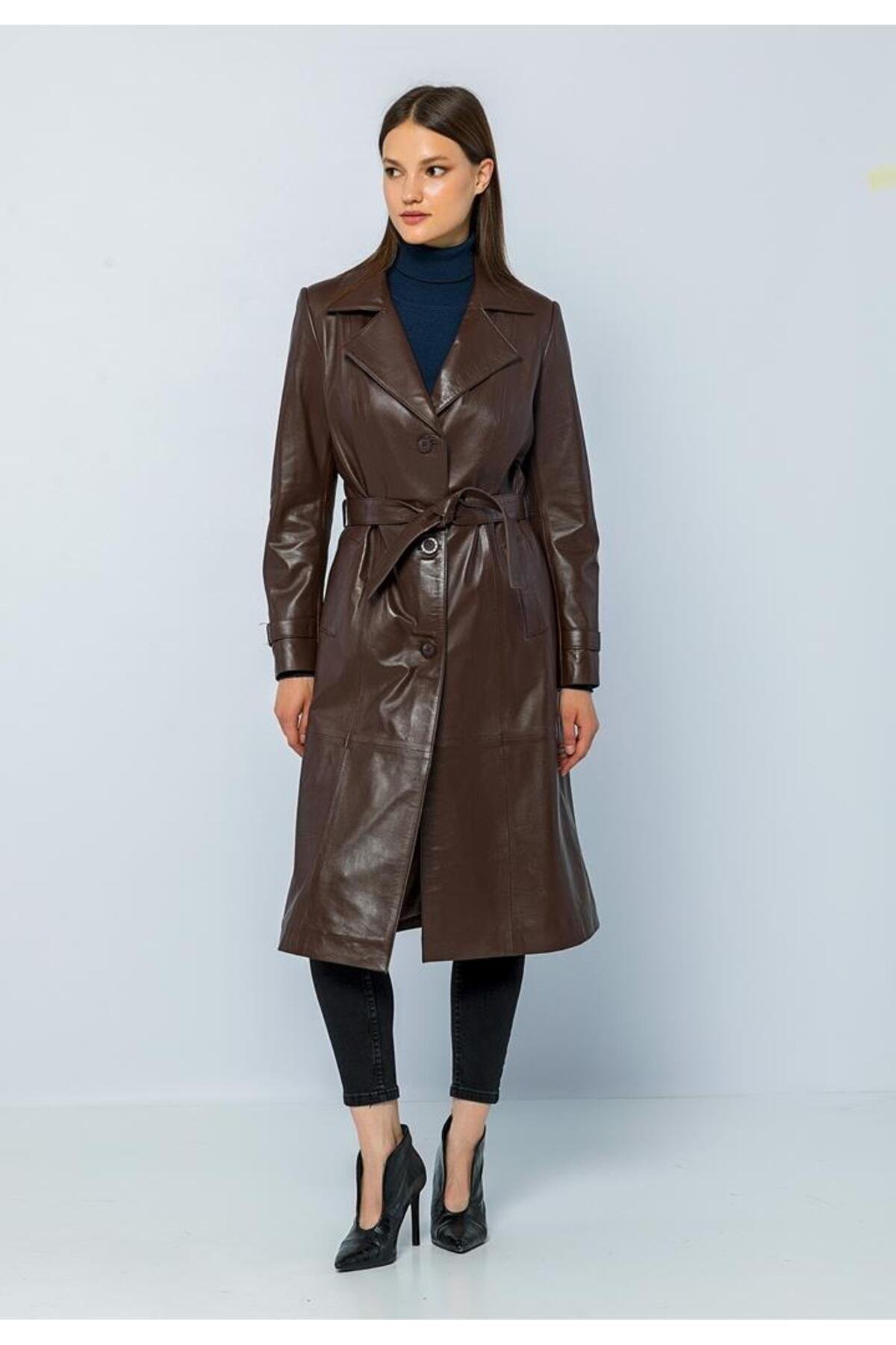 Basics&More Women Trench Tea Leather Jacket - Brenda