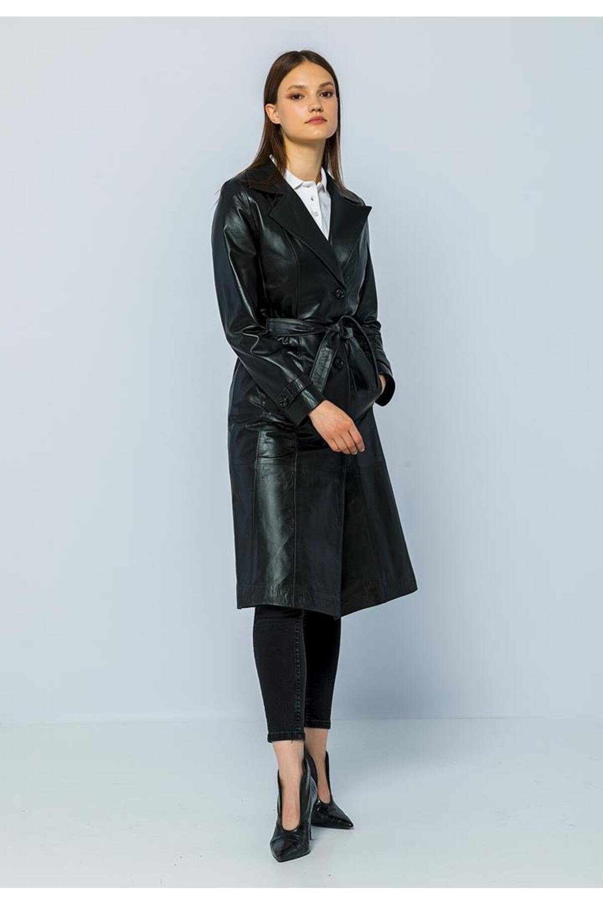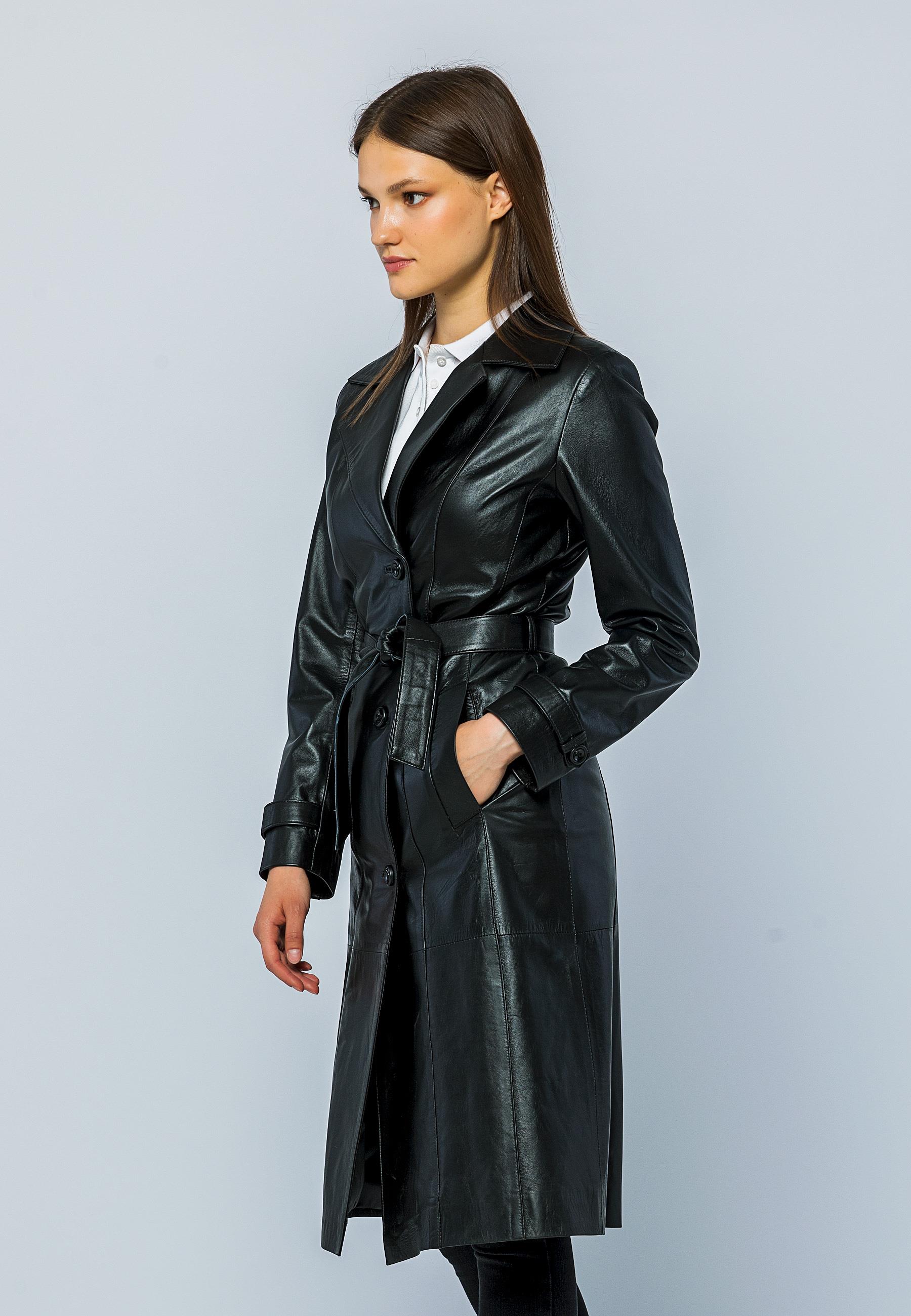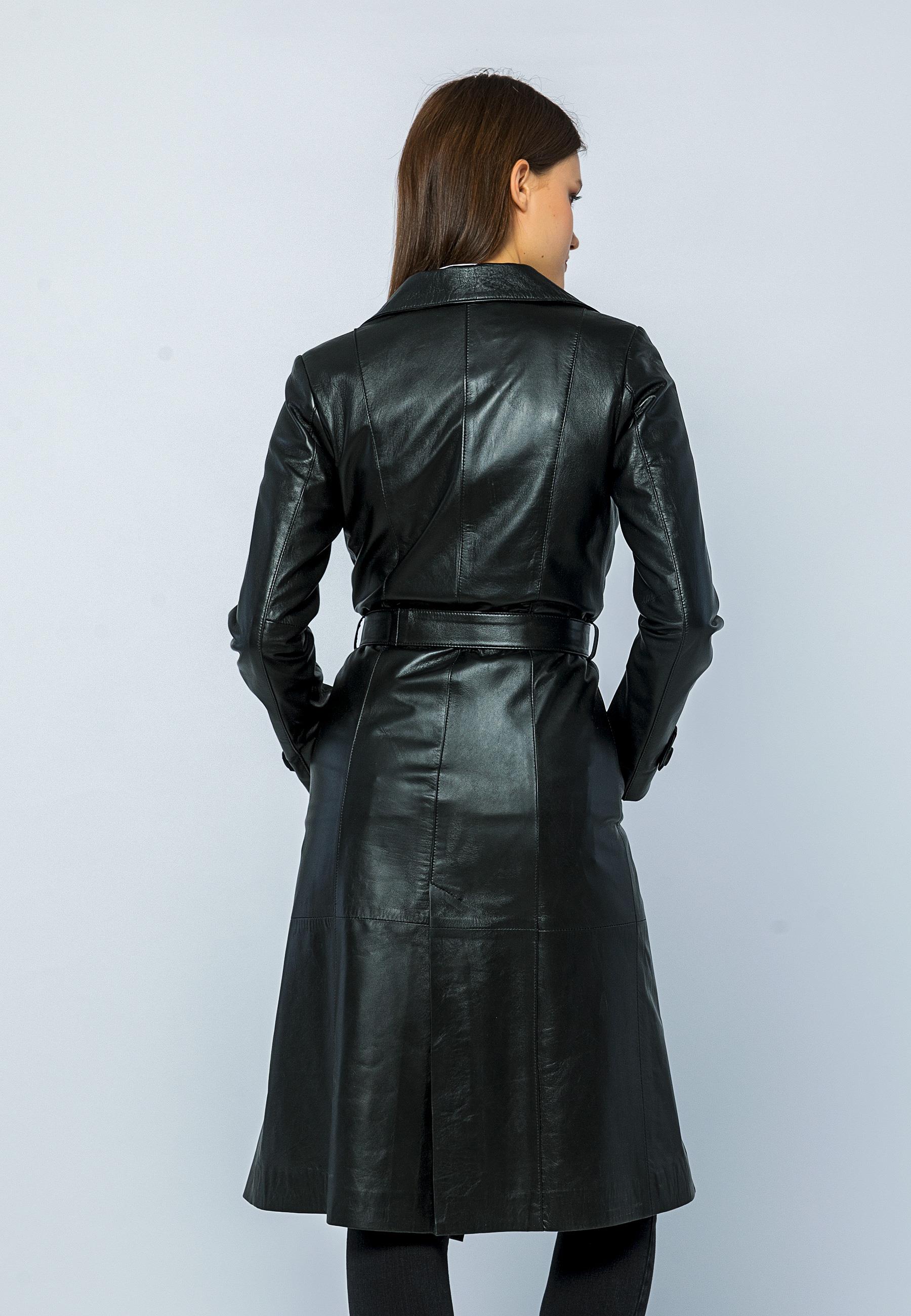 Basics&More Women Trenc Black Leather Jacket - Brenda
