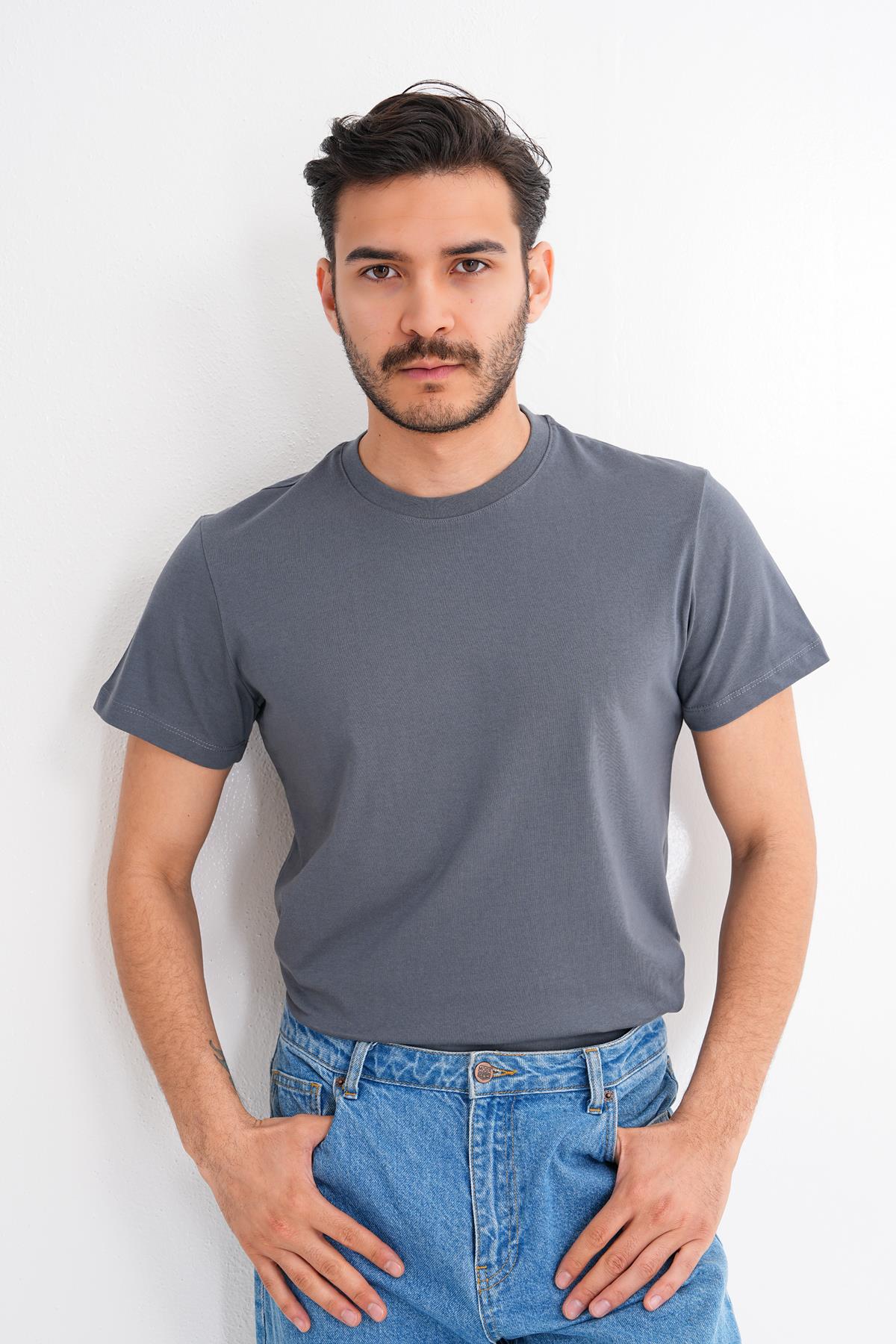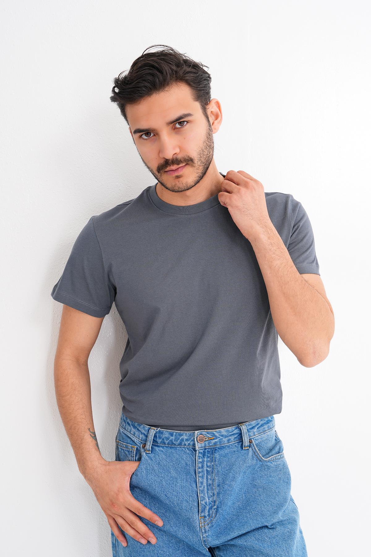 Detailed Product Description: This 100% cotton dark grey crewneck t-shirt is designed to add both elegance and comfort to your everyday wear. With its high-quality natural cotton texture, it leaves a soft feeling on your skin and provides a comfortable use all day long with its breathable structure. Thanks to its non-sweating and non-irritating properties, it offers an ideal choice for cool clothing in summer and layered clothing in winter.