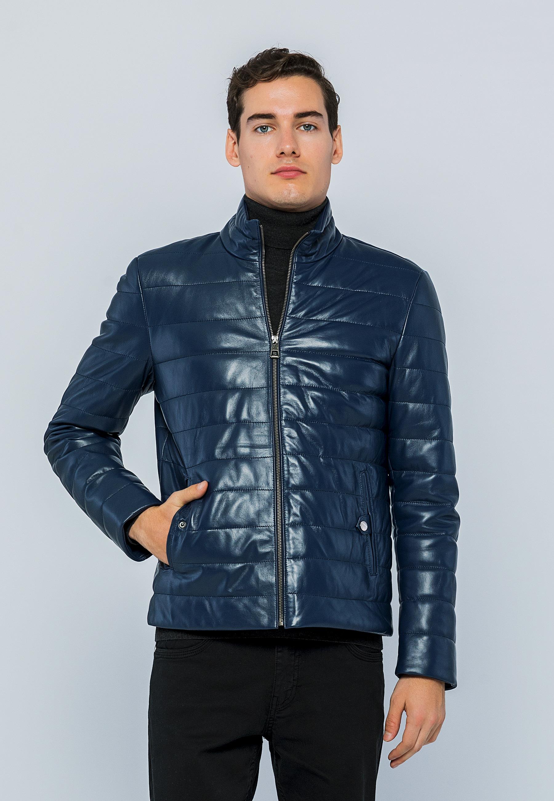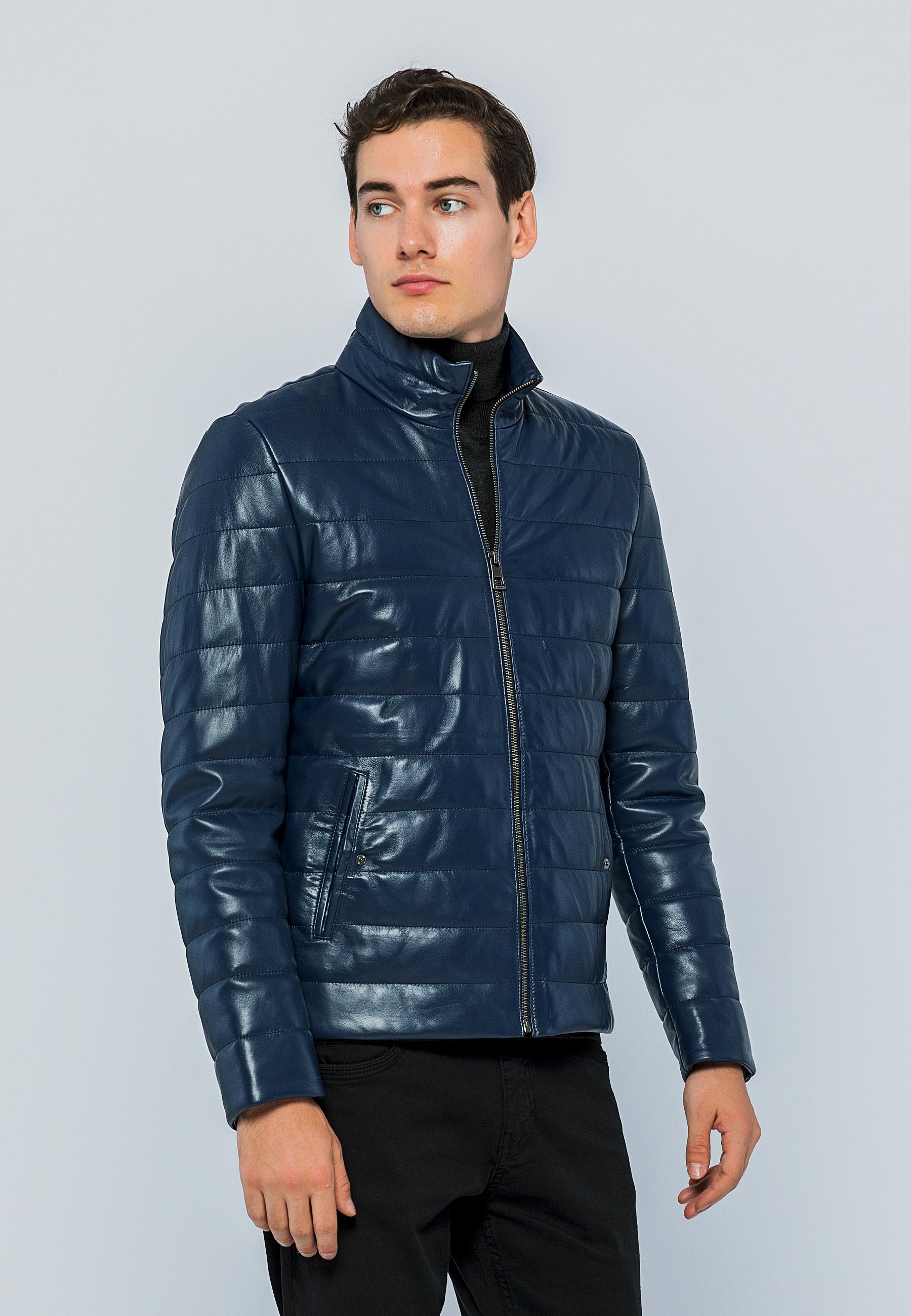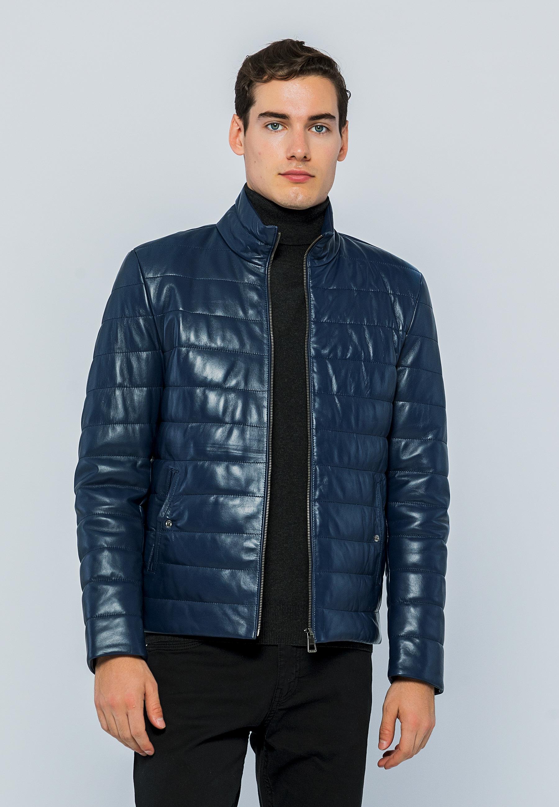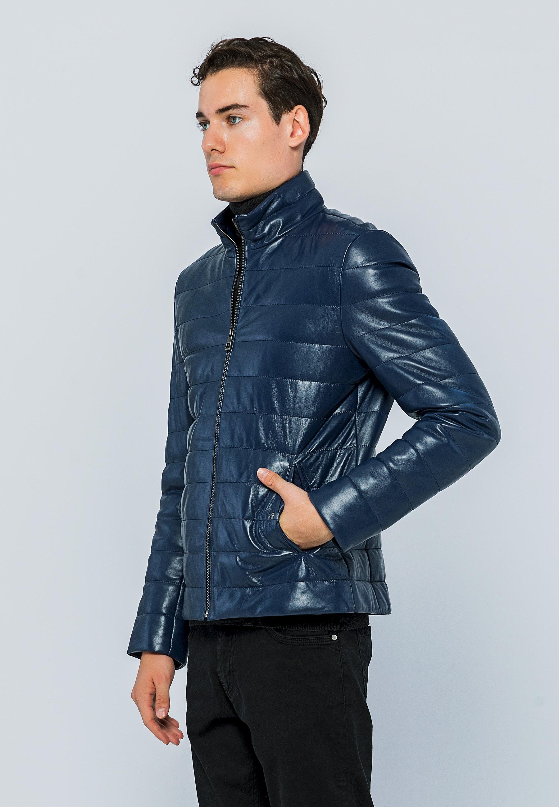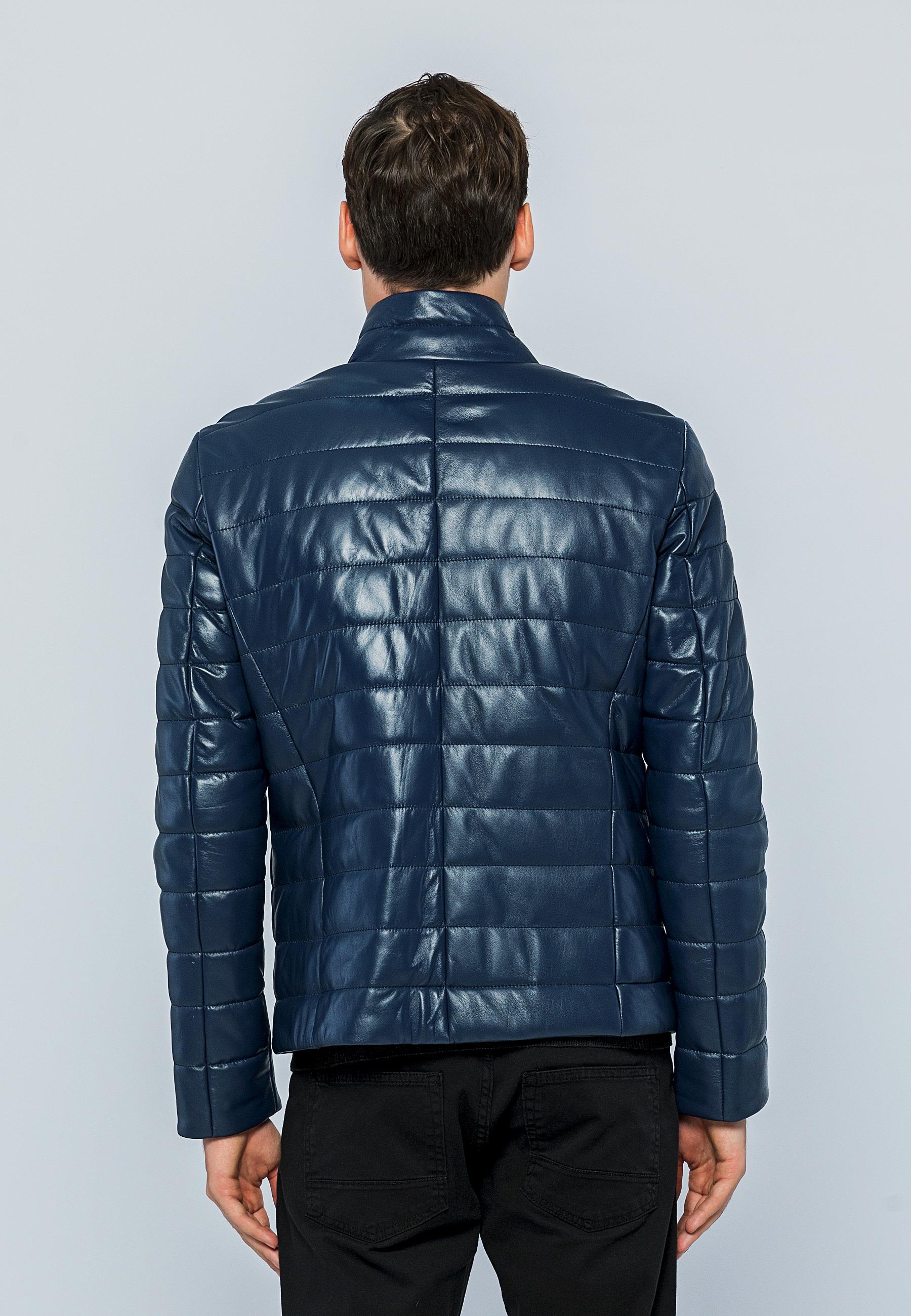 Basics&More Men Inflatable Dark Blue Leather Jacket - E8488