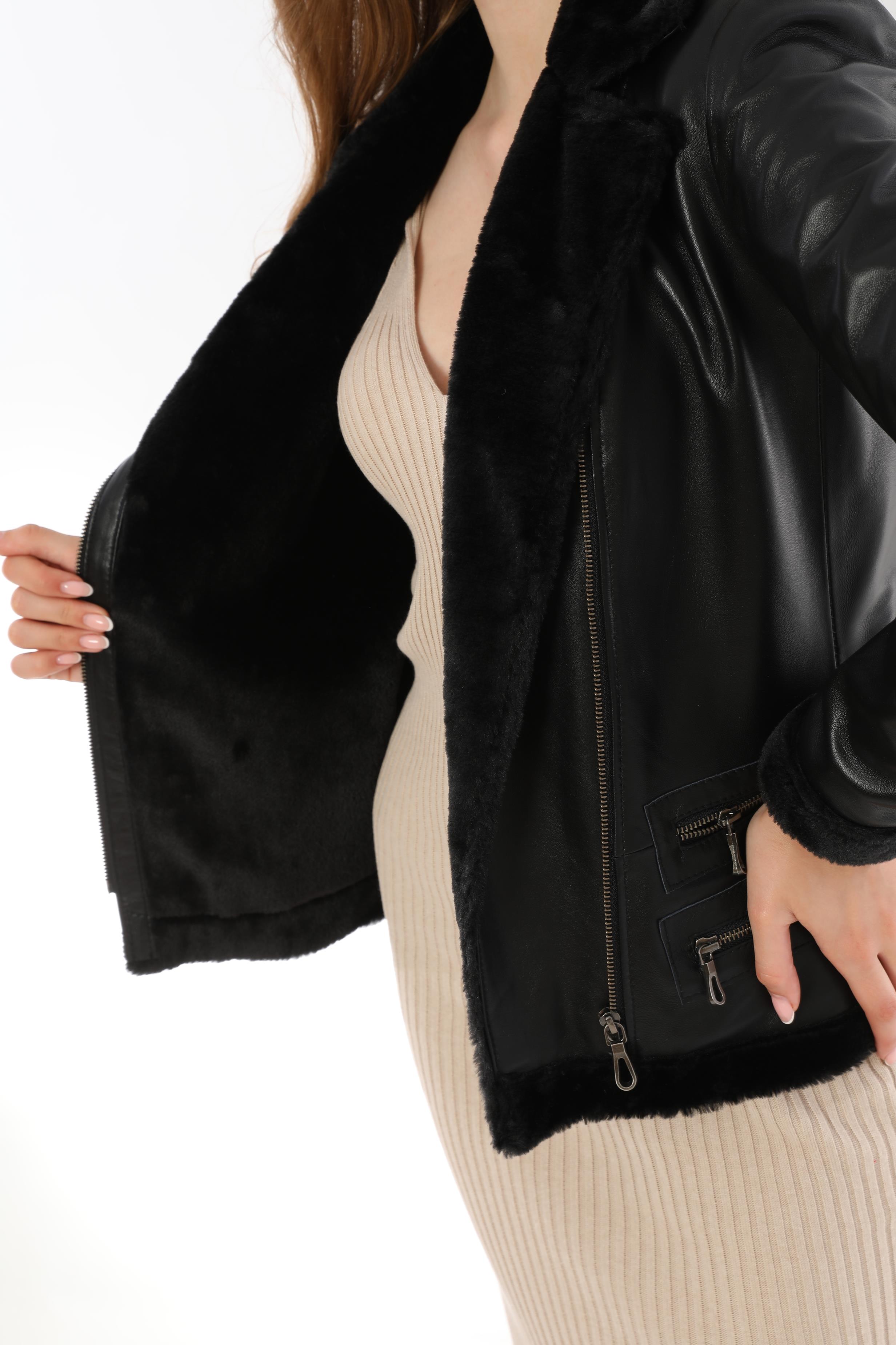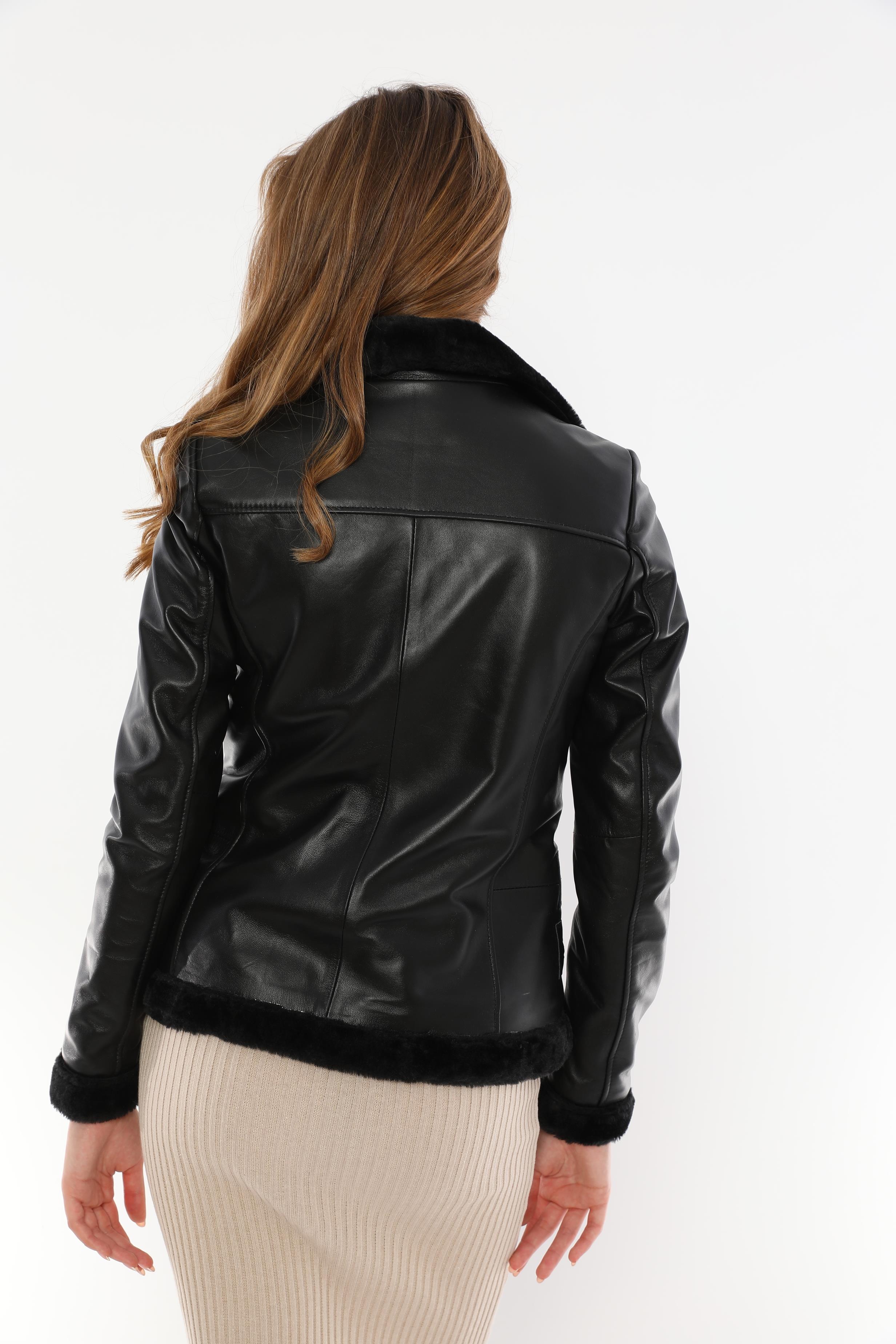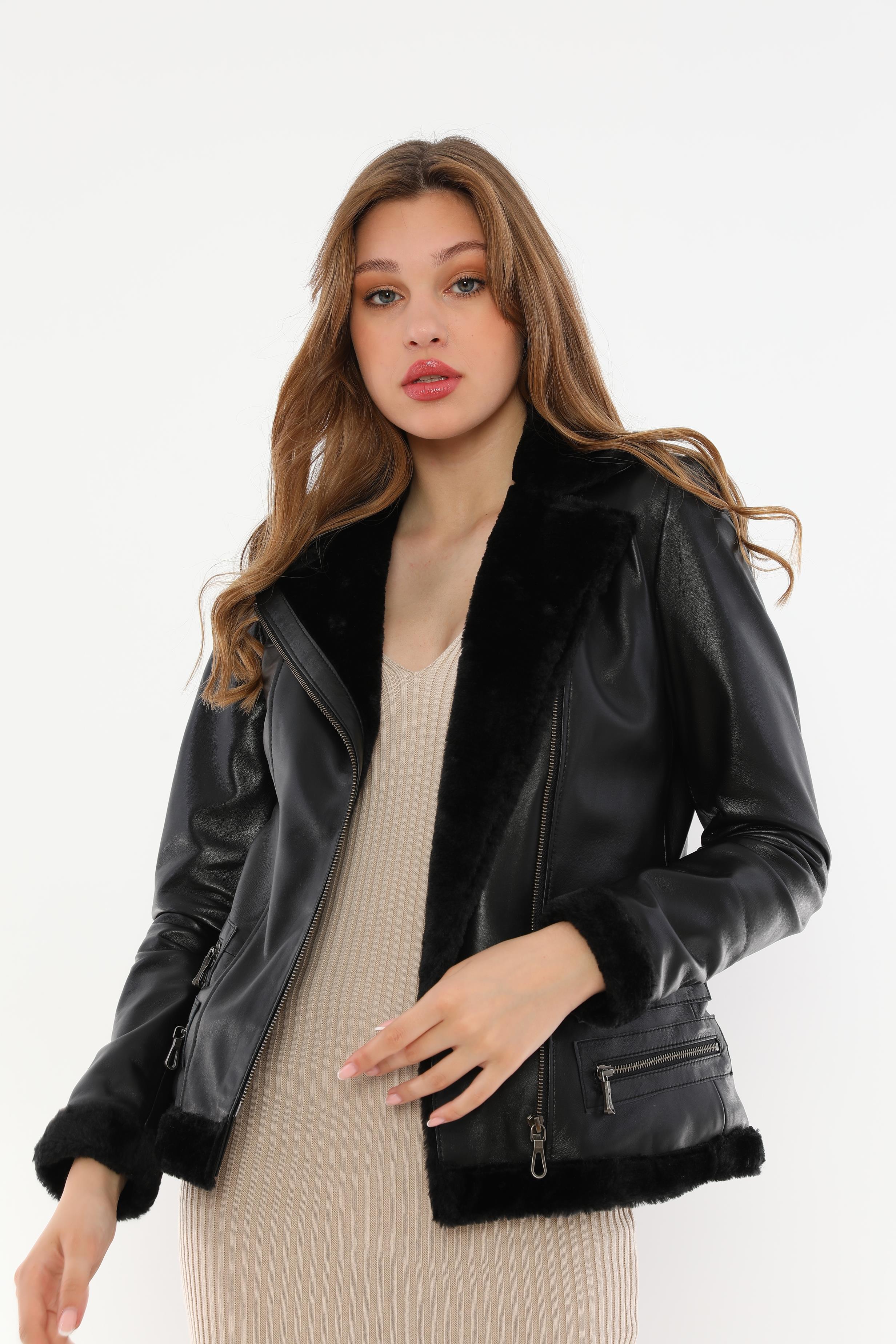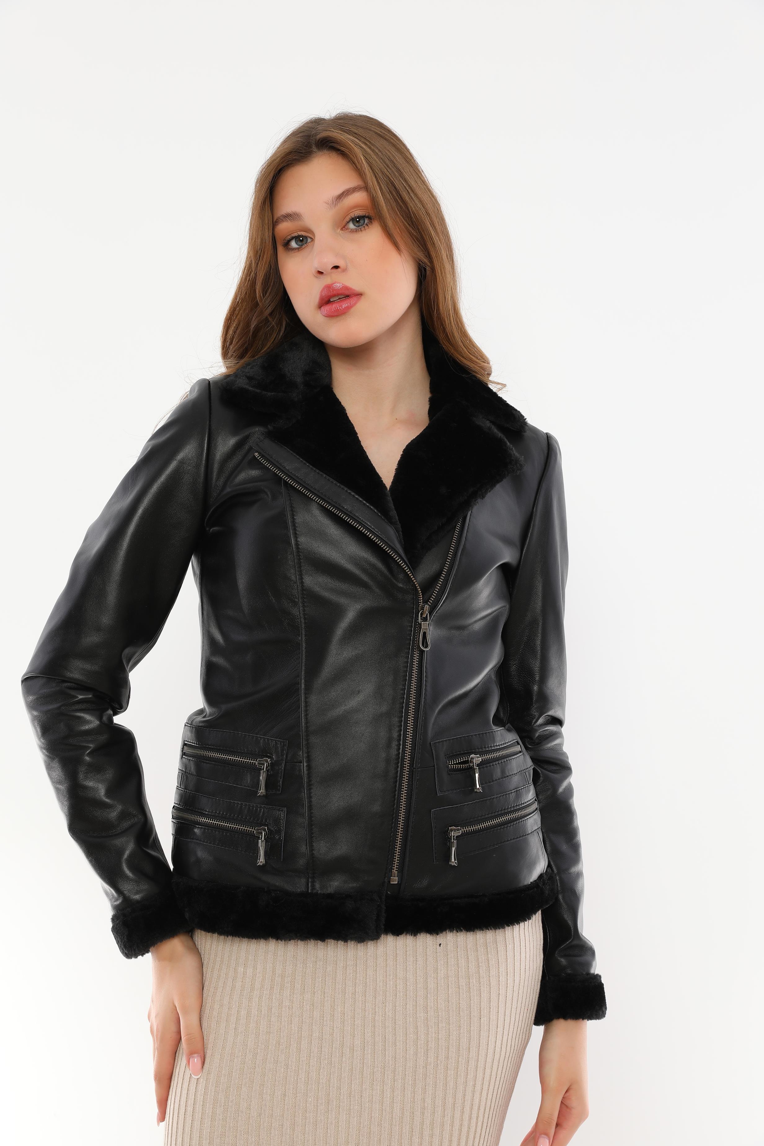 This Women's Black Fur Detailed Genuine Leather Jacket is an elegant outerwear piece that combines elegance and comfort. Its modern design is ideal for women who want to look warm and stylish during the winter months. Notable features include high-quality genuine leather material, soft and warm fur details on the inside, and minimal zipper decorations. In particular, the fur details increase the protective effect of the jacket in cold weather and give it a luxurious look.